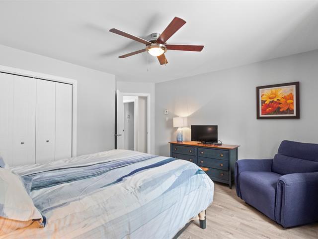 Impeccable rez-de-jardin clé en main bénéficiant d'une orientation sud-est pour un maximum de soleil. Sans aucun escalier, ce condo offre une accessibilité idéale. Découvrez un intérieur modernisé : salle de bain rénovée, cuisine avec comptoirs en quartz, plinthes neuves et climatiseur mural. Il propose 2 chambres spacieuses et une salle de lavage avec rangement extra. Profitez d'une terrasse privée pour vos BBQ, de 2 stationnements et d'un cabanon. Unité très bien entretenue alliant confort et praticité. Une opportunité rare! (45329196)