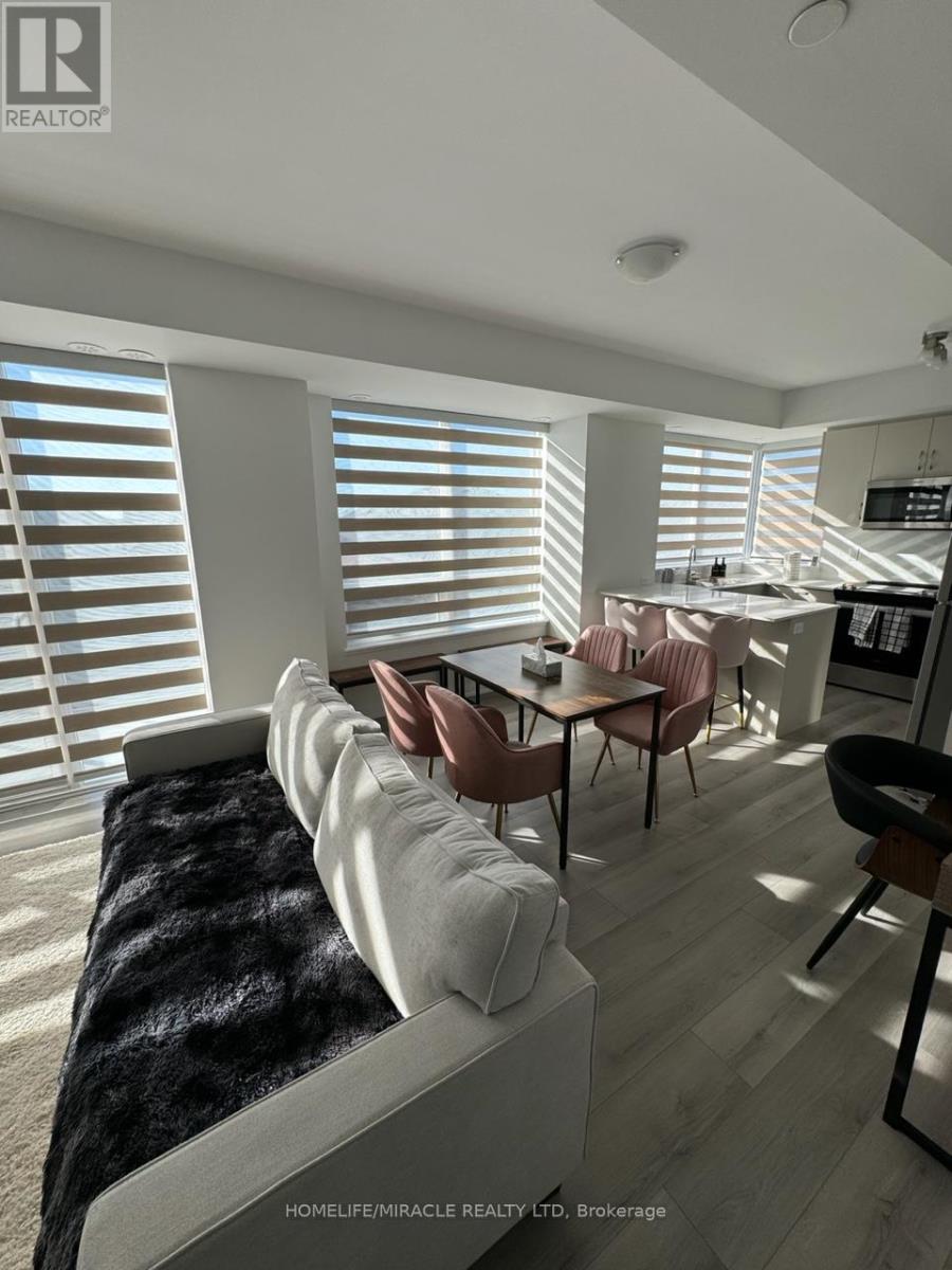Welcome to this beautifully upgraded Executive 2-storey, 3-bedroom corner unit located in the highly desirable Brampton East (Bram East) community, bordering Vaughan. Offering approximately 1,480 sq. ft. of well-designed living space, this bright and sun-filled unit features an open-concept layout with laminate flooring throughout the main level, large windows, and a functional flow ideal for everyday living and entertaining.The modern kitchen is equipped with quartz countertops, contemporary cabinetry, and generous prep and storage space. Additional in-unit storage further enhances convenience. The upper level offers three well-proportioned bedrooms, providing flexibility for families, professionals, or those working from home.The unit is offered Professionally furnished with higher-end, quality furnishings throughout. All main-floor window coverings are motorized and automated, adding both convenience and a refined touch. Furniture and furnishings may be removed upon request.Includes two underground tandem parking spaces and one cage locker. Ideally situated within walking distance to public transit, with easy access to Highways 7, 427, and 407, and close to shopping, schools, parks, and everyday amenities.No smoking or vaping of any kind permitted on the property. No pets as per landlord's request. (42057855)