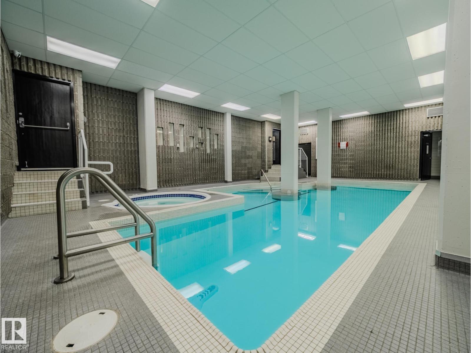 Prestigious Hyde Park where you will experience urban luxury in this remarkably large 1,350 square foot corner unit, nestled in Edmonton’s vibrant Wîhkwêntôwin neighborhood. This unit has been updated with flat-finished ceilings & walls. The residence offers a white-tiled kitchen with tile flooring, pantry & ample cabinetry. The expansive living room has parquet flooring with incredible views of downtown Edmonton. Floor-to-ceiling SW-facing windows flood the space with natural light & lead to a sprawling 34-foot private balcony. The layout features a spacious primary bedroom with a walk-in closet and ensuite, plus two additional bedrooms perfect for guests or home office. The front entry has three closets; two for storage & one for laundry. A stunning glass block wall & leather bench are unique features. Residents enjoy resort-style living with access to both indoor and outdoor pools, a sauna, fitness centre, tennis courts & garden areas. Includes titled underground heated parking. Immediate possession. (33782988)