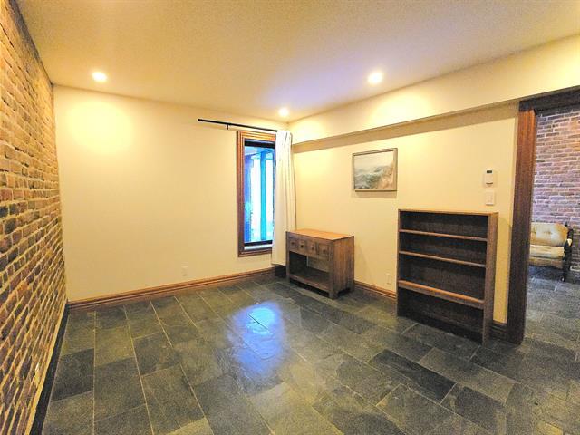 Garden-level apartment tucked away on a quiet lane in a classic greystone near downtown. Over 900 sq. ft. of renovated open living space featuring 3 bedrooms, 2 bathrooms, heated floors, exposed brick, granite countertops, stainless steel appliances, washer/dryer, and AC. Parking available nearby ($125/month) or street parking with vignette. Pets with approval. Steps from Atwater, Alexis Nihon Plaza, transit, shops, and schools. (49898580)
