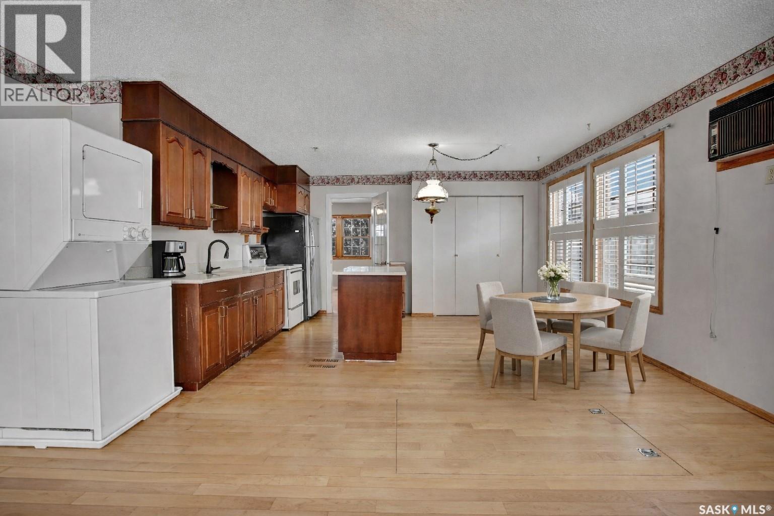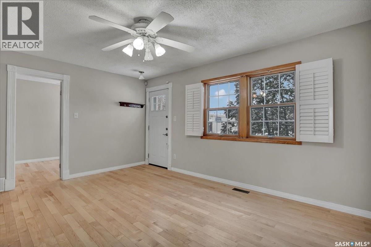 Welcome to 1109 11th Street West, ideally located in the desirable Holiday Park neighbourhood just a few blocks from the river, Riversdale Pool, elementary schools, and parks. This inviting home offers a bright and open main floor layout, beginning with a welcoming living room featuring a freestanding electric fireplace that creates a warm focal point. The living space flows seamlessly into the kitchen, dining area, and a sun-filled family room, complete with a gas stove and an abundance of windows that fill the home with natural light. Off the living room is a versatile office or bedroom, while the primary bedroom and a well-appointed three-piece bathroom with a walk-in shower complete the main level. Wood flooring runs throughout most of the main floor, with carpet in the family room for added comfort. Main floor laundry adds everyday convenience, and several key upgrades have been completed, including updated bathroom and plumbing lines, a newer water heater, and a high-efficiency furnace. Situated on a generously sized 45’ by 125’ lot, the property is fully fenced, well treed, and includes a detached two-car garage. This home combines character, functionality, and a prime location, making it an excellent opportunity to enjoy the best of Holiday Park living. (29338932)