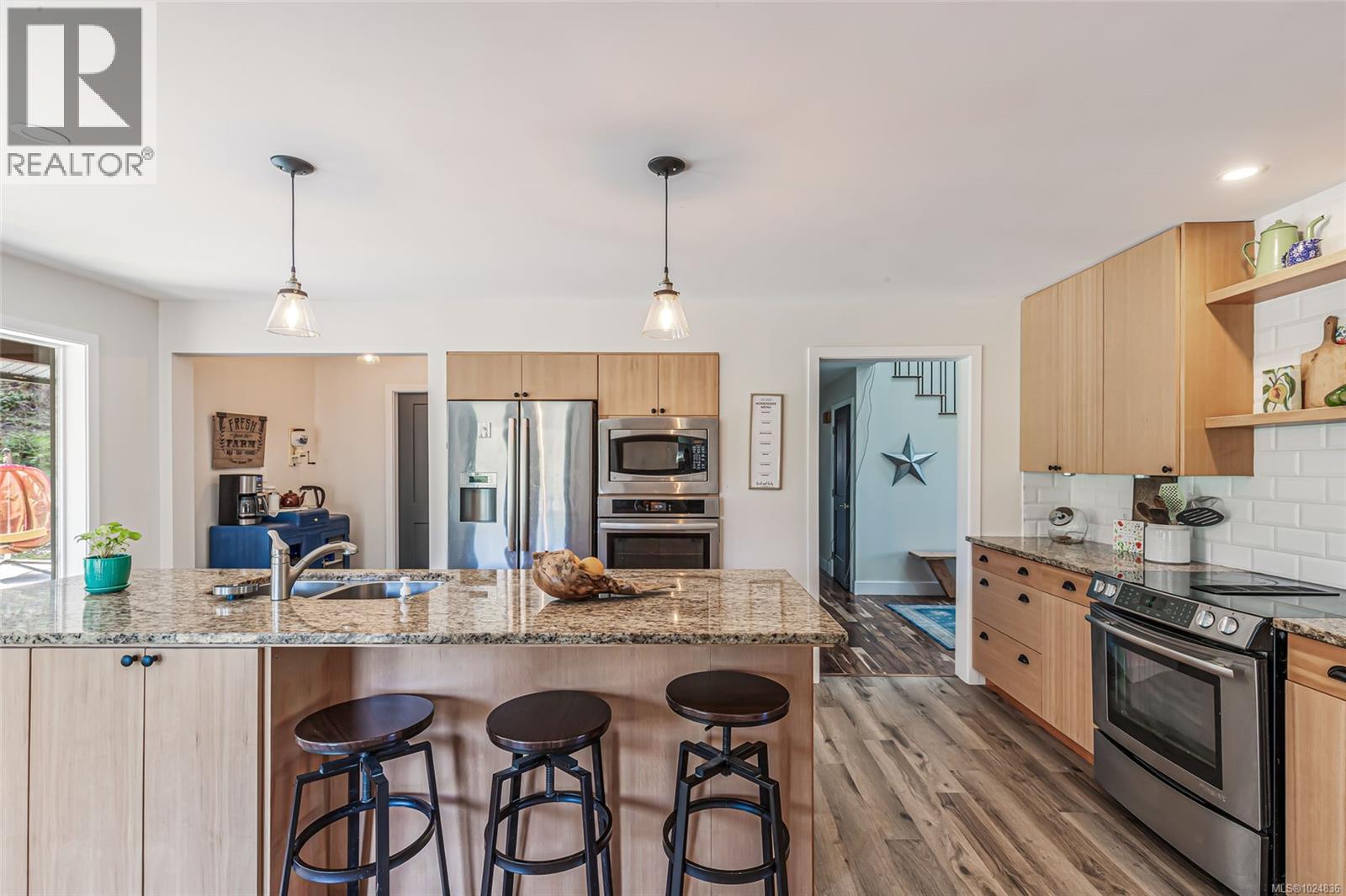 Discover this beautifully renovated, spacious custom farmhouse perfect for modern living and multi-generational families. The home features a main-floor primary suite, five additional bedrooms upstairs, and two convenient laundry rooms—one on each level. High-end acacia wood floors and an open-concept design create a warm, inviting atmosphere for entertaining. Recent updates include a new roof, siding, and more. Set on 31.5 acres of productive farmland, it offers hay fields, fruit and hazelnut trees, and 3+ acres of prime soil for blueberries or other crops. The long driveway leads to a private, mostly level meadow with a gentle rise to the west—ideal for horses or livestock. Excellent water quality from a drilled well and a pond suitable for trout farming add to the farm’s appeal. Located near schools, shopping, and just 12 minutes from Nanaimo. (30336198)