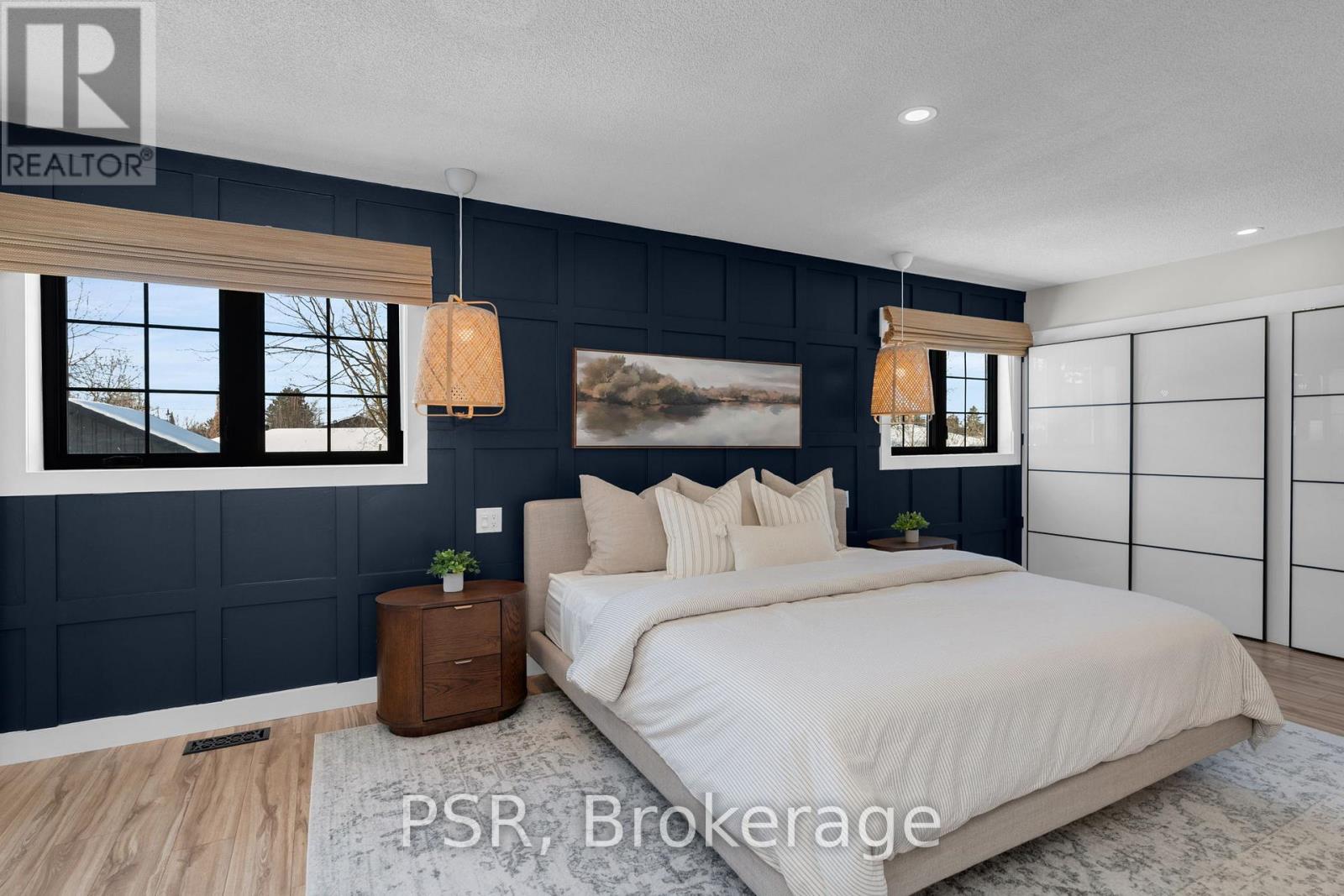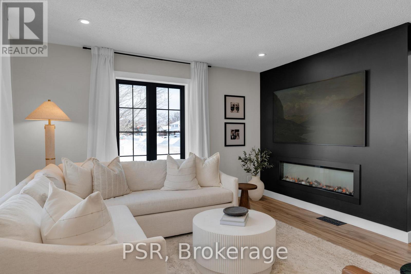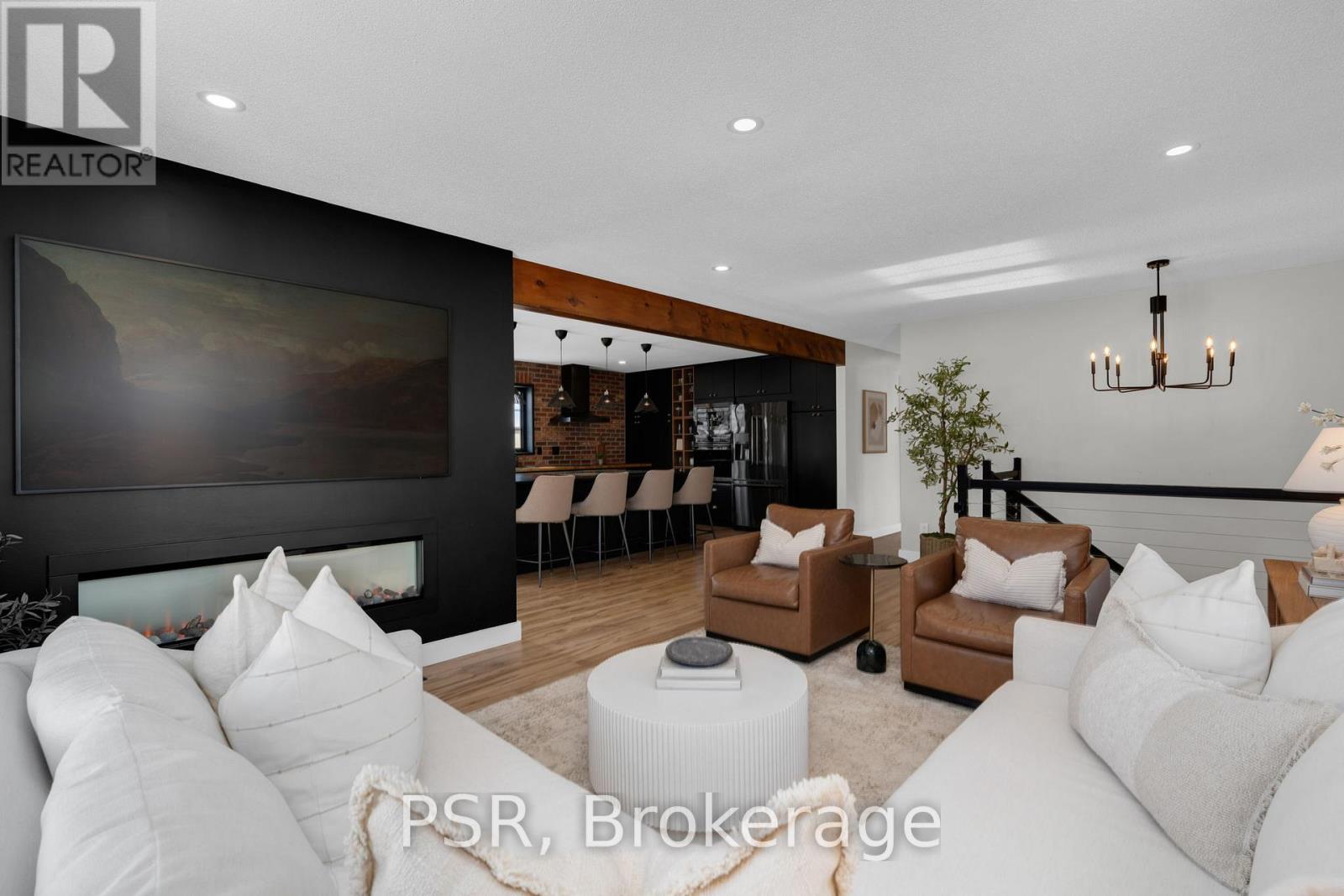 Fully renovated raised bungalow offering over 2,650 sq ft of finished living space, refined design, elevated comfort, and effortless everyday living in a vibrant, family-friendly community. Bathed in natural light and finished with exceptional attention to detail, this home delivers a seamless blend of modern elegance and inviting warmth. The main level showcases a stunning open-concept layout, anchored by a gourmet kitchen with an oversized island and complemented by a double-sided fireplace shared between the living and dining areas, creating a warm and inviting focal point for everyday living and entertaining. Five generously sized bedrooms provide exceptional versatility, including a serene primary retreat featuring dual walk-in closets that create a true sense of space and luxury. The fully finished lower level is bright and welcoming, complete with large above-grade windows and a generous secondary living area, ideal for movie nights, relaxed evenings, and hosting family and friends. Outdoors, the professionally designed backyard offers an exceptional entertaining experience, featuring an expansive patio with a built-in Napoleon BBQ and a dedicated fire pit lounge, creating the ultimate setting for summer evenings, weekend gatherings, and year-round enjoyment. Set within a connected community surrounded by scenic trails and parkland, this exceptional property enjoys immediate access to schools, grocery stores, dining, shopping, and everyday conveniences. Just 10 minutes to Wasaga Beach and the shores of Georgian Bay, and 15 minutes to Barrie, this location offers the perfect balance of natural beauty and urban accessibility. A truly turnkey residence delivering luxury, lifestyle, and location, thoughtfully designed for those who appreciate quality, comfort, and exceptional living. (42058927)