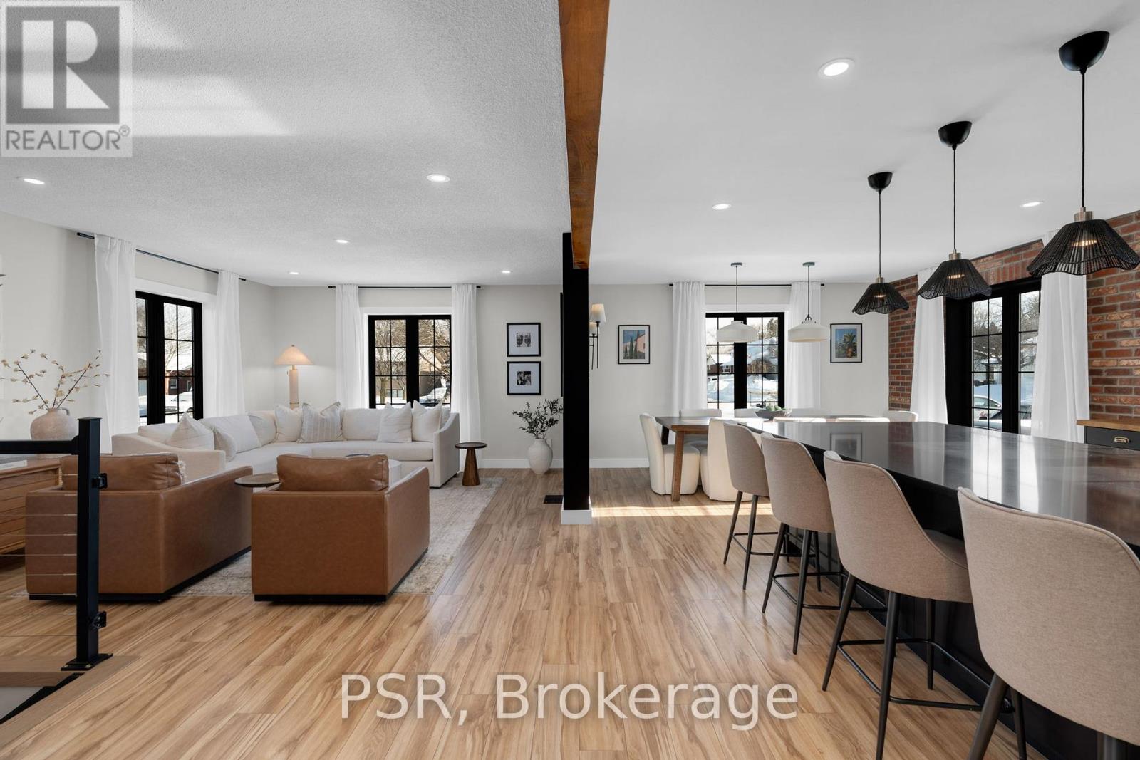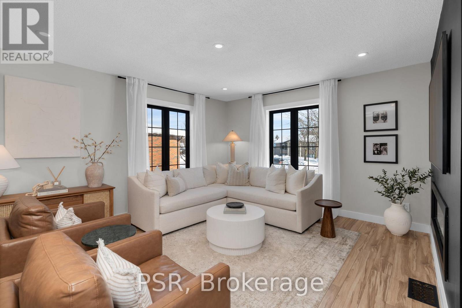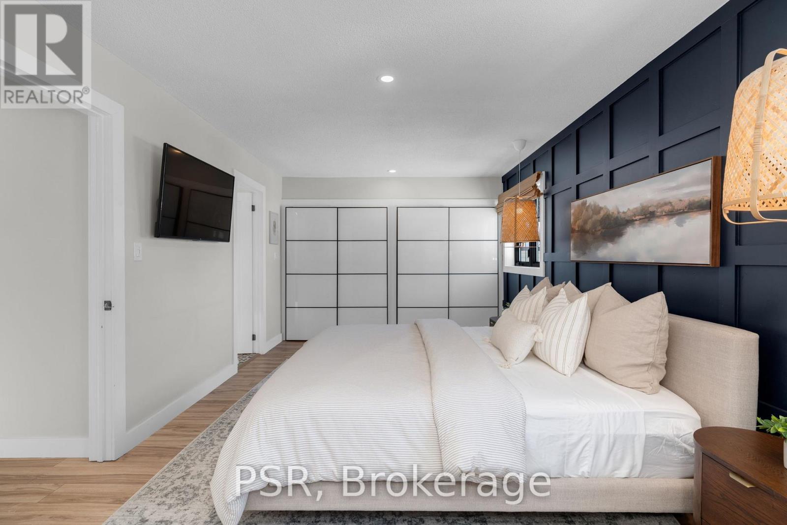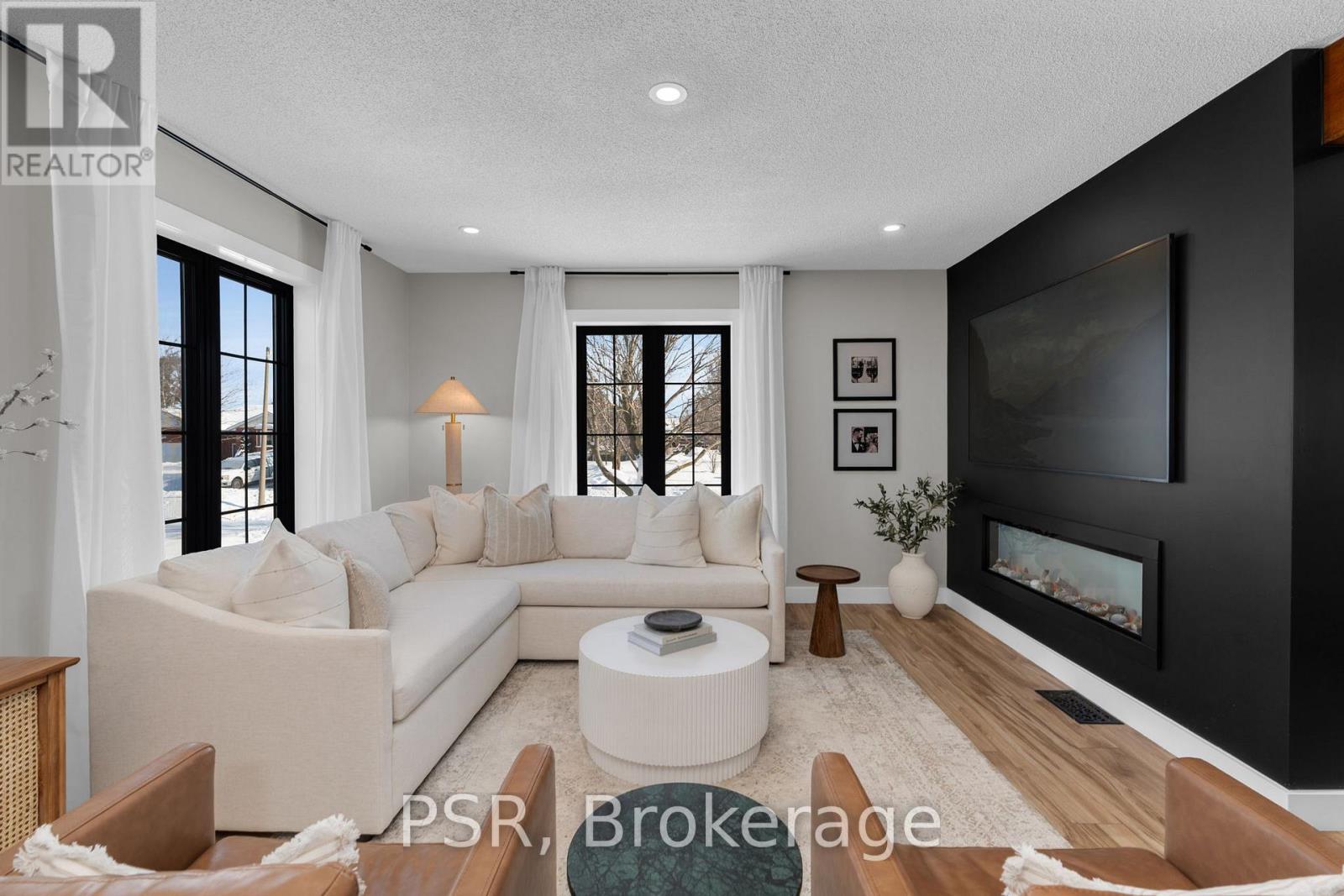 Fully renovated raised bungalow offering over 2,650 sq ft of finished living space, refined design, elevated comfort, and effortless everyday living in a vibrant, family-friendly community. Bathed in natural light and finished with exceptional attention to detail, this home delivers a seamless blend of modern elegance and inviting warmth. The main level showcases a stunning open-concept layout, anchored by a gourmet kitchen with an oversized island and complemented by a double-sided fireplace shared between the living and dining areas, creating a warm and inviting focal point for everyday living and entertaining. Five generously sized bedrooms provide exceptional versatility, including a serene primary retreat featuring dual walk-in closets that create a true sense of space and luxury. The fully finished lower level is bright and welcoming, complete with large above-grade windows and a generous secondary living area, ideal for movie nights, relaxed evenings, and hosting family and friends. Outdoors, the professionally designed backyard offers an exceptional entertaining experience, featuring an expansive patio with a built-in Napoleon BBQ and a dedicated fire pit lounge, creating the ultimate setting for summer evenings, weekend gatherings, and year-round enjoyment. Set within a connected community surrounded by scenic trails and parkland, this exceptional property enjoys immediate access to schools, grocery stores, dining, shopping, and everyday conveniences. Just 10 minutes to Wasaga Beach and the shores of Georgian Bay, and 15 minutes to Barrie, this location offers the perfect balance of natural beauty and urban accessibility. A truly turnkey residence delivering luxury, lifestyle, and location, thoughtfully designed for those who appreciate quality, comfort, and exceptional living. (42058927)
