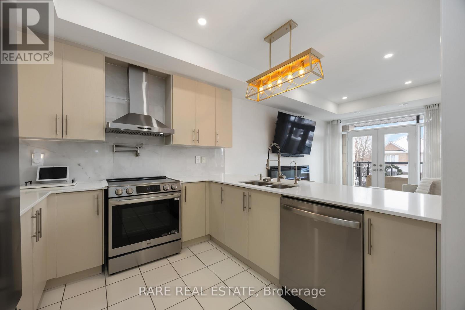 Immaculate and fully updated executive condo townhome, tucked away on the sought-after Kayla Crescent side of the complex in the heart of Maple, Vaughan. This bright and inviting 2-bedroom, 2-bath residence offers a true sense of home, combining modern design with everyday comfort in one of the area's most desirable neighbourhoods. Step inside to a thoughtfully curated interior featuring soaring ceilings, pot lights, a striking oak staircase, and premium engineered hardwood flooring throughout. The open-concept living and dining area is ideal for both daily living and entertaining, offering a seamless walkout to a private balcony-perfect for morning coffee or unwinding at the end of the day. At the heart of the home, the spacious chef-inspired eat-in kitchen blends style and function with quartz countertops, upgraded cabinetry, ample prep and counter space, an undermount sink, breakfast bar, and newer stainless steel appliances, including a premium induction range and pot filler. A feature wall in the entryway, updated light fixtures, and refreshed bathroom vanities add character and polish throughout, while ensuite laundry with a new washer and dryer provides added convenience.Upstairs, two generously sized bedrooms offer quiet retreats. The primary bedroom features a walk-in closet and walkout to a large private terrace, while the second bedroom enjoys its own balcony access. With three private outdoor spaces, this home offers rare indoor-outdoor living.Perfectly positioned just minutes from parks, schools, shopping, restaurants, Vaughan Mills, public transit, Maple GO Station, and Highway 400, this energy-efficient, low-maintenance townhome offers exceptional value in a prime location. A rare, move-in-ready opportunity-just unpack and enjoy. (42058938)