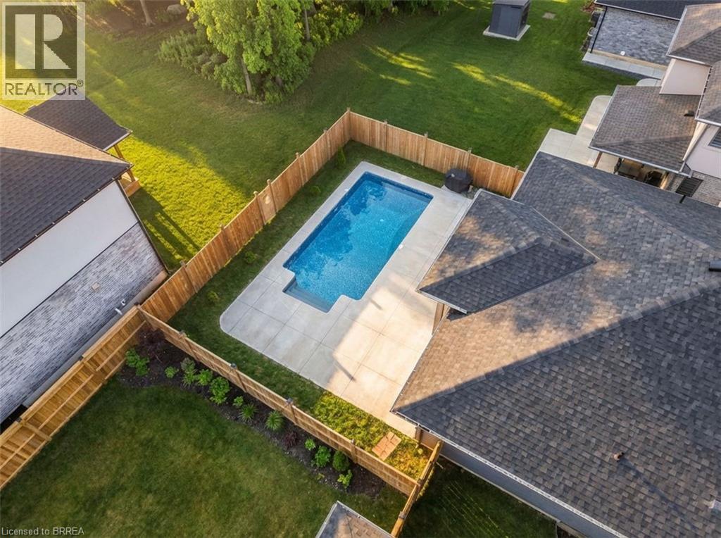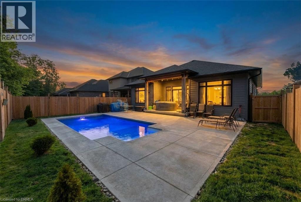 Welcome to this stunning custom-built bungalow, perfectly tucked away on a quiet dead-end cul-de-sac in the charming town of Norwich. Thoughtfully designed with both style and functionality in mind, this home offers a bright, modern atmosphere and is truly move-in ready. The open-concept main floor seamlessly connects the living, dining, and kitchen areas, creating an ideal space for everyday living and entertaining. The living room is highlighted by recessed pot lighting, adding warmth and architectural interest. At the heart of the home, the chef-inspired kitchen impresses with abundant counter and cupboard space, a stylish tile backsplash, stainless steel appliances, and a large extended island with additional seating. A walk-in pantry offers exceptional storage, and the dining area seamlessly extends to the backyard, creating an effortless indoor-outdoor living experience. The main-floor primary suite is a private retreat overlooking the backyard oasis. It features a spacious walk-in closet and a spa-like ensuite complete with dual sinks, a walk-in shower, and a standalone soaking tub. Two additional well-appointed bedrooms and a full four-piece bathroom complete the main level. Downstairs, the fully finished lower level expands your living space with a large recreation room with a modern electric fireplace and a stylish bar area, perfect for relaxing or hosting guests. This level also offers an additional bedroom, a fully equipped home gym, and a modern three-piece bathroom. Outside, unwind on the covered patio and enjoy your private backyard oasis, complete with an inground pool—an ideal setting for summer entertaining or peaceful evenings at home. Additional features such as a tankless water heater, keyless door entry, and a doorbell camera add comfort, efficiency, and peace of mind to this exceptional property. Refined living awaits in this beautiful property, where luxury, practicality, and an exceptional location come together seamlessly. (70108234)
