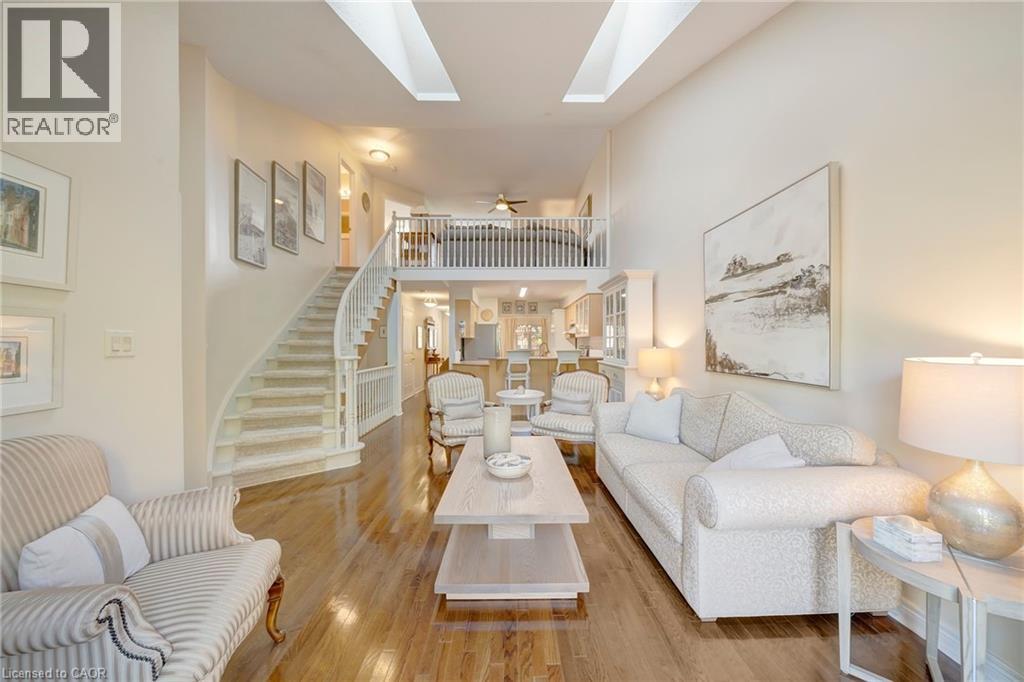 Thinking of Rightsizing, but want to keep the same level of luxury and close to everything location? Welcome to Barclay Square, an exclusive community of executive townhomes just steps away from Downtown Oakville! This impeccably maintained 3-bedroom unit features hardwood floors throughout and vaulted and stylized ceilings on the main floor which enhance the spacious ambiance, making a striking architectural statement. Oversized glass doors open up to a tranquil patio oasis with a gas line BBQ, perfect for Summer entertaining. Primary bedroom on the main floor with a 4pc ensuite bath. The second floor features a large, loft style sitting room overlooking the living room below and an additional bedroom and 4 pc bathroom. Over 2,100 sqft of finished living space, with a finished basement featuring an ample rec room and additional bedroom. This is the modern and comfortable Oakville lifestyle at its finest. Don't miss out on this highly sought after opportunity! (70113964)