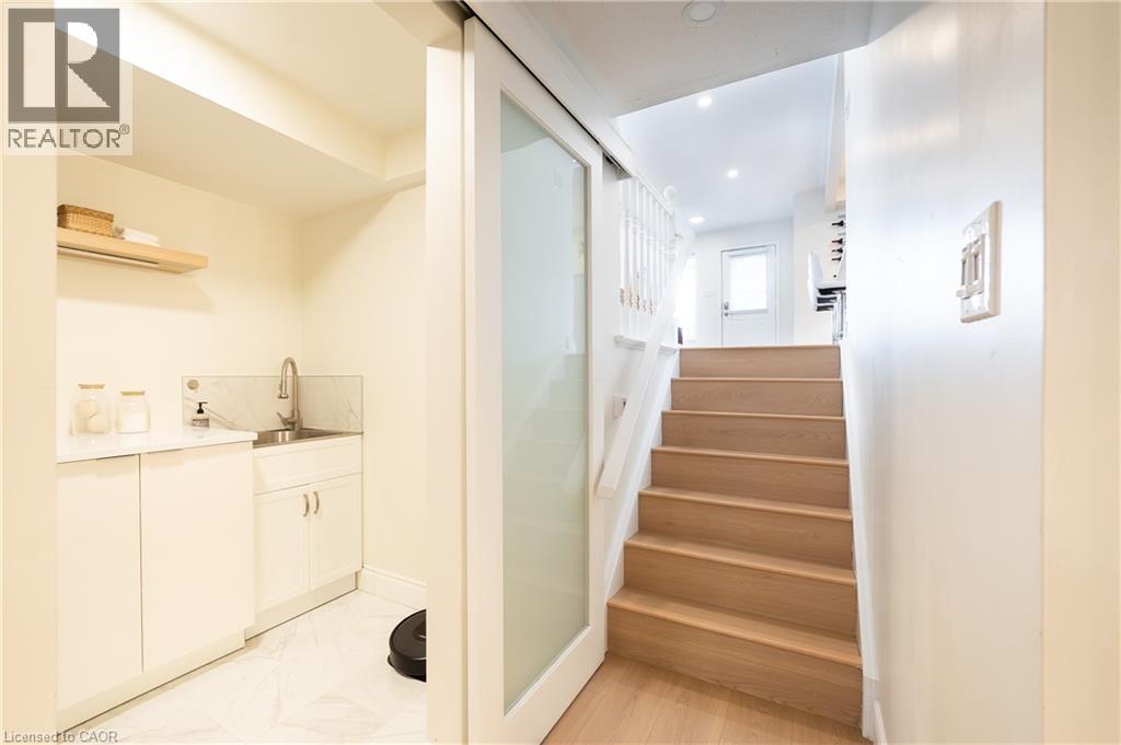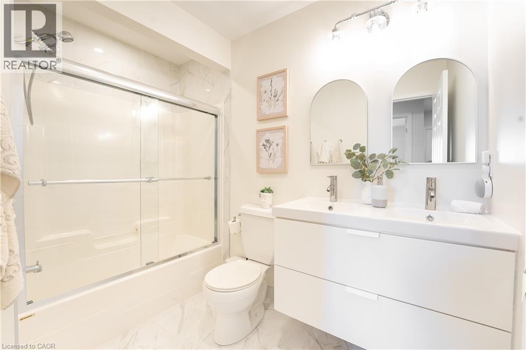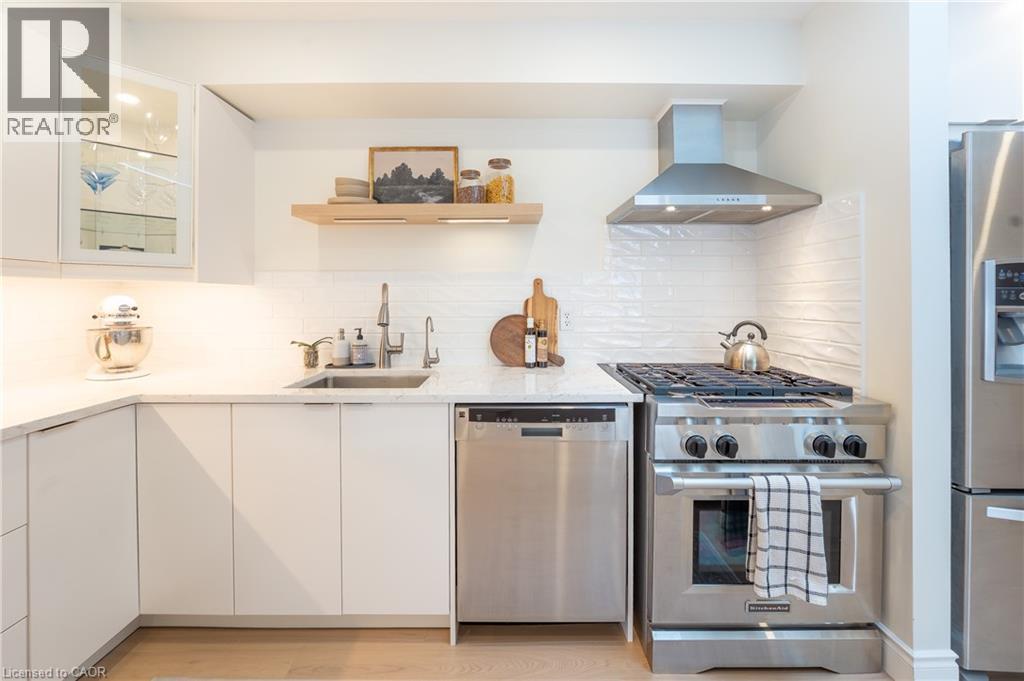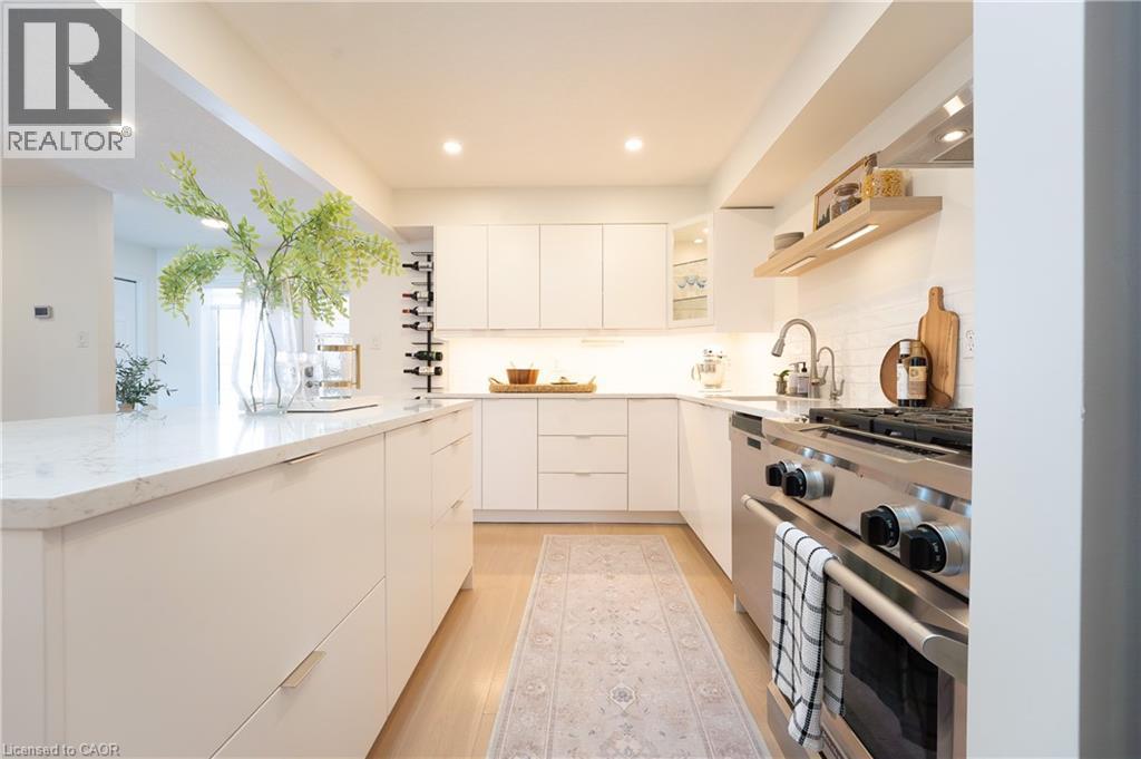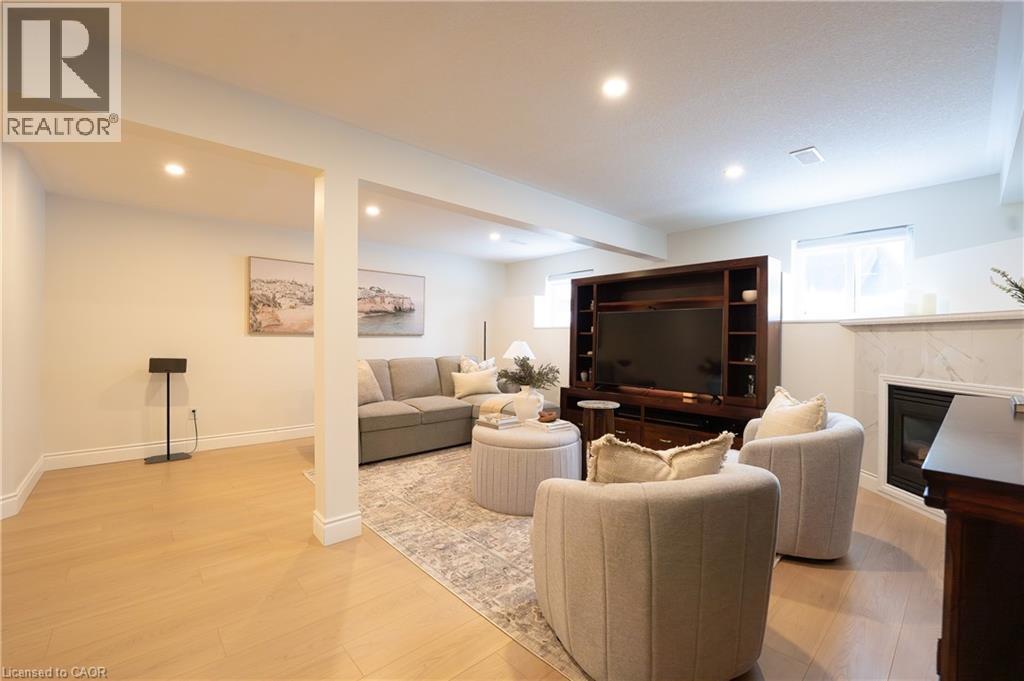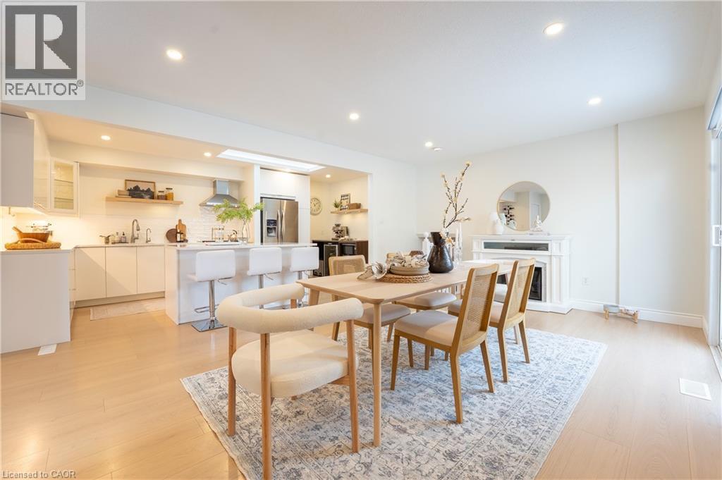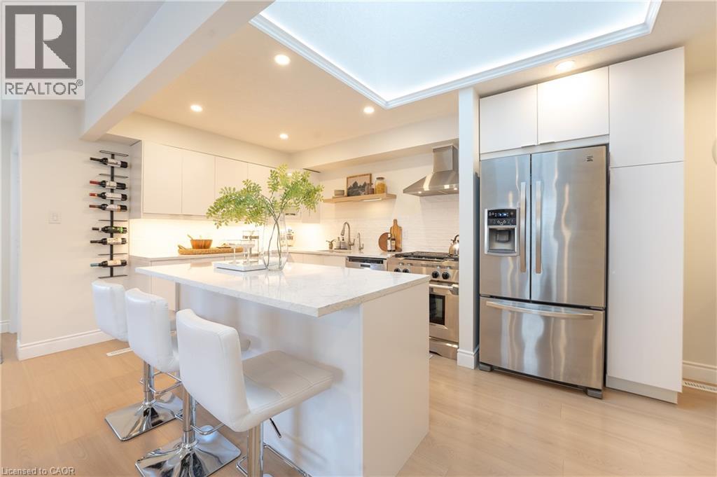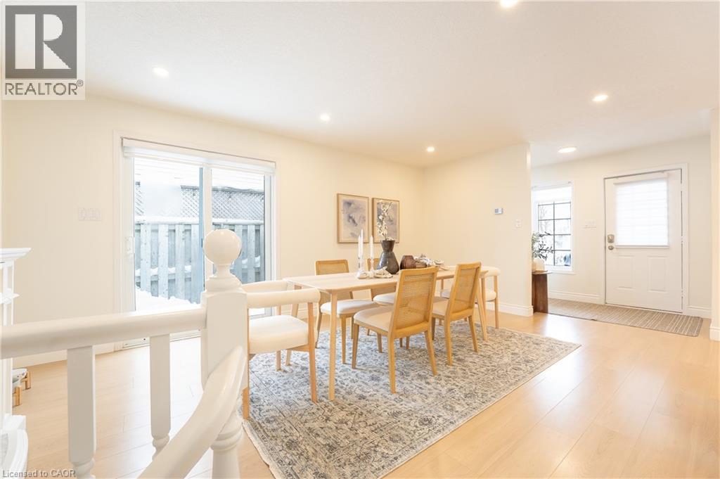 Welcome to 408 Joseph Street, a beautifully updated semi-detached 4 level backsplit located in family-friendly New Hamburg. Offering over 1,500 sq ft of finished living space, this home features 3 bedrooms, 2 full bathrooms, a functional multi-level layout, and a fully finished lower level. The main level showcases a stunning designer kitchen with sleek flat-panel white cabinetry, quartz countertops, a large centre island with seating, stainless steel appliances, gas range, modern hood fan, open shelving, and a skylight that fills the space with natural light. The open-concept living and dining areas are finished with wide-plank flooring, recessed lighting, and a cozy fireplace, creating a warm and contemporary atmosphere ideal for everyday living and entertaining. The primary bedroom offers updated flooring, modern lighting, and generous closet space, while two additional generously sized bedrooms provide excellent flexibility for children, guests, or a home office. The main bathroom has been tastefully renovated with a floating double vanity, dual mirrors, upgraded fixtures, and a tub/shower with sliding glass doors. The lower level features a spacious living area with gas fireplace, recessed lighting, and large above-grade windows, along with an second full bathroom, making it ideal for hosting guests. Outside, enjoy a private, fully fenced backyard with no rear neighbours, deck and patio areas, and a garden shed. The exterior offers brick and vinyl siding, an attached garage, and a wide concrete driveway with ample space for 2 vehicles . Close to parks, schools, shopping, and quick highway access. An excellent opportunity for first-time buyers, families, or downsizers. (70113935)