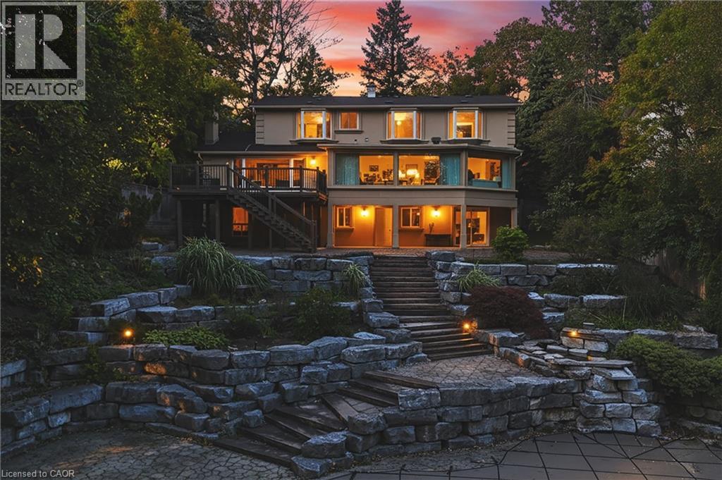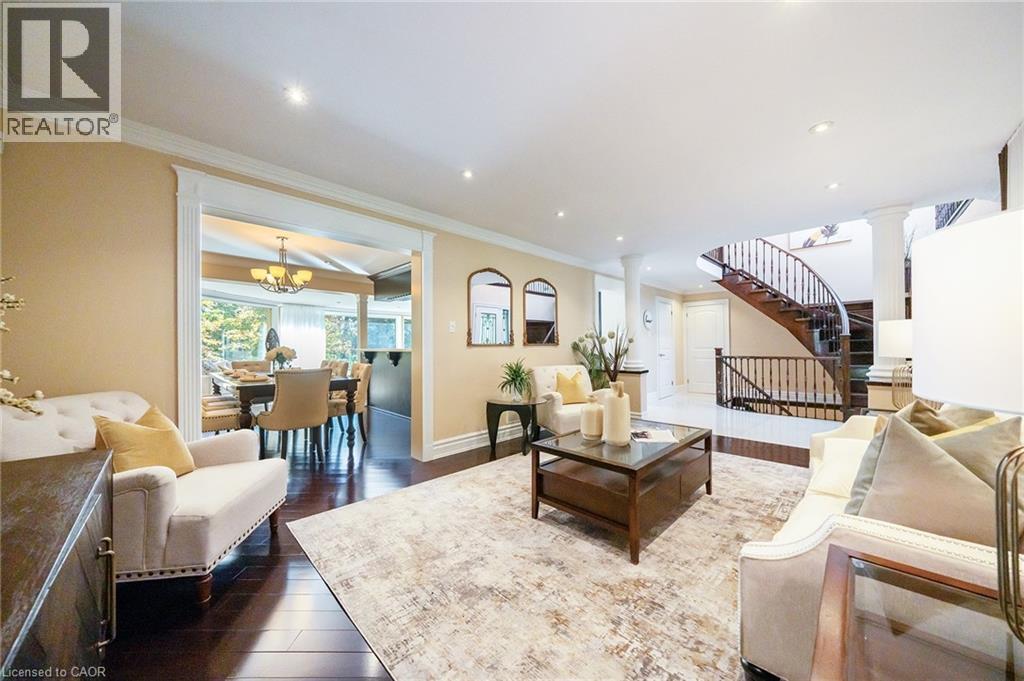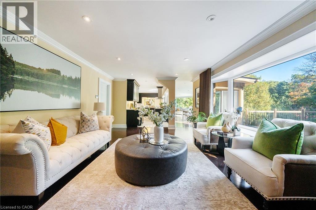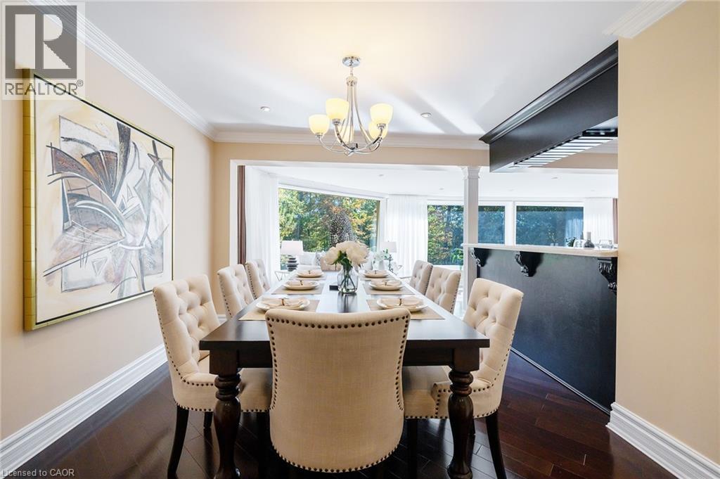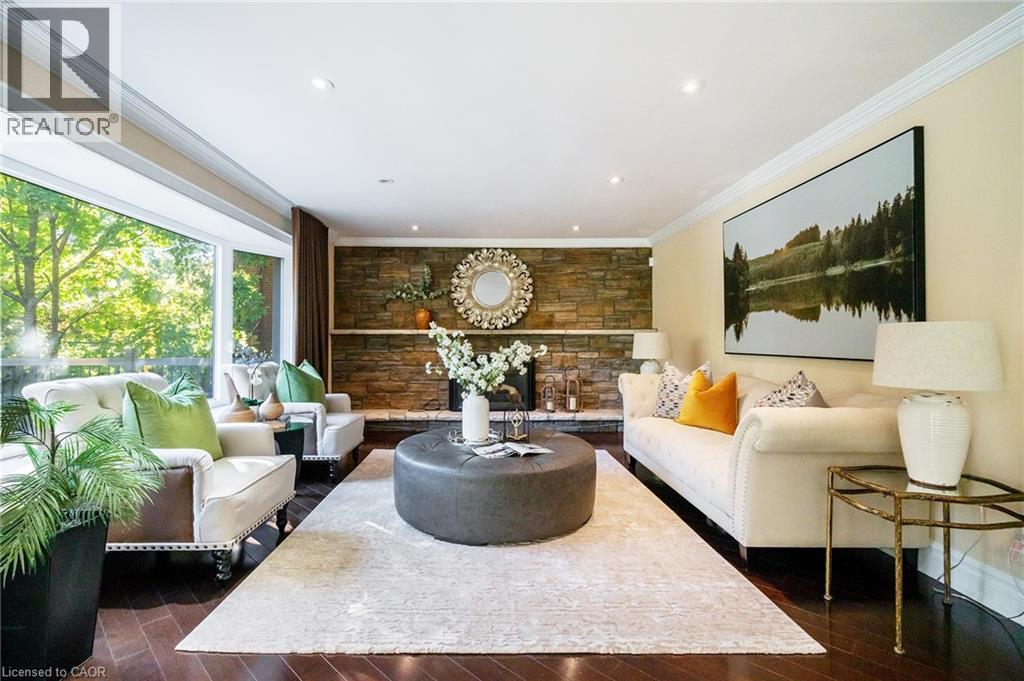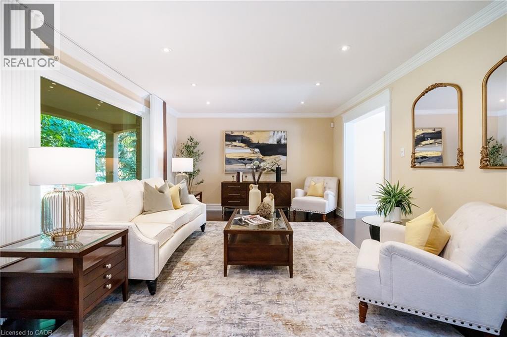 Grandly renovated 4-bedroom detached home with walkout basement on a rare 75’ x 229’ ravine lot in Mississauga’s prestigious Credit Woodlands, featuring a saltwater pool, pond, and gazebo backing directly onto the Credit River. This luxury family home is within walking distance to 222-acre Erindale Park and the scenic Culham Trail, minutes from Mississauga Golf and Country Club, and offers quick access to major highways and GO Transit for easy commuting to Toronto and Hamilton. A mature, tree-lined street leads to a deep double driveway accommodating 8 cars plus a 2-car garage. An interlocking stone walkway and covered front veranda overlook perennial gardens with sprinkler system. The backyard is a private oasis with a massive deck, covered terrace, terraced gardens, custom saltwater pool with waterfall, serene pond with sheer descent waterfall, private gazebo, and expansive green space framed by ravine views. Recent upgrades include freshly painted interior, deck and gazebo, new furnace, air conditioner, pool heater and cover, some updated main floor windows and new backyard fencing (2025), plus a newer roof. Inside, hardwood flooring, crown mouldings, pot lighting, upgraded trims, two fireplaces, and three walkouts enhance sophistication. The skylit oak staircase opens to elegant living and dining rooms, a family room with fireplace, and a chef’s kitchen with custom cabinetry, stone counters, stainless steel appliances, large island, and oversized breakfast room with walkout to deck. Upstairs, a sitting room, 2 bathrooms, and 4 spacious bedrooms are available, including a refined primary suite with a spa-like 5-piece ensuite featuring a claw-foot tub and a glass shower. The finished walkout lower level includes a recreation room with fireplace, coffered ceiling and built-ins, media/entertainment area, modern 3-piece bath, and 2 walkouts to the terrace overlooking the Credit River ravine. (70113104)