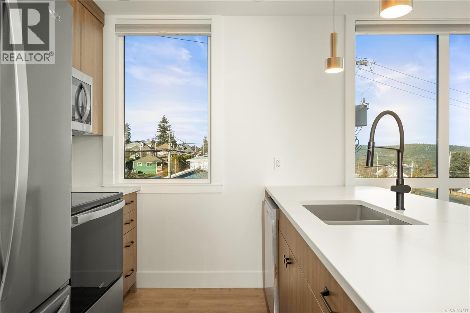 Welcome to Dalby’s on Dogwood, a 25-unit boutique building in the heart of Ladysmith. This spacious 1 bedroom plus den, 2 bathroom home offers a thoughtful layout that’s both functional and inviting. The open-concept living and dining area is filled with natural light and flows seamlessly to a private balcony where you can enjoy peaceful ocean views. The primary bedroom features ample space and a full ensuite, while the versatile den works beautifully as a home office, guest space, or hobby room. A powder room adds convenience for visitors and everyday living. The kitchen is well laid out with plenty of storage and workspace, making it ideal for both casual meals and entertaining. Located just minutes from shops, parks, trails, and Ladysmith’s charming waterfront, this home offers a relaxed coastal lifestyle with all amenities close at hand. Ideal for downsizers, professionals, or anyone looking to enjoy comfortable living in a prime Vancouver Island location. (30336686)