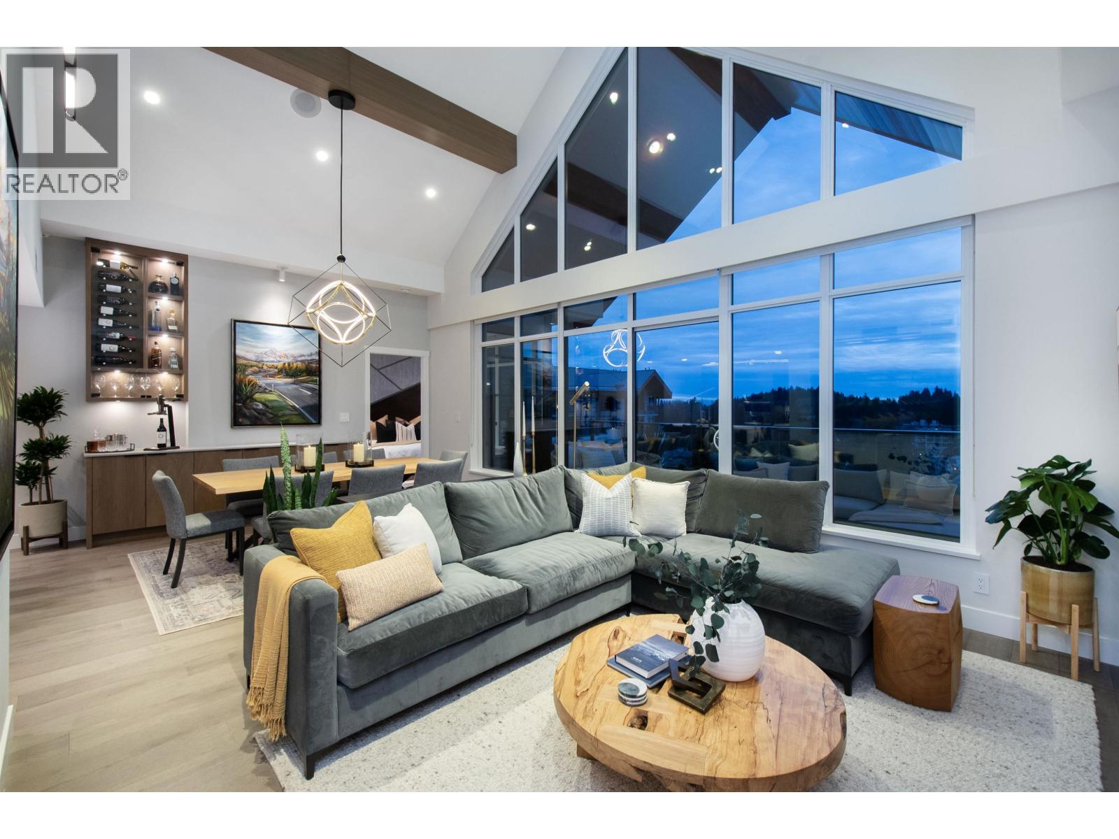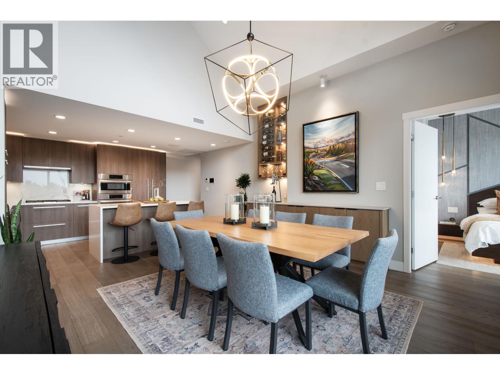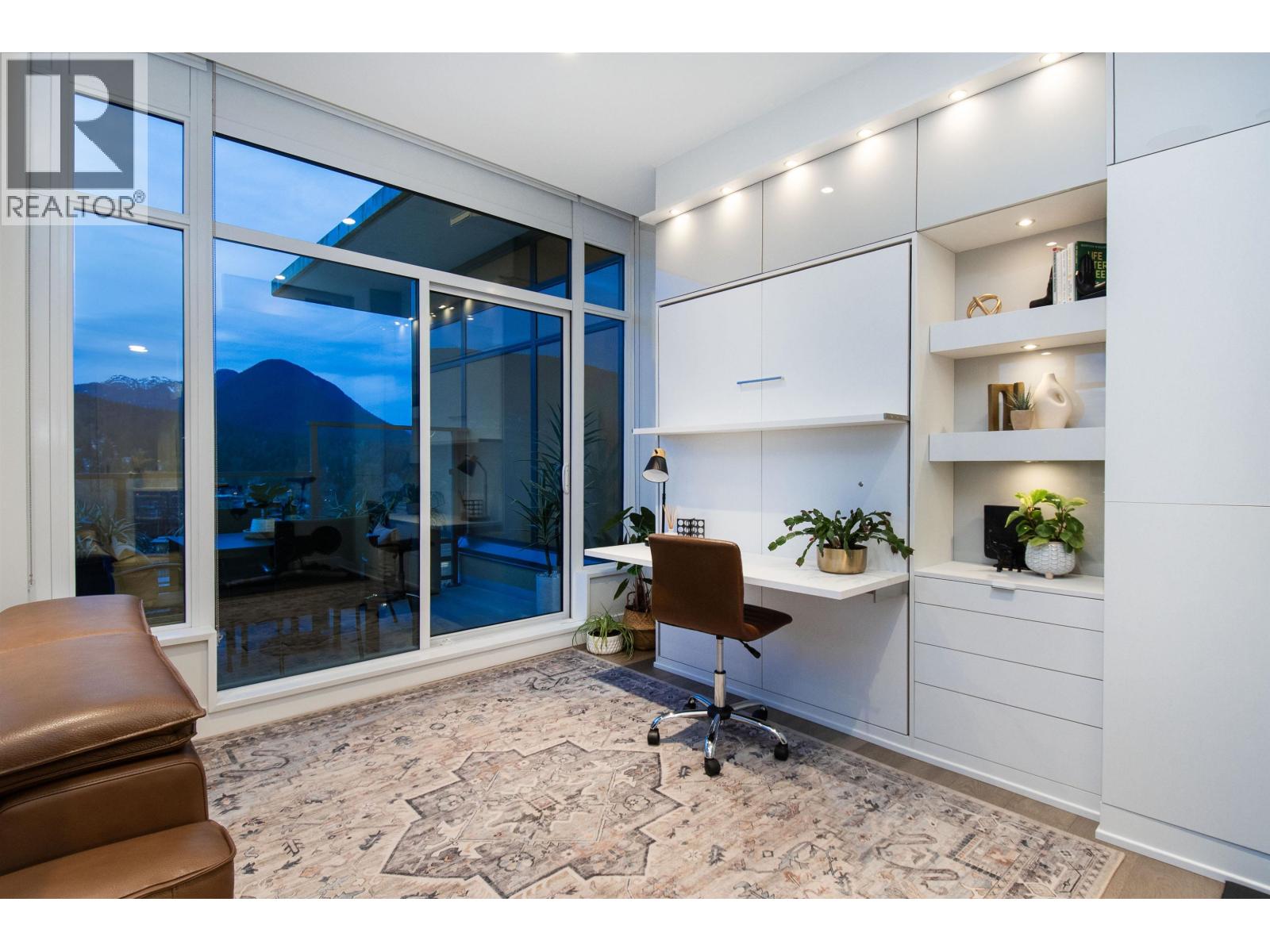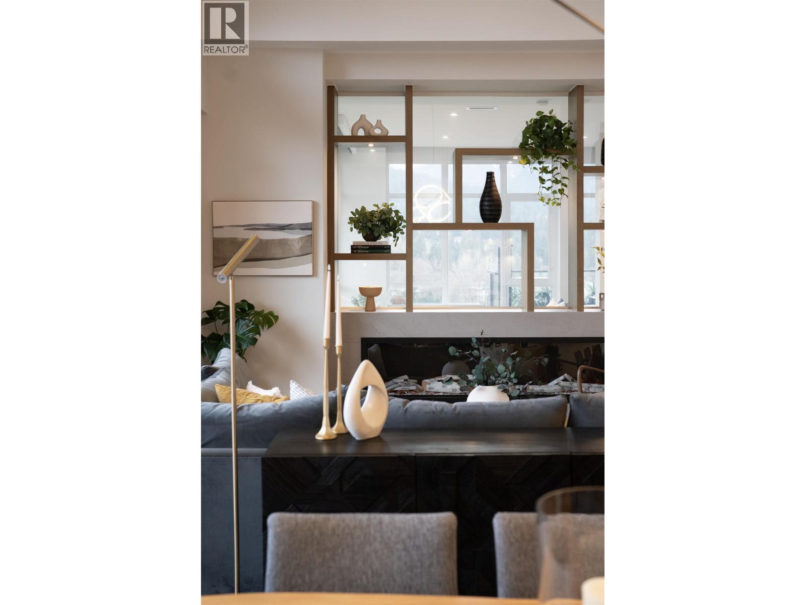 A Lynn Valley penthouse defined by architectural presence, layered living, and quiet luxury in a prime North Vancouver setting. The layout is confidently composed, this is life without compromise. The light-filled living and dining space is enhanced by vaulted ceilings and architectural beams, establishing proportion and scale. A discreetly separated secondary living area is delineated by a linear fireplace and custom smartglass, creating open sight-lines or complete privacy at the touch of a button. The space includes a custom wall bed and desk system, with a media area featuring a drop-down screen and projector for cinema nights. The kitchen integrates seamlessly, supporting daily flow while setting the stage for gathering. A custom built-in bed and feature wall anchor the primary suite. Built by Bosa and thoughtfully enhanced, the home feels measured and enduring throughout. Set atop The Residences at Lynn Valley, steps to trails, cafés, and everyday conveniences, this is design-led living with restraint. (32397376)