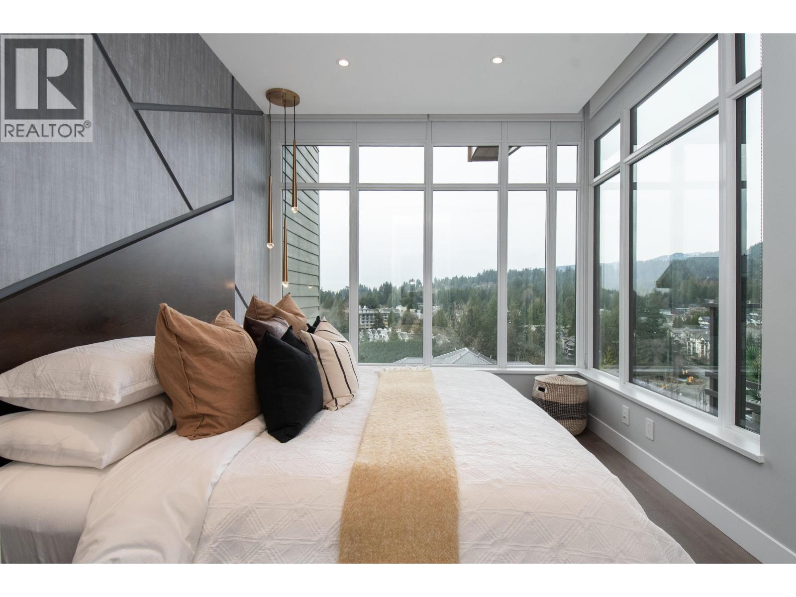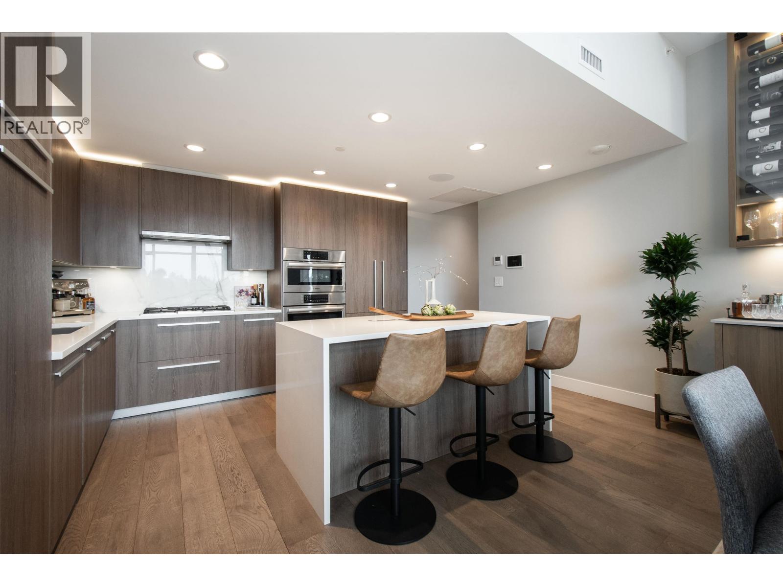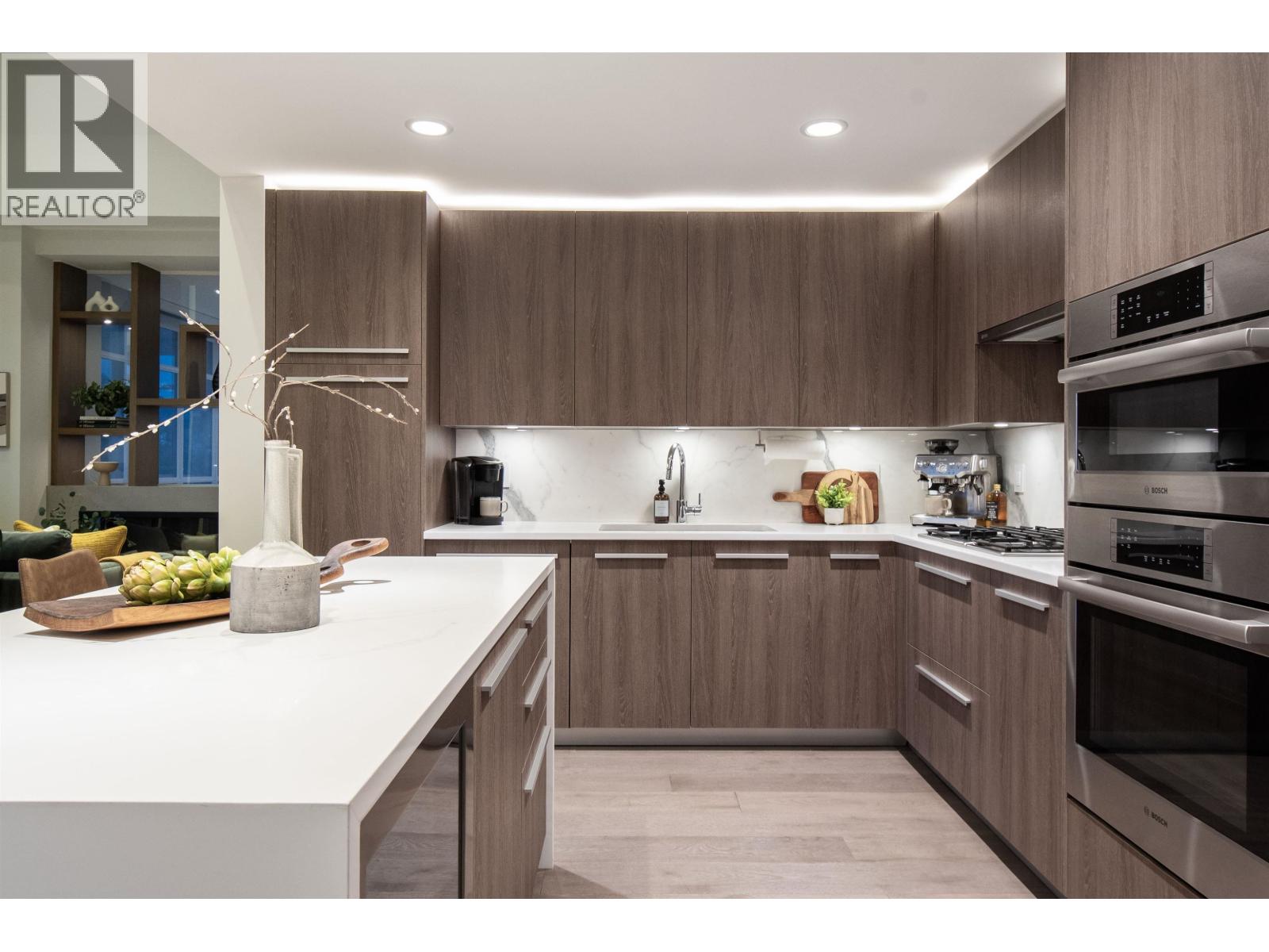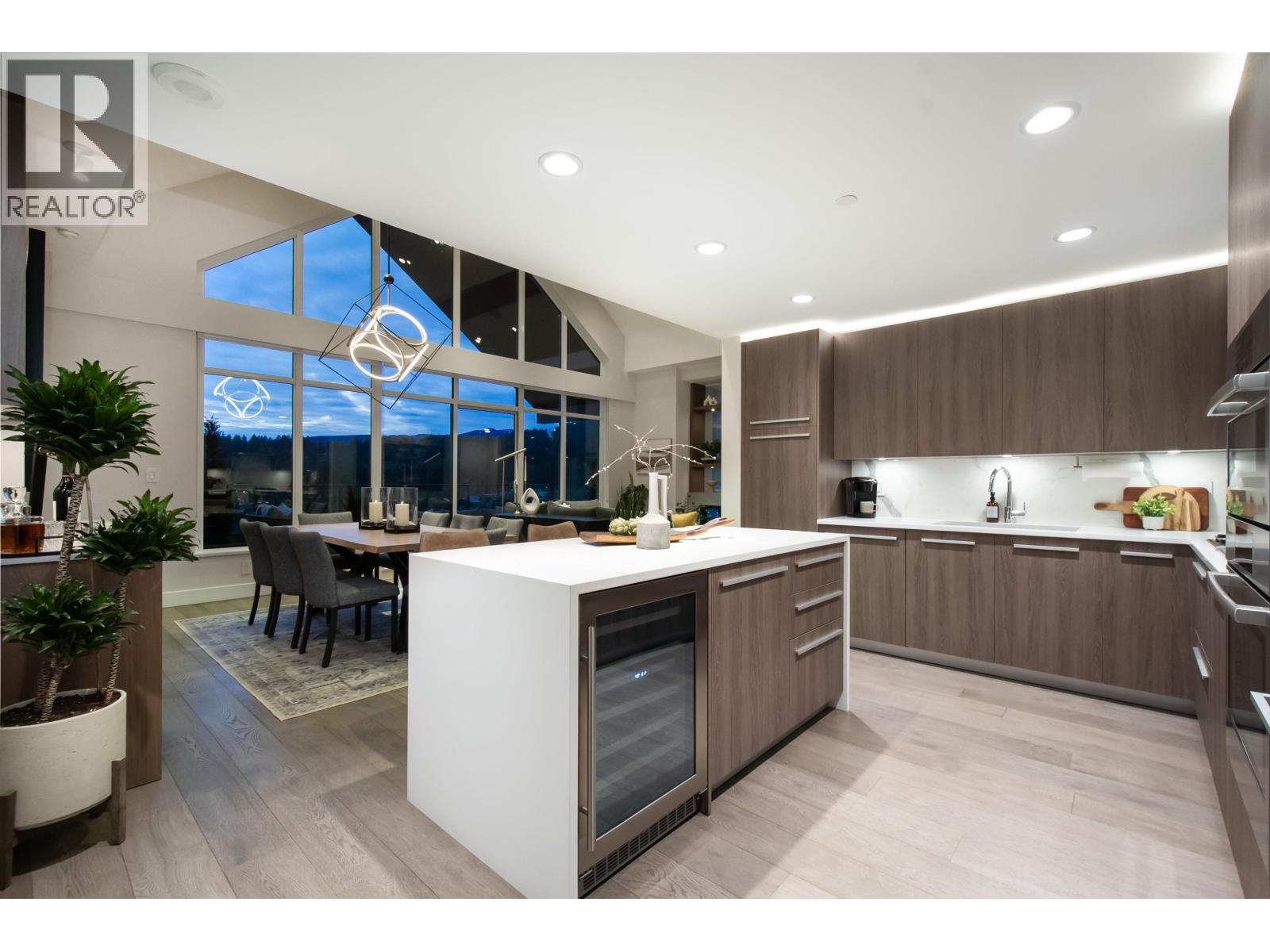A Lynn Valley penthouse defined by architectural presence, layered living, and quiet luxury in a prime North Vancouver setting. The layout is confidently composed, this is life without compromise. The light-filled living and dining space is enhanced by vaulted ceilings and architectural beams, establishing proportion and scale. A discreetly separated secondary living area is delineated by a linear fireplace and custom smartglass, creating open sight-lines or complete privacy at the touch of a button. The space includes a custom wall bed and desk system, with a media area featuring a drop-down screen and projector for cinema nights. The kitchen integrates seamlessly, supporting daily flow while setting the stage for gathering. A custom built-in bed and feature wall anchor the primary suite. Built by Bosa and thoughtfully enhanced, the home feels measured and enduring throughout. Set atop The Residences at Lynn Valley, steps to trails, cafés, and everyday conveniences, this is design-led living with restraint. (32397376)