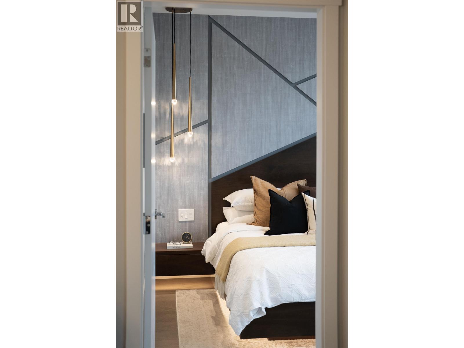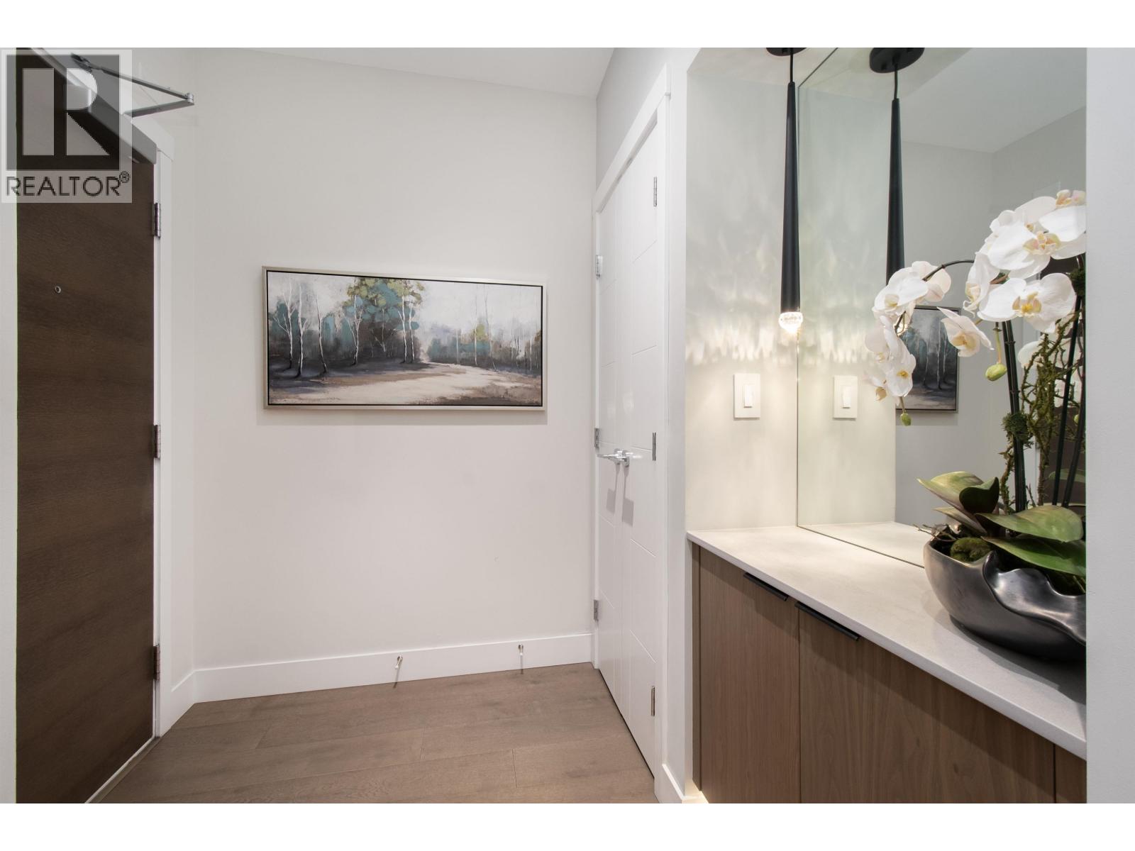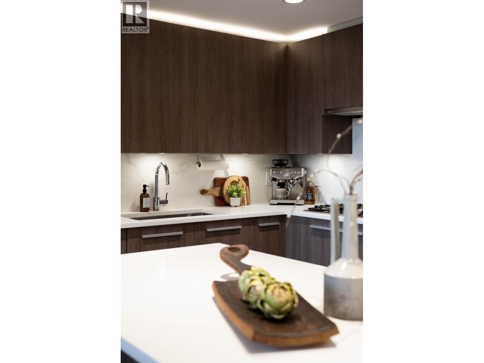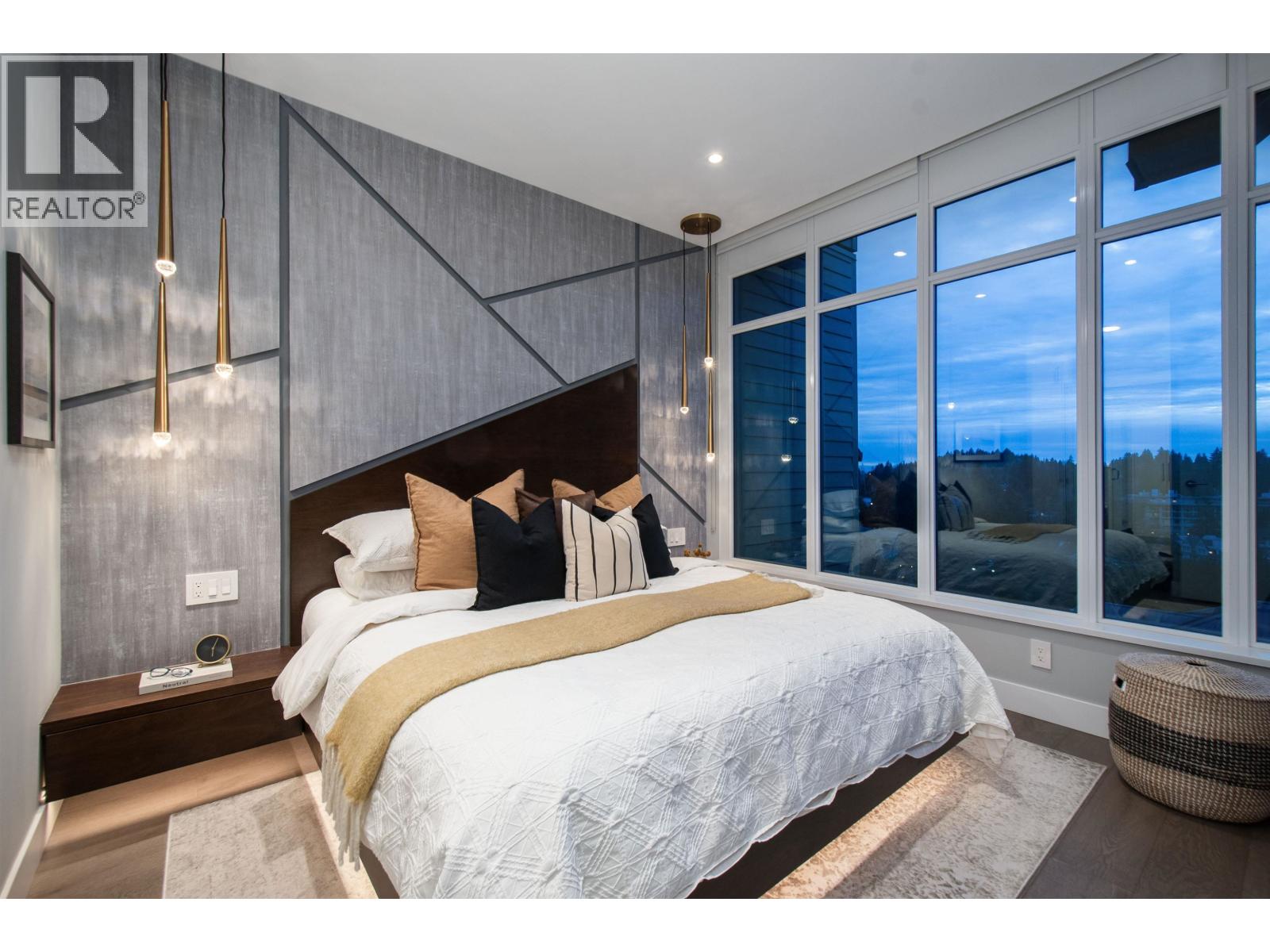 A Lynn Valley penthouse defined by architectural presence, layered living, and quiet luxury in a prime North Vancouver setting. The layout is confidently composed, this is life without compromise. The light-filled living and dining space is enhanced by vaulted ceilings and architectural beams, establishing proportion and scale. A discreetly separated secondary living area is delineated by a linear fireplace and custom smartglass, creating open sight-lines or complete privacy at the touch of a button. The space includes a custom wall bed and desk system, with a media area featuring a drop-down screen and projector for cinema nights. The kitchen integrates seamlessly, supporting daily flow while setting the stage for gathering. A custom built-in bed and feature wall anchor the primary suite. Built by Bosa and thoughtfully enhanced, the home feels measured and enduring throughout. Set atop The Residences at Lynn Valley, steps to trails, cafés, and everyday conveniences, this is design-led living with restraint. (32397376)