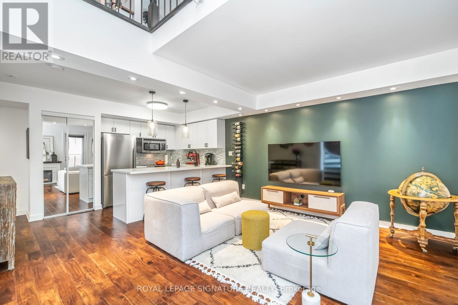 Stunning two storey loft featuring an exposed brick accent wall and dramatic 17 foot ceilings. Spanning 758 sq ft, this beautifully designed and truly unique space offers a spacious bedroom plus den, a full ensuite bathroom upstairs, a convenient main floor powder room, and two private balconies. Enjoy the rare convenience of a main floor walkout - no elevator required, along with a generously sized parking space.The loft showcases engineered hardwood flooring throughout and an updated kitchen with full size appliances, along with ensuite laundry for added ease. Available partially furnished if desired, this residence is ideally located in one of downtown's most sought after neighbourhoods, just steps to Wellesley, Bloor, and Sherbourne TTC stations. Coffee shops, restaurants, groceries, transit - it's in the heart of it all!Building amenities include a party room, BBQ area, landscaped courtyard, and bicycle storage. A perfect urban retreat that seamlessly blends character, comfort and convenience. Residents also enjoy complimentary access to the fitness centre and swimming pool at the community centre directly across the street which is amazing! (42060330)