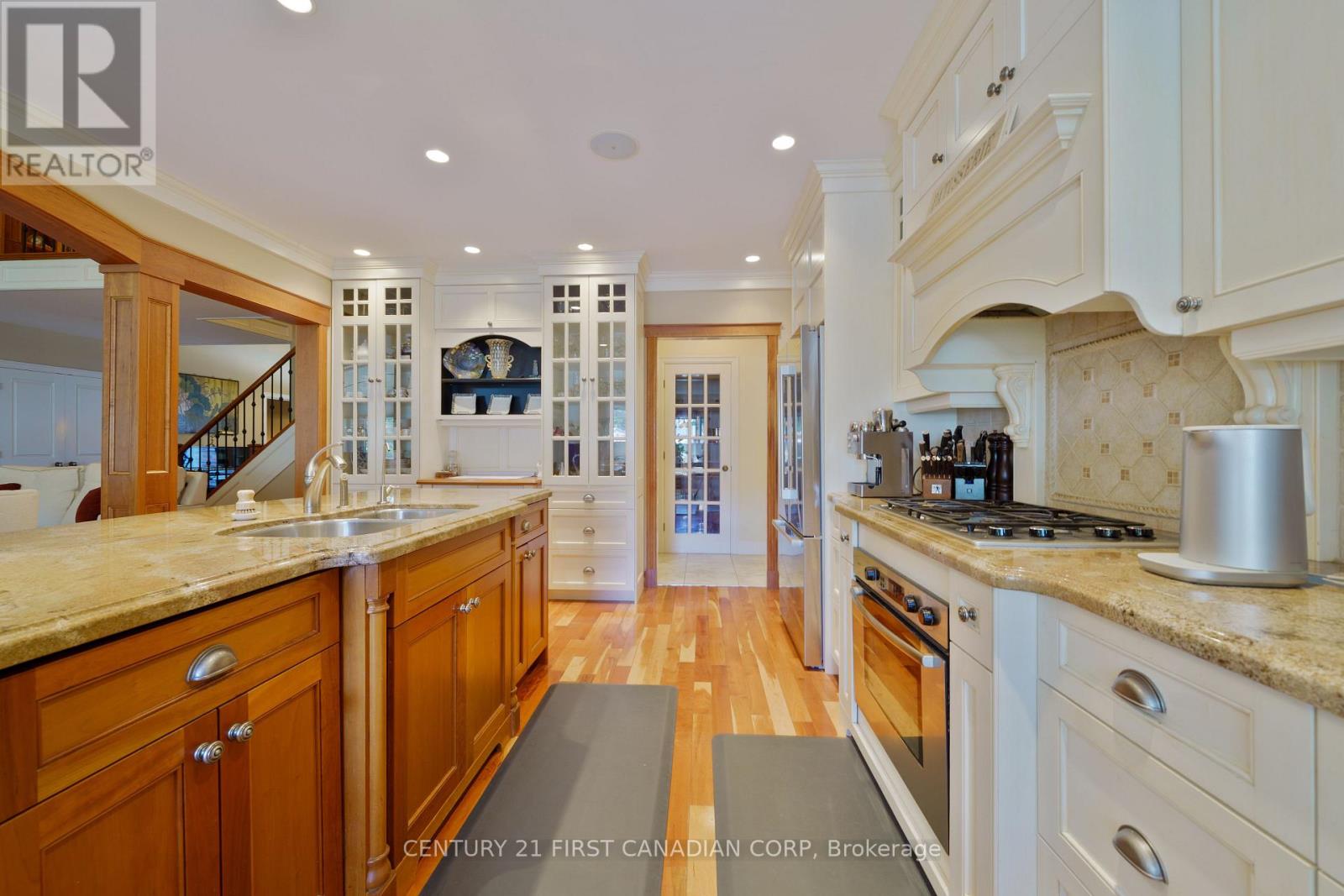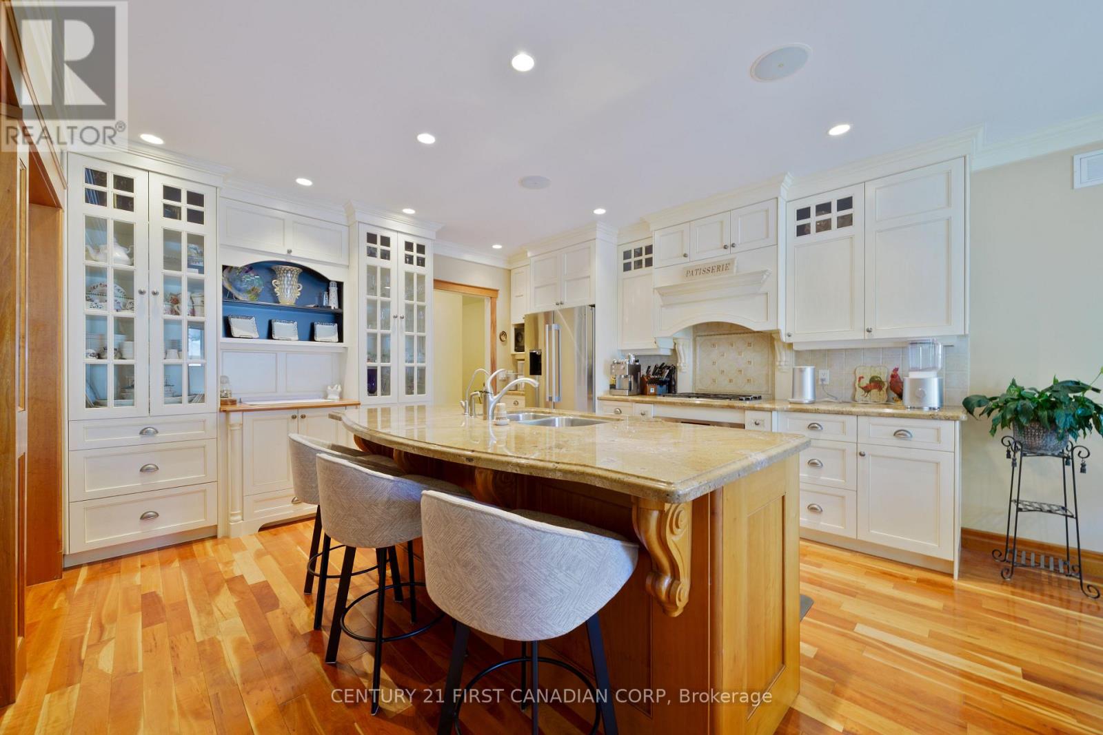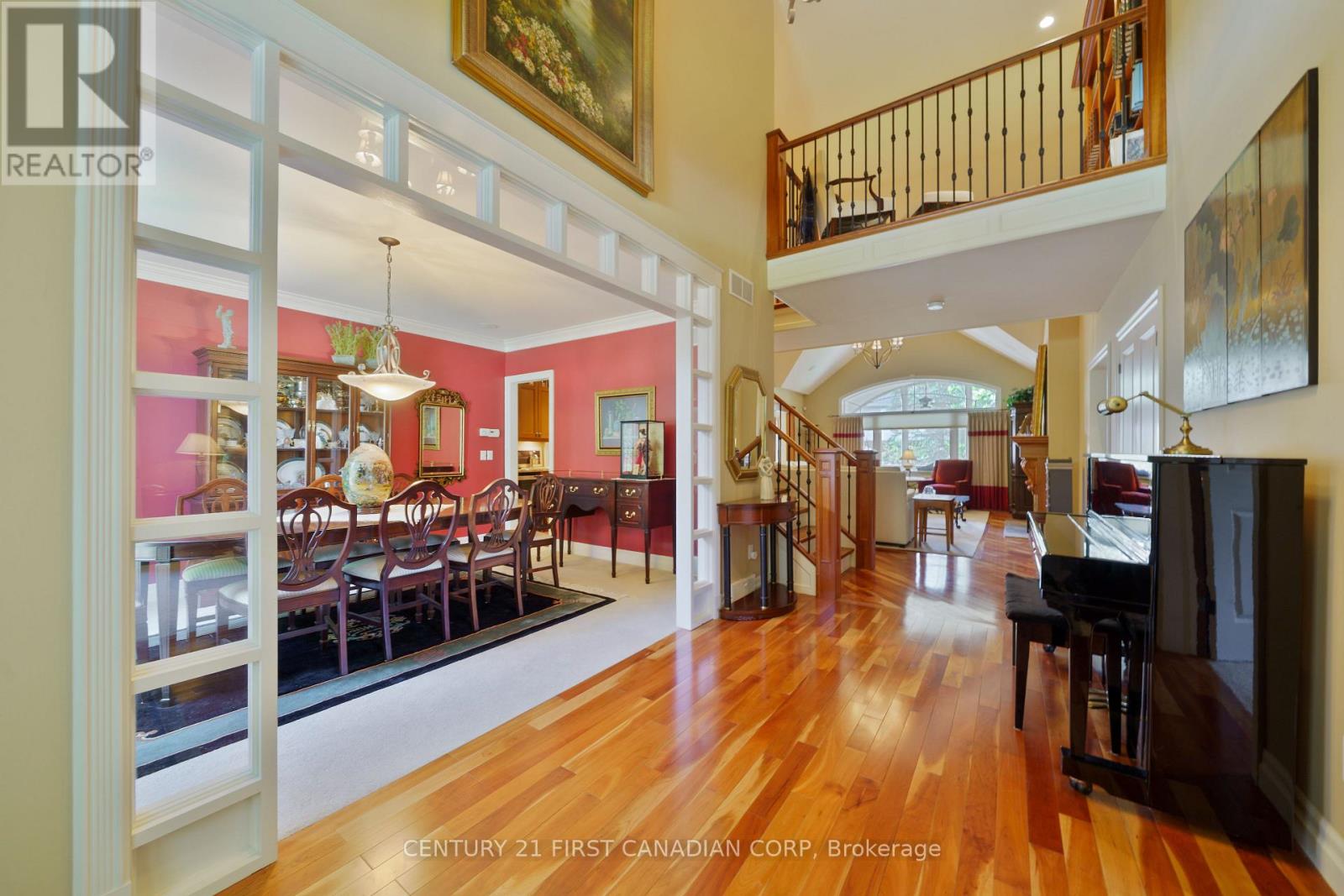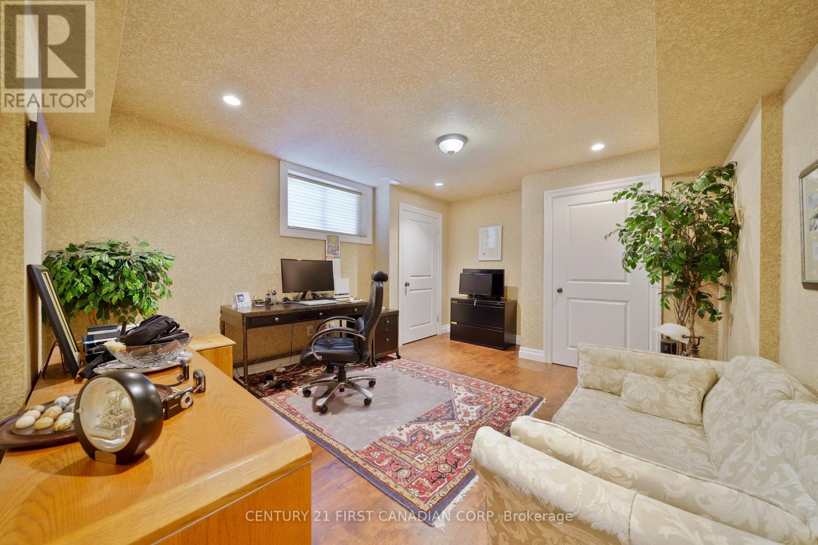 Located in the prestigious Sunningdale area of North London. Originally built as Bruce McMillian's model home offering many unique design elements rarely seen in homes of this caliber. Attractive curb appeal with professional landscaped gardens complete with irrigation system. The flagstone covered porch greets you as you enter into the warm and inviting interiors. The large main floor den features a custom wood ceiling treatment, a spacious formal dining room with separate wet bar for elegant entertaining. The open design great room with vaulted ceilings and custom fireplace overlooks into the enclosed tiled and screened in sunroom and patio to enjoy summer evenings. Built in speakers are integrated throughout the home. A european inspired kitchen with custom cabinetry, granite counters and island with breakfast area overlooks the massive great room. Walk-in pantry and heated flooring in the mud room, main floor laundry room and lower level bathroom. Enter into the main floor primary bedroom with it's own custom brick walled foyer and ceiling treatment adds to it's tranquility. There is also a main floor guest room that is ideal for multi-generational living. Upstairs you will find 2 additional bedrooms with a jack and jill bathroom and very large walk-in closets plus a cozy book library overlooking the great room and foyer. In the lower level you will love the separate theatre room with built in speakers with media equipment included, billiard and games room, exercise room, additional bedroom or office space, cold room plus an incredible amount of storage area. Shingles, furnace and central air have been updated within the last 3-4 years. This luxury home exudes warmth along with spacious interior spaces ideal for today's lifestyle! (42060921)