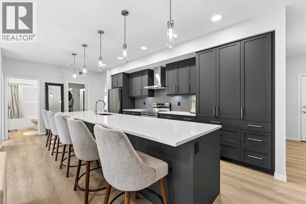 An EXCEPTIONAL OPPORTUNITY to own a LIKE-NEW, HIGH END, LUXURY condo for less than the cost of comparable new construction. Welcome to Seton Serenity by award-winning Cedarglen Living, where this beautifully upgraded 2 bedroom, 2 bathroom residence offers over $23,000 in thoughtful upgrades and a refined, move-in-ready lifestyle. The open-concept layout features 9' ceilings, luxury vinyl plank flooring in the main living space, triple-glazed Low-E windows, sound-reducing membrane between floors, and a striking electric fireplace anchoring the living space. The kitchen is a true highlight with an island extension, built-in pantry, upgraded appliances, quartz countertops, upgraded sink, full-height tile backsplash, soft-close cabinetry, cabinet valance lighting, and sleek roller blinds throughout. The spacious primary bedroom includes a walk-in closet and a luxurious ensuite with raised vanities, upgraded toilets, full-height tile, and an elegant LED mirror, while the well-positioned second bedroom offers added privacy near the second full bathroom. Additional features include stacked washer and dryer adding more in-suite storage, stylish barn door detail, extra fob, clear glass balcony railing, BBQ gas line, energy recovery ventilator (ERV), and titled secured underground parking. A rare and valuable bonus: approved short-term rental businesses are permitted under current bylaws, making this an excellent opportunity for homeowners and investors seeking a luxury rental near South Health Campus, one of Calgary's largest employment hubs. Enjoy unbeatable walkability to the world's largest YMCA, South Health Campus, shops, restaurants, cafés, and Seton HOA amenities. Pet and rental friendly, this extensively upgraded condo delivers the luxury of new construction without the wait, uncertainty, or added cost. (31594440)