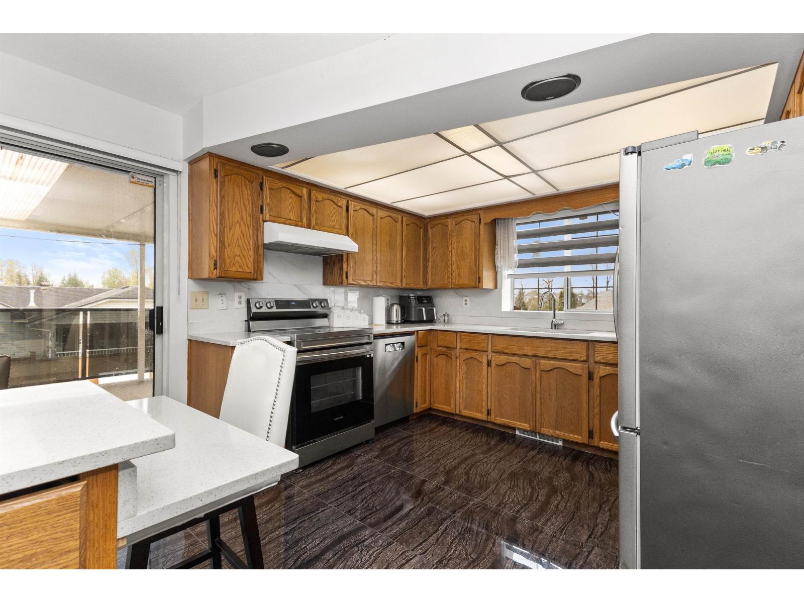 West Abbotsford home with 1 bedroom suite (in-law) w/ Den and Living Room. 2,200+ SF of finished living space includes beautiful cherry hardwood floors with deep walnut finish, crown mouldings, large open wrap around kitchen, living room, dining room and huge southern facing deck perfect. Fresh new landscaping makes for terrific curb appeal. Lots of parking. New roof and hot water tank. This home is in superior condition. Visit listing REALTORs website for more photos and information (32398108)