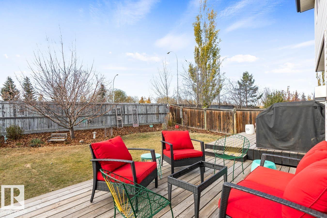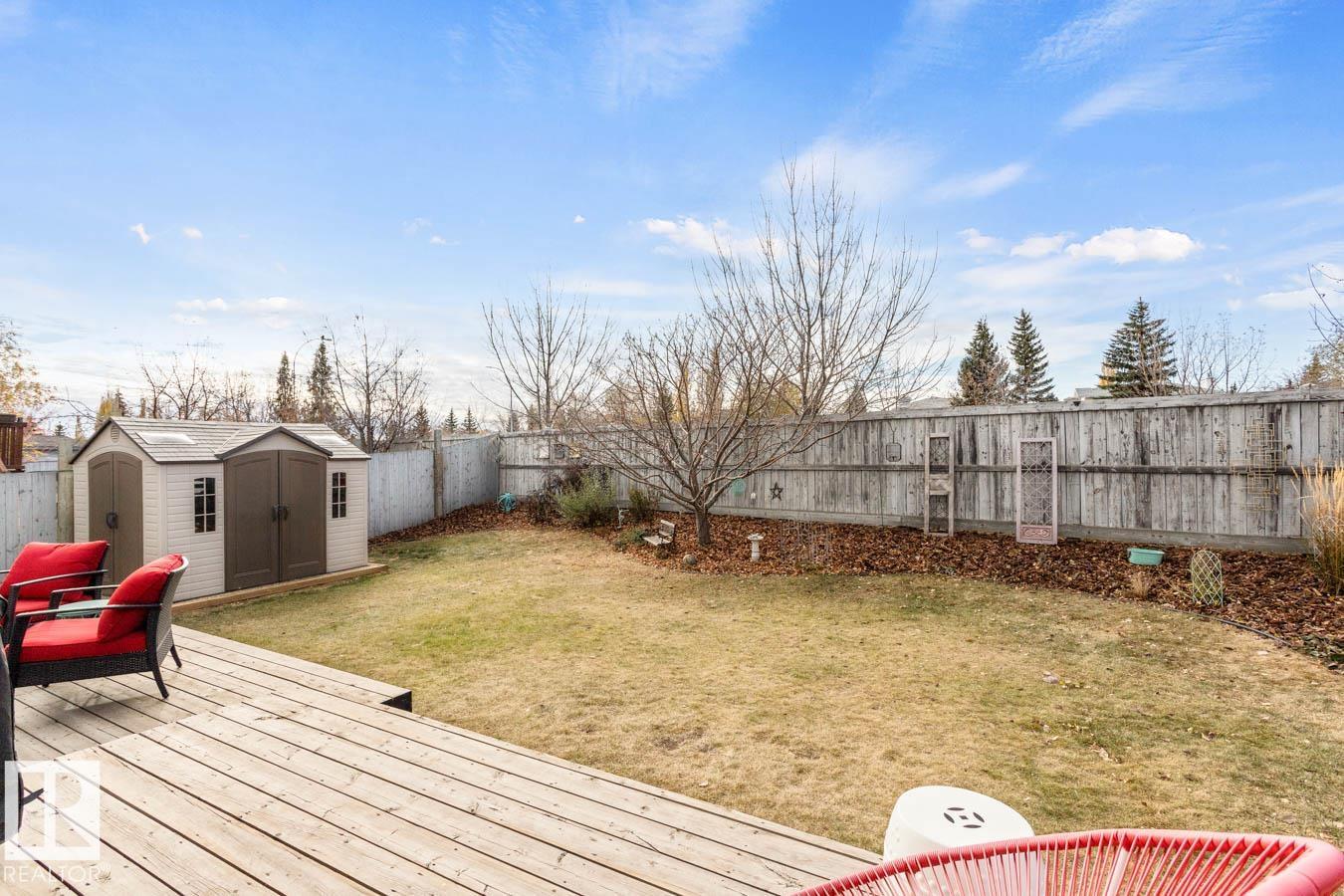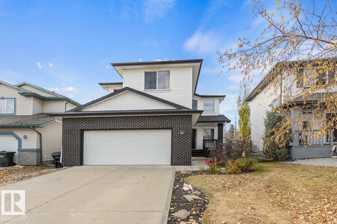 Located in the desirable community of Heritage Hills, this well-maintained home offers 3 bedrooms, 2.5 baths, and a NEW ROOF. Step inside to a bright, functional floor plan featuring luxury vinyl plank flooring and an abundance of natural light. The kitchen showcases plenty of white cabinetry, stainless steel appliances, a corner pantry, and island overlooking the dining area with cozy fireplace and a family-sized living room with soaring two-storey ceilings. Upstairs, the king-sized primary suite features dual closets and a private ensuite. Two additional generous bedrooms, a 4-pc main bath, and convenient upper-floor laundry complete the level. The unfinished basement provides excellent potential for a rec room or additional bedrooms & bathroom with RI plumbing. Enjoy the west-facing, fully fenced and landscaped yard with entertaining-sized deck and storage shed. Fantastic location close to parks, schools, Heritage Hills Dog Park, wetlands trails, and all amenities. (33784800)