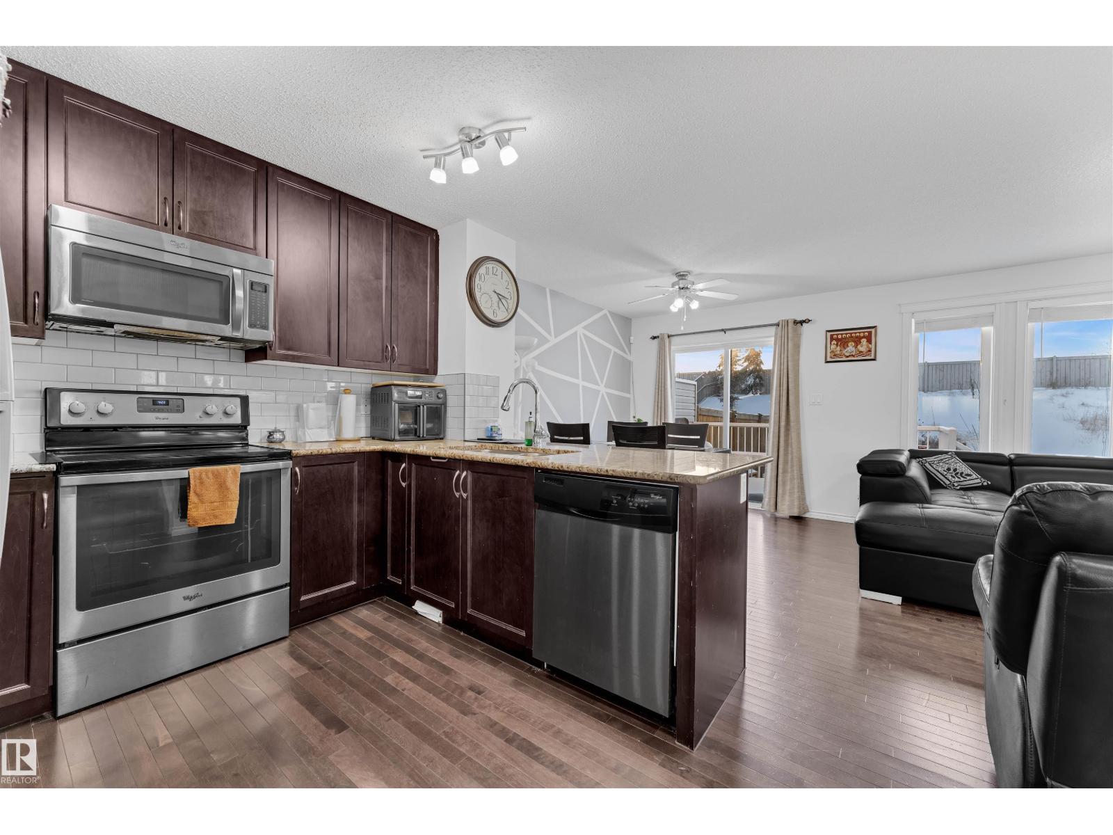 Welcome to this beautiful 3-bedroom, 2.5-bath home located in the highly desirable community of Maple Crest , an opportunity you don’t want to miss at this price! Step into the bright and welcoming entrance and enjoy the open-concept layout designed for both comfort and functionality.The kitchen features granite countertops, espresso cabinetry, a modern backsplash, and stainless steel appliances. The main floor also offers a spacious living room with a cozy fireplace, a dedicated dining area, and a convenient half bath.Upstairs, you’ll find a full 4-piece bathroom, two well-sized bedrooms, and a large primary bedroom complete with a generous walk-in closet and a 4-piece ensuite. The partially finished basement adds extra living space with a recreation room and bar, perfect for entertaining.Outside, enjoy a professionally built deck and a yard spacious enough for gardening or outdoor relaxation. Situated on a quiet street, this home is close to shopping and offers quick access to Anthony Henday Drive. (33784804)