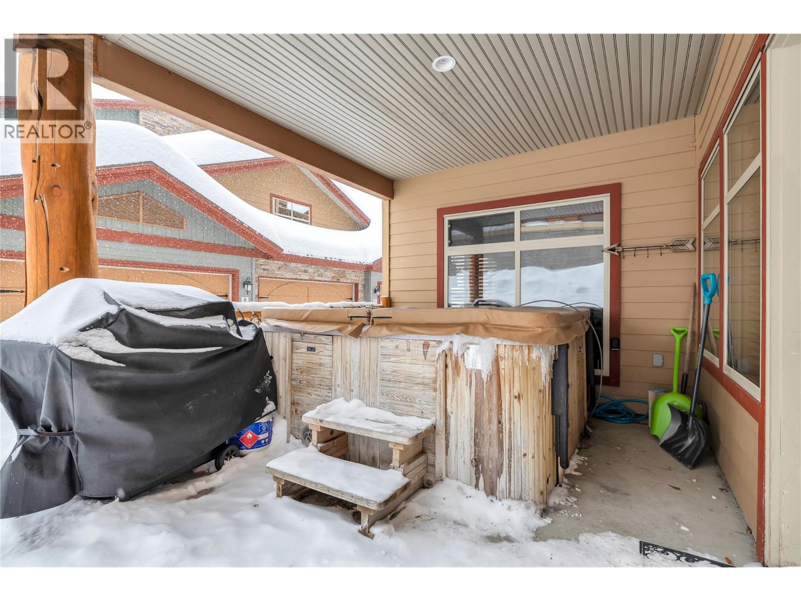 Welcome to your dream mountain retreat in the heart of Happy Valley! This beautiful two bedroom, two bathroom main floor unit offers an unparalleled living experience with stunning features and amenities. As you step into this fully furnished haven, you'll be greeted by breathtaking views of the Monashees, right from the comfort of your private hot tub. The attached heated garage ensures convenience and warmth during the snowy winter months, and the large island kitchen, adorned with tile counters and a built-in wine rack, is a chef's delight. The attention to detail is evident with custom spyglass hardware and geothermal heated floors throughout. Cozy up by the fireplace in the spacious living area, equipped with stainless steel appliances and a washer and dryer for your convenience. This property boasts a private entrance, ensuring a sense of exclusivity and seclusion. With close proximity to the gondola, tube park, skating rink, local school, snowmobiling trails, helicopter rides, and cross-country skiing, there's never a dull moment. The great ski in/out access adds to the appeal for winter sports enthusiasts. Immerse yourself in the Happy Valley lifestyle, with the added excitement of a ""proposed"" golf course nearby. Whether you're seeking adventure on the slopes or tranquility in a scenic setting, this property offers the perfect blend of both. Exempt from Foreign Buyer Ban, Foreign buyers tax, speculation tax, empty home tax, and short term rental ban. (39687349)