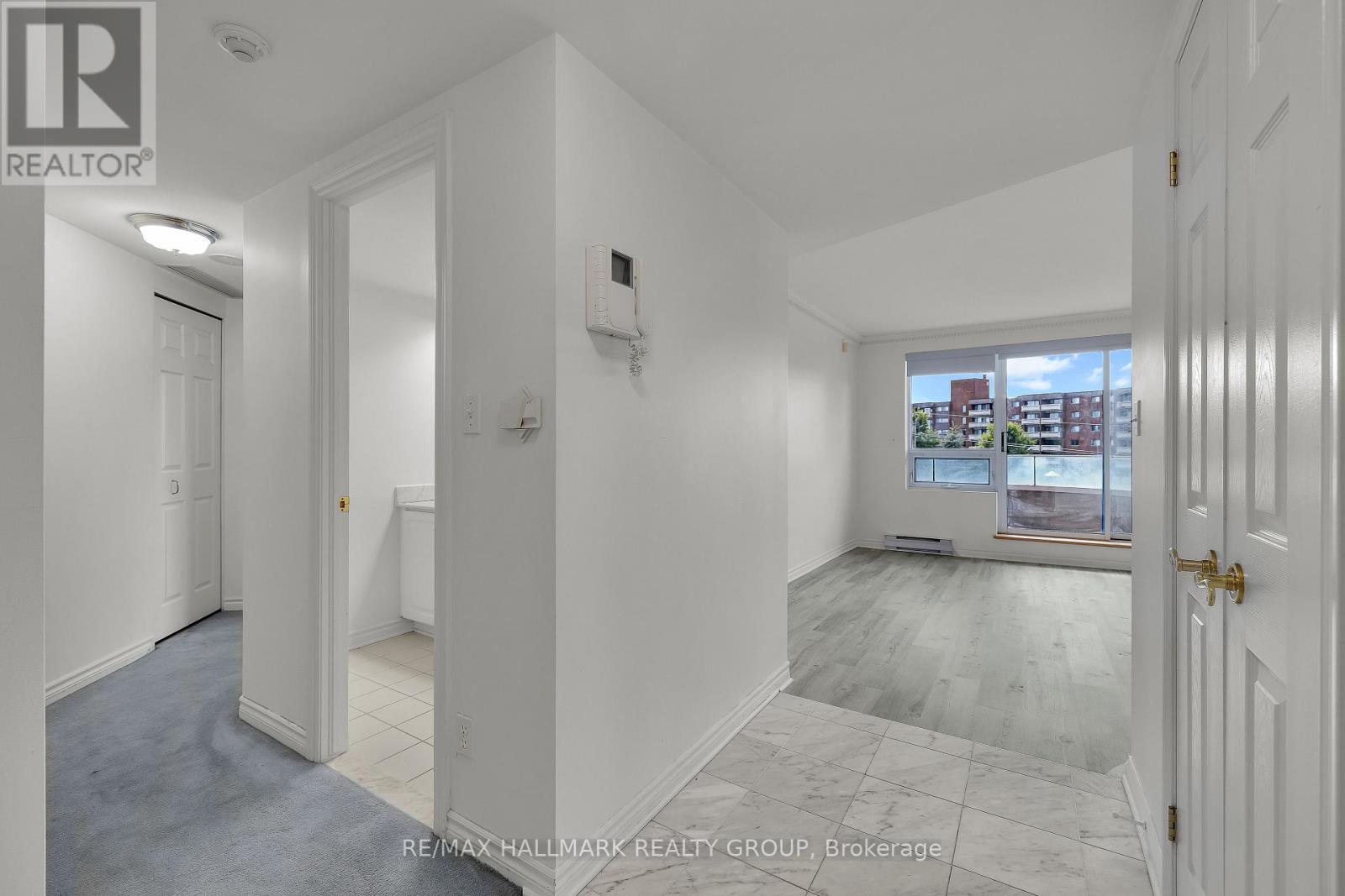 Bright, spacious, and full of potential this 1-bed, 2-bath condo in Ottawas west end offers a smart layout and a chance to make it your own. The living space is open and welcoming, with oversized sliding doors that lead to your private balcony and fill the unit with natural light.The kitchen wraps around three walls, offering tons of counter space and storage. The bedroom is oversized with a large closet and a marble-finished ensuite featuring a soaker tub and gold hardware. Plus, theres a second bathroom for guests. Yes, some finishes could use a refresh (hello, original blue carpet!), but the bones are solid and a little vision could go a long way.The building is clean, quiet, and packed with perks: an indoor pool, gym, and study/work areas. You're close to Bayshore and Carlingwood, the Ottawa River, Andrew Haydon Park, and the future LRT extension. If you're looking for value, space, and a project you can personalize, this one is worth a closer look (42062271)
