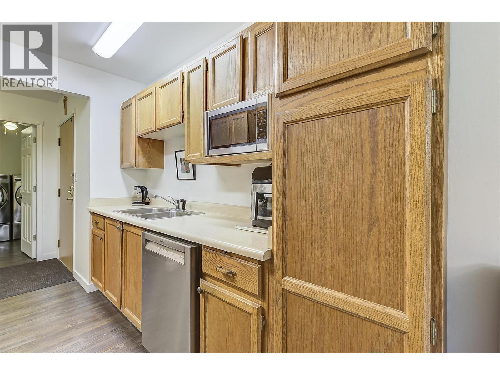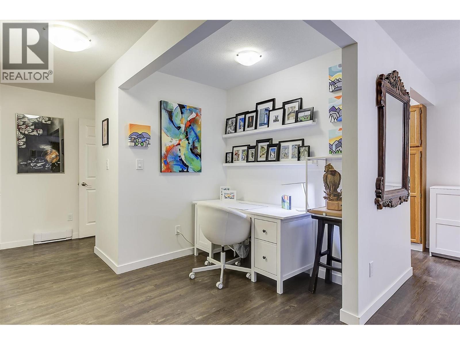 Come and see this large floorplan top-floor Mill Creek-view corner unit, on the quiet side of the building, in the sought after 'The Colonial' building. The location is excellent for walkability to parks, beaches, downtown amenities & lifestyle, KGH, City Transit and shopping. Unit upgrades to this 2-bedroom + den space 2-bathroom home, with a large enclosed sunroom, include air conditioner, flooring, paint, most of the lighting, baseboards, Bosch dishwasher, tub/glass/2 toilets, laundry room door, storage closet conversion into office space (den area), electrical upgrade, baseboard heaters, thermostats, microwave. Building upgrades include HVAC system in 2025, windows, decks (#304 was one of the first completed), hot water recirculating pipes, lighting in common areas to LED, front foyer flooring, elevator upgrade, and roof 12 years ago. This 55+ building has amenities that include a games room, gym, workshop, library, large meeting space backing onto Mill Creek, storage, bicycle storage & underground parking. No pets except for 2 small caged birds allowed. All remaining furniture, except for the artwork or sculptures, are negotiable. This home is available immediately, it is easy to view, and it is definitely worth a look! (39686162)