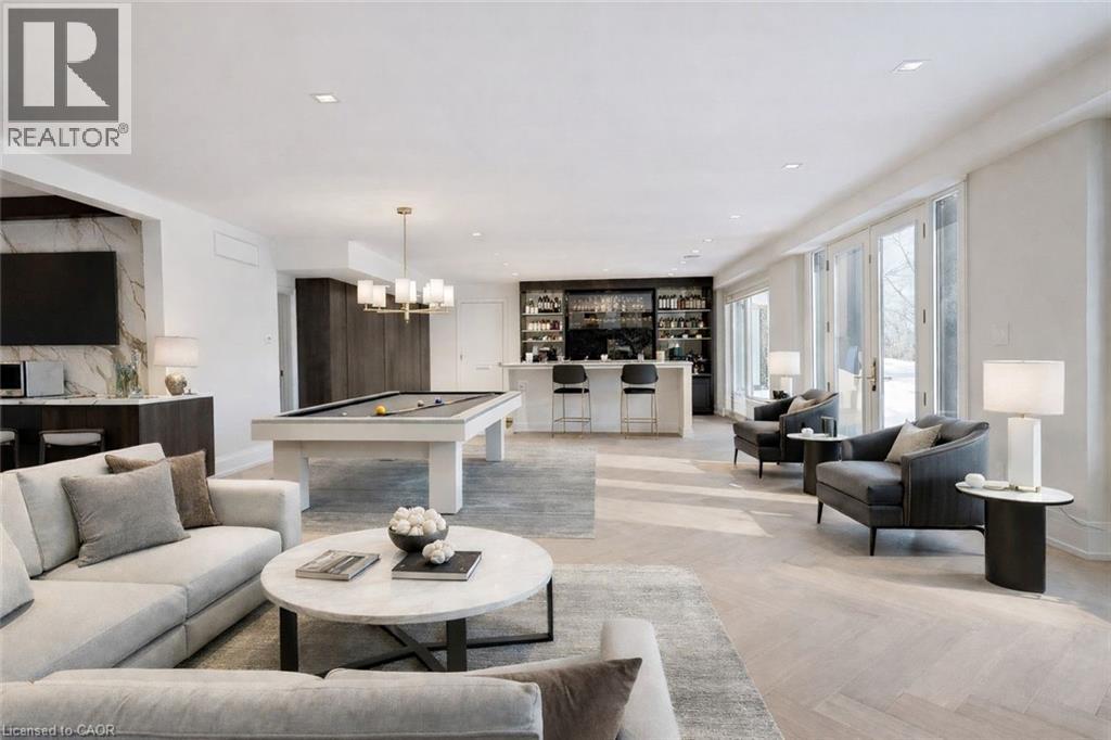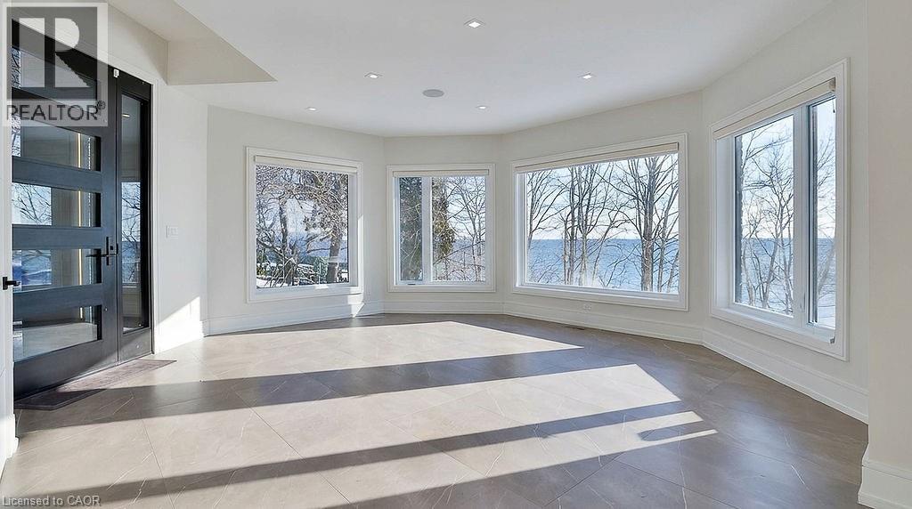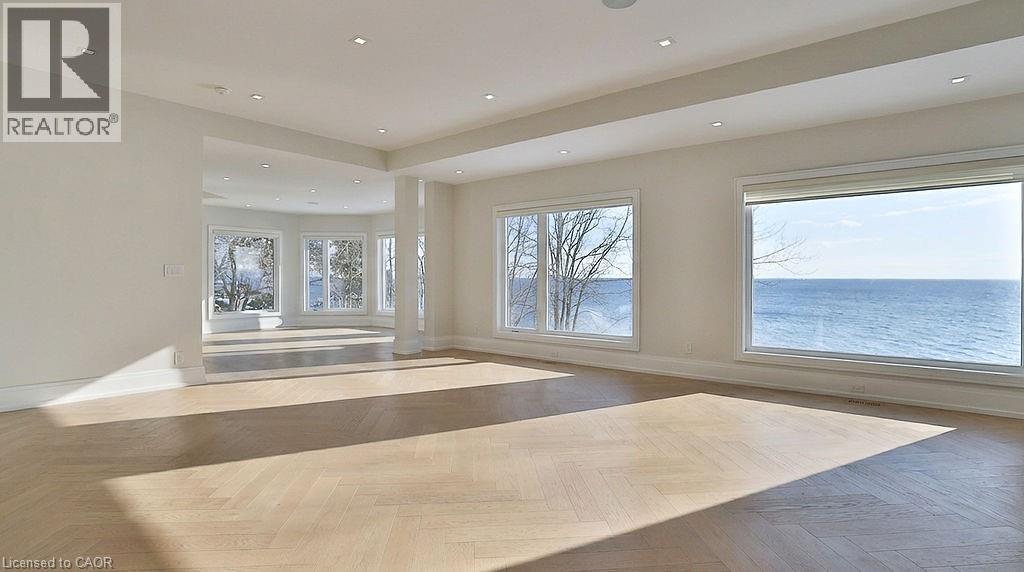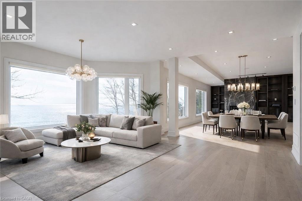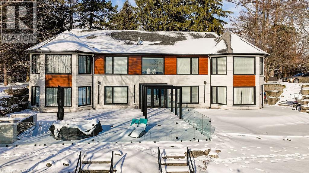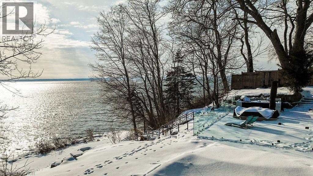 Perched directly on the shores of Lake Ontario with sweeping, unobstructed water views, this exceptional 4 bedroom, 6 bathroom bungalow offers over 5,200 square feet of beautifully finished living space in Burlington's prestigious Shoreacres neighbourhood. Extensively renovated throughout, the home blends timeless elegance with modern luxury, featuring expansive principal rooms flooded with natural light and thoughtfully designed to showcase the breathtaking waterfront setting. The full walkout basement adds incredible versatility and flow, ideal for entertaining, extended family living, or guest accommodations. Outside, the resort-style backyard is an entertainer's dream with a pool, meticulously landscaped grounds, and multiple spaces to relax and take in the spectacular scenery, while a private security gate and driveway parking for 8+ vehicles provide exceptional privacy and convenience. A rare opportunity to own a fully renovated lakefront bungalow in one of Burlington's most coveted waterfront communities, just minutes to top schools, parks, amenities, and commuter access. Some photos have been virtually staged. (70115330)