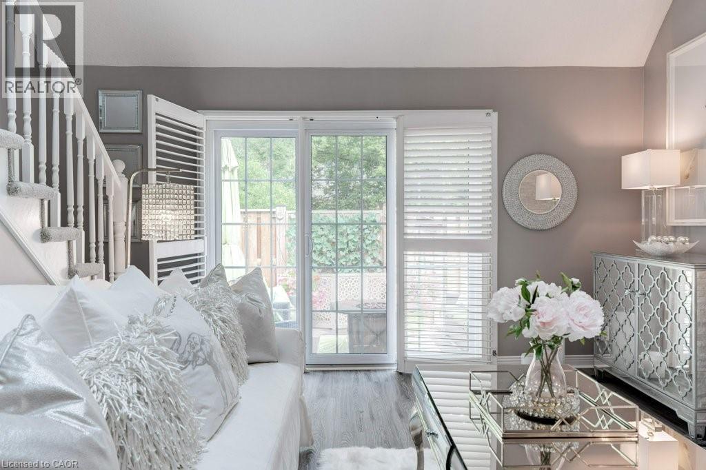 Incredible Location!! Updated Executive Townhome a short stroll from the Lake & Downtown Burlington. Welcome to the Charming Community of Maple Crossing, a private enclave of beautiful brick Townhomes surrounded by mature trees & plush gardens; only 2 blocks from the Lake! Uptown Loft Style 1+1 Bedroom, 2 Bath Townhome with backyard Terrace. Spacious Main Floor with wood plank vinyl flooring, well appointed eat-in Kitchen, Great Room w/ stunning Ledgestone Gas Fireplace Feature wall, Vaulted Ceilings & Triple Skylights. Upgraded Kitchen with white cabinetry, granite counters, custom back splash, Pantry, Breakfast Bar & window Dining Nook. Primary Bedroom spacious enough for a King bed, w/ vaulted ceilings, skylights, His & Hers Closets & Luxe 3pc Ensuite Bath with oversized Walk-In Glass Shower. Fully finished Basement offers and additional 400 sqft. of freshly updated Flex living space; new neutral paint with lush new wall to wall Berber carpet & an updated 3pc Bath with/ Luxurious clawfoot Soaking tub. Walk-out to a private fully fenced backyard Terrace for fabulous summer entertaining & BBQ's. Recently updated fencing & back Gate which opens onto well maintained green space. Two parking Spaces right outside your front door. Condo Corp. looks after Landscaping & Snow Removal in this quiet Townhome complex. Perfect for those who desire an easy lock & leave lifestyle. Walk to Burlington's Waterfront, unique Downtown Shops & Restaurants, Mapleview Mall, Theatre, Art Gallery, Jo Brant Hospital & More! Easy Transit, GO & Highway access. Low condo fee. Roof, Skylights & Fences have all been updated recently. Don't miss this one! Just move-in & start living a carefree Downtown lifestyle today! (70115294)