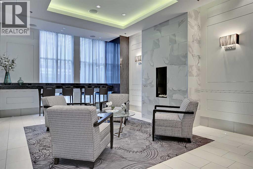 *VISIT MULTIMEDIA LINK FOR FULL DETAILS & FLOORPLANS!* Welcome to SUB-PENTHOUSE LIVING at Vogue! This 2-bed + den, 2-bath condo w/ over 1,200 sq ft on the 34th-floor w/ amazing city skyline band river views boasts two balconies opening off the main living areas. Naturally bright living w/ soaring ceilings, modern light and ceiling details, an open concept floorplan, & engineered hardwood flooring throughout (no carpet!), you are going to love the urban life at Vogue. Gather around the massive island w/ breakfast bar seating & dual undermount sink in the modern, sleek kitchen. Stainless steel appliances include a fridge w/ French doors, a deli drawer, & a freezer drawer, a gas stove & hood fan, a dishwasher, & built-in microwave. White quartz counters & marbled tile backsplash complement the wood & white cabinetry & modern pendant lighting. The open-concept living, dining, and den area has large windows, a gas fireplace, & access to TWO balconies via sliding glass doors. 2 bedrooms flank the main living space for ultimate privacy. The primary bedroom features a walk-in closet w/ custom built-in storage, and a private 5-pc ensuite. Featuring white quartz counters, modern faucets, dual undermount sinks, wood grain cabinetry, a standup shower, & soaker tub w/ full height tile, you’ll find everything you want & more in a primary suite. The secondary bedroom on the opposite side of the unit features a large window, a walk-in closet w/ custom built-in storage, & quick access to the main 4-pc bathroom w/ white a quartz counter, undermount sink, modern faucet, wood grain cabinets & a tub/shower combo w/ full-height tile. Rare for condo living, this unit has a laundry room w/ a washer & dryer, & heated, underground parking w/ a storage locker. VOGUE is a high-end building w/ lots of amenities, including an elegant lobby, full-time concierge, gym, billiards, large party room w/ kitchen & multiple rooftop terraces. Surrounded by parks, transit, the LRT, shopping & more, & with in walking distance to the downtown core & all Kensington shops & services – this location truly cannot be beaten. (31596358)
