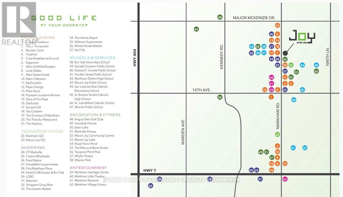 Welcome to JOY Station Condos, brand new condo community where comfort meets convenience! This2 bedroom unit, 618sqft, functional layout features stainless steel appliances, floor to ceiling East facing windows with large balcony. Friendly property management and building staff, 24/7 Concierge make you feel at home! When ready, be the first to enjoy the top notch amenities: fitness centre, games room, guest suite, party room, Children's play room, golf simulator, rooftop terrace and more! Everything you need is in walking distance, steps to Mount Joy Go Station, three grocery stores, restaurants, banks, coffee shops. Quick drive to Hwy 407,Markville Mall, Cornell Community Centre with large pool, library and sports courts. Lease includes one parking space close to elevator entrance. Move in and enjoy the comfort and convenience JOY Station Condos has to offer! (42062243)