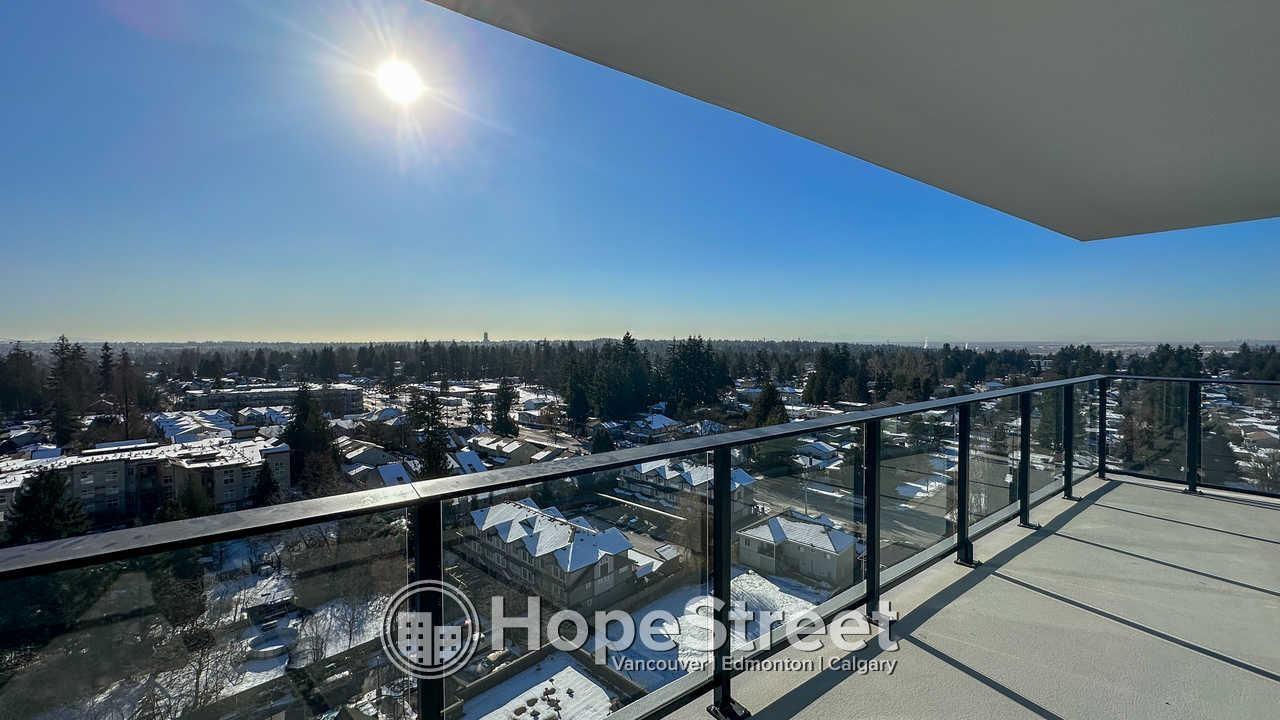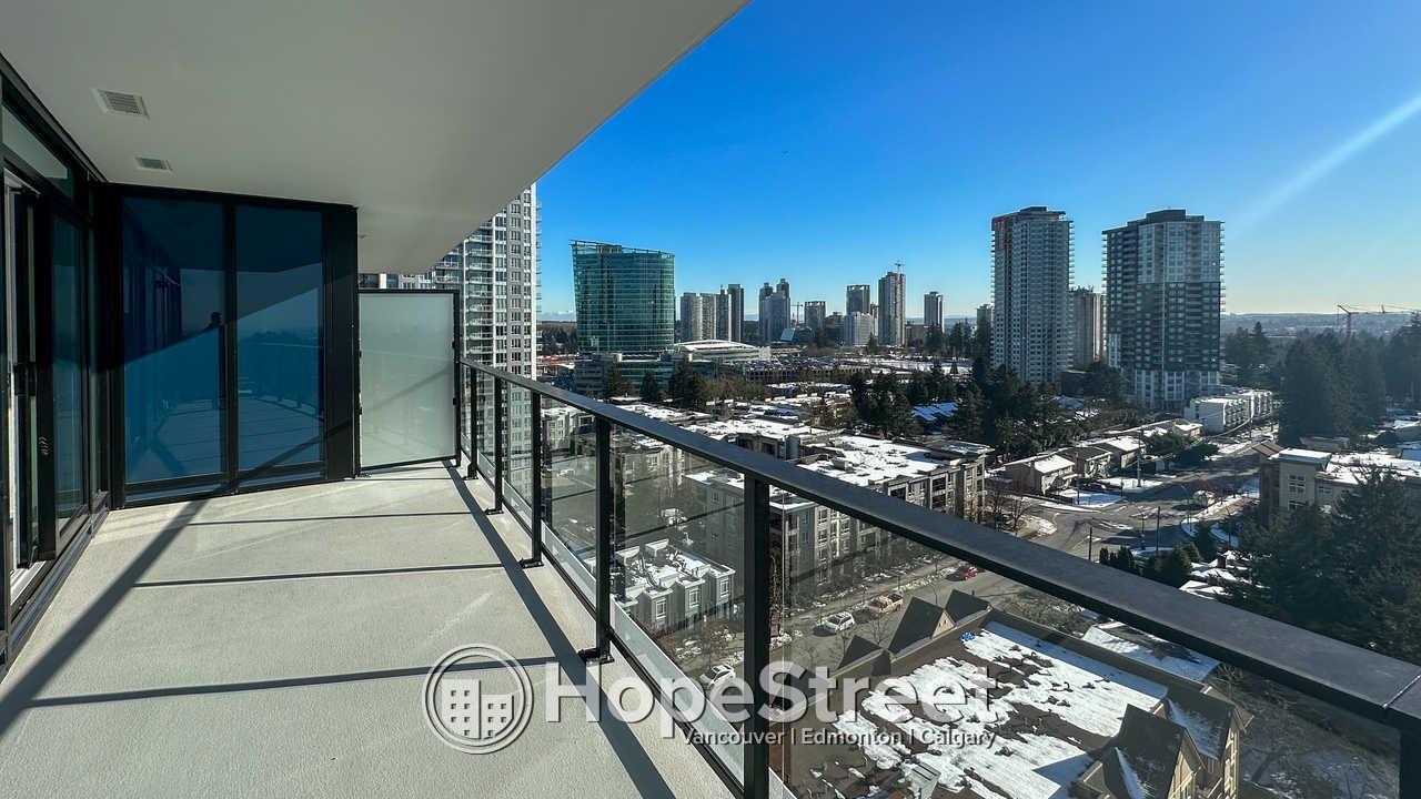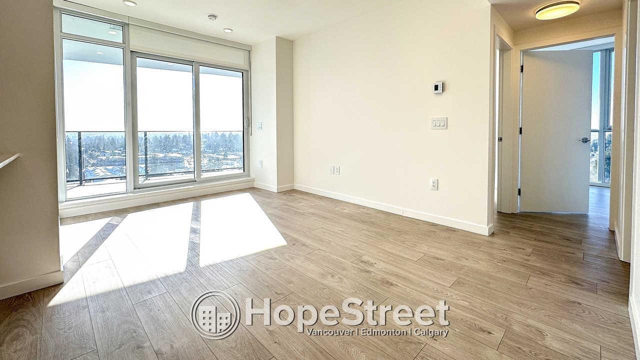 Experience elevated urban living at Melrose Tower in this stunning 15th-floor, 900 sq ft condo. This bright 2-bedroom, 2-bathroom home features floor-to-ceiling windows with panoramic views, modern wide-plank flooring, and a gourmet kitchen equipped with quartz countertops, a gas cooktop, and stainless steel appliances. Residents enjoy air conditioning, a private balcony, in-suite laundry, and a primary suite with a custom closet and spa-like ensuite. The building offers a fitness center and social lounge, plus one secure parking stall. Located in Surrey City Centre, you are steps from the SkyTrain, Central City Shopping Centre, and SFU. Professionally managed, this smoke-free and pet-free unit includes heat and water. Perfect for professionals seeking comfort and convenience. (32398399)