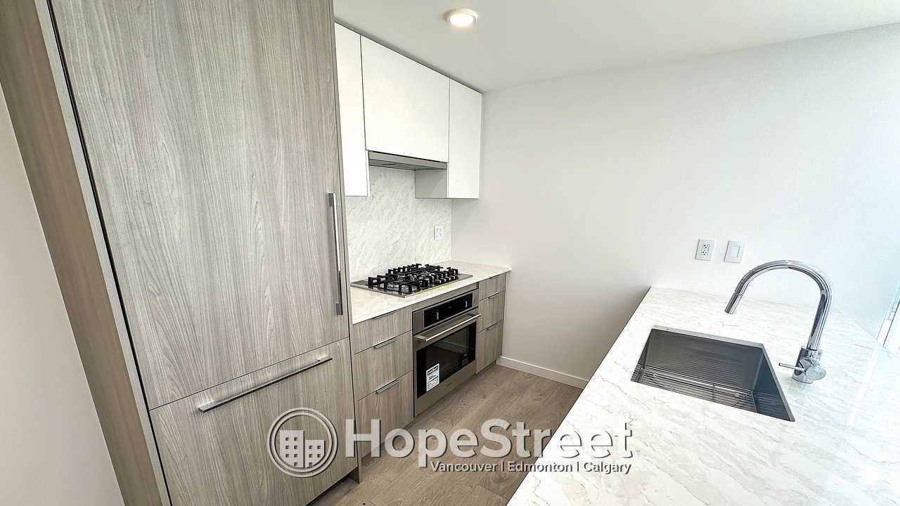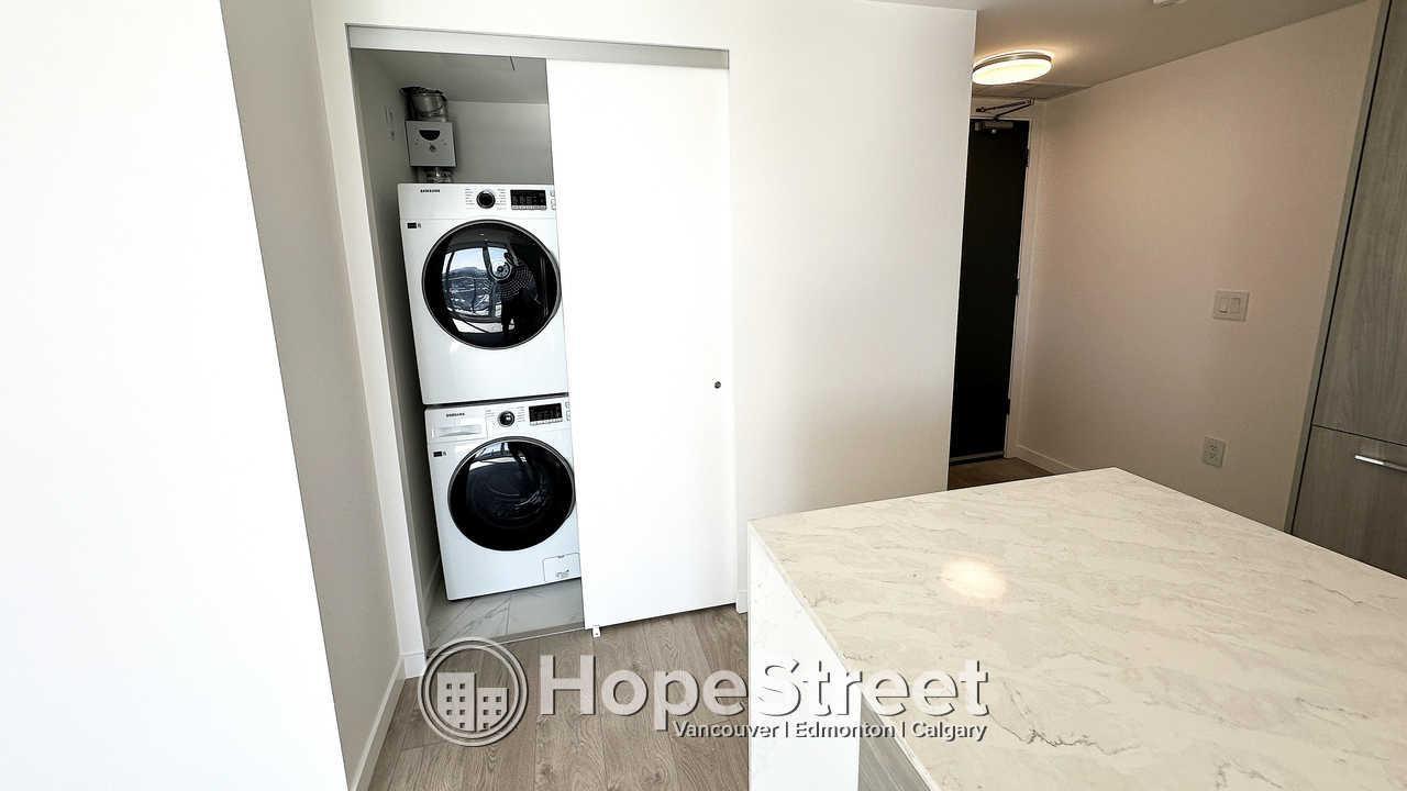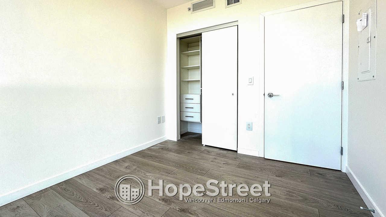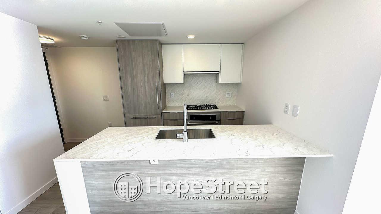 Experience elevated urban living at Melrose Tower in this stunning 15th-floor, 900 sq ft condo. This bright 2-bedroom, 2-bathroom home features floor-to-ceiling windows with panoramic views, modern wide-plank flooring, and a gourmet kitchen equipped with quartz countertops, a gas cooktop, and stainless steel appliances. Residents enjoy air conditioning, a private balcony, in-suite laundry, and a primary suite with a custom closet and spa-like ensuite. The building offers a fitness center and social lounge, plus one secure parking stall. Located in Surrey City Centre, you are steps from the SkyTrain, Central City Shopping Centre, and SFU. Professionally managed, this smoke-free and pet-free unit includes heat and water. Perfect for professionals seeking comfort and convenience. (32398399)