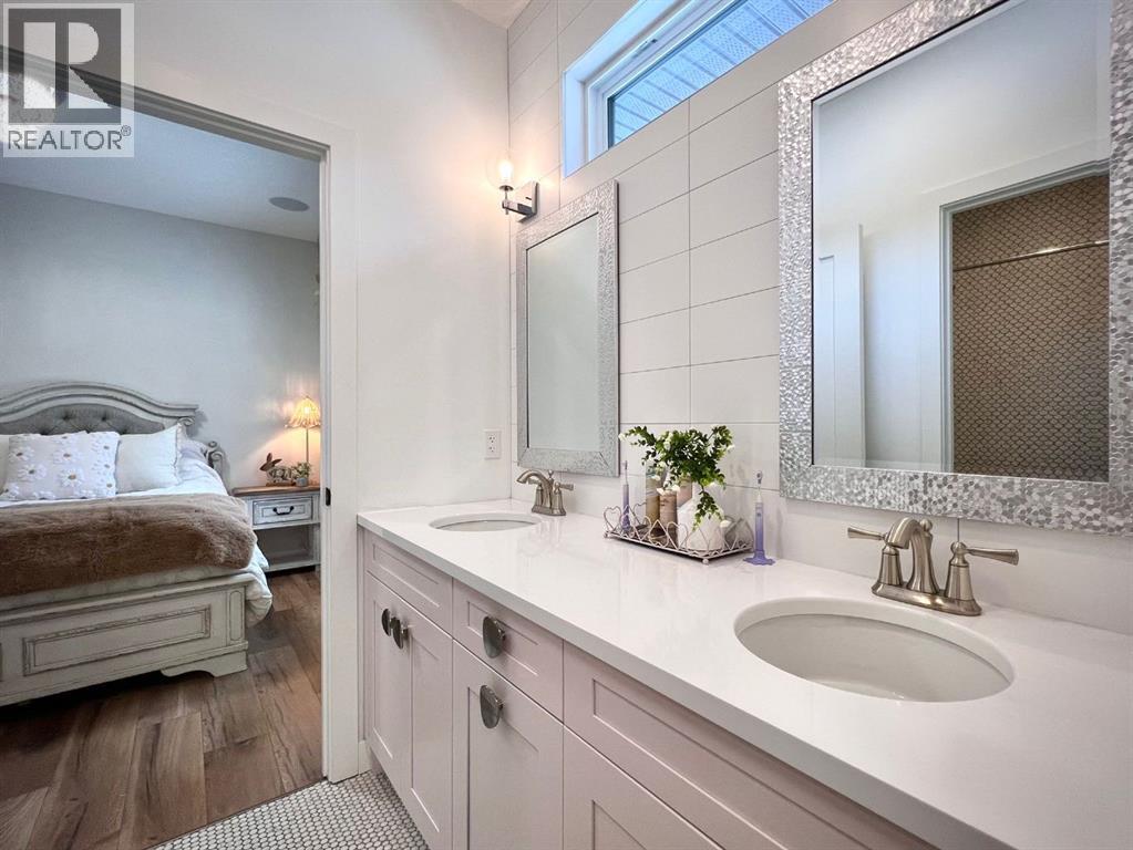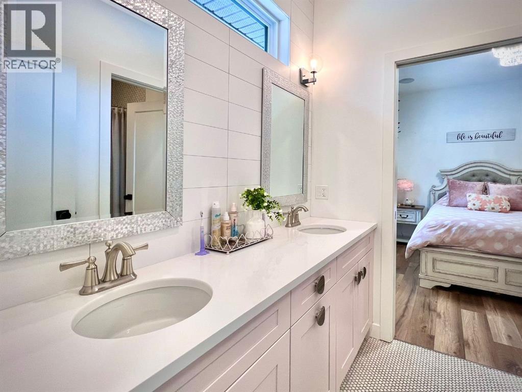 Welcome to beautiful Deer Ridge Estates. This acreage offers privacy, space, and a layout designed for everyday living and entertaining. It is tucked behind electronic entry gates that provide controlled access to the property, with a secondary manual gate for flexibility. A wrap-around driveway leads to the home and down to the detached shop.Inside, the custom walk-out bungalow opens with high ceilings, exposed beams, and wood and brick accents that carry throughout the home. The kitchen anchors the main floor with floor-to-ceiling cabinetry a double sided quartz waterfall island, pot filler, gas range stove and a butler’s pantry positioned just off the main workspace, keeping daily function and hosting seamless.The main living area centers under the gorgeous wooden peak and beams. The fireplace finished in natural fieldstone flows into the living space with access to the covered patio, a true indoor to outdoor flow. A dramatic tiered chandelier with exposed bulbs creates a focal point in the large dining space. A private office sits just off the main living area, offering separation without feeling away from it all.The primary wing includes a walk-in closet, a spa-like ensuite with heated floors, 2 shower heads, soaker tub, walk in closet and access to the covered hot tub. The secondary bedrooms are joined by a Jack-and-Jill bathroom complete with a double vanity and private water closet. A shared children’s office space is tucked between the rooms which adds flexibility for homework, creative work, or everyday use. All bathrooms in the home feature heated floors. The boot room off the garage has main-floor laundry with additional laundry hookups in the basement.The lower level is fully developed and designed to connect seamlessly to the outdoors, with walk-out access to a concrete patio. This level includes 3 bedrooms, including a guest suite, the other two bedrooms are situated between a large bathroom with double vanity and water closet. The space is el evated with a wine room, a wet bar with island, and a hidden safe room with a locked steel door.The attached heated triple garage is finished with epoxy floors and includes a dog wash with hot and cold water, a sink, and a mezzanine landing.The detached 30x40 heated shop is designed to be used year-round. Finished with epoxy floors, it includes a fully set up GS-PRO golf simulator and plumbing for a future wet bar.The outdoor living area features a heated pool and deck, a playground, a zipline, and a large covered patio. There are natural gas hookups in place for both a BBQ and a fire table.The property spans 2.99 acres with CR2 zoning, allowing for horses or small agricultural use. The home is positioned on a raised berm, allowing water to naturally flow away from the foundation. Additional features include city water, a two-stage septic system, hot-water-on-demand, air conditioning, Control4 automation throughout, full perimeter fencing, and two camper pads with 30-amp power. (31595179)