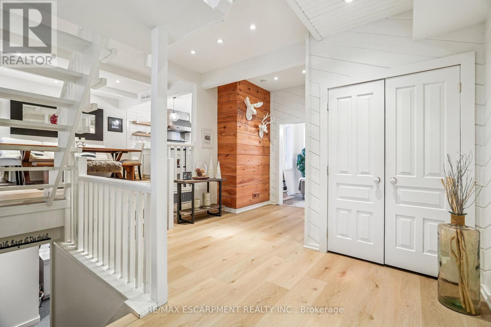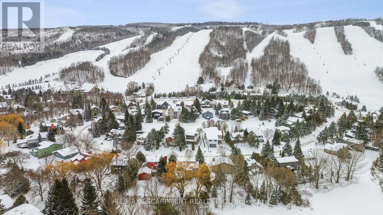Tucked into one of the most walkable, family-friendly pockets of The Blue Mountains, this beautifully updated 2-storey home delivers the rare combination of ski-hill views, privacy, and everyday livability. From the moment you arrive, the double-wide driveway offers parking for 6 vehicles, making hosting friends and family effortless. Inside, the home opens to warm, light-filled living spaces designed for connection and comfort. The main living room frames views of the Blue Mountain ski hills, a daily reminder that adventure is right outside your door. A separate sitting room overlooks the expansive backyard, while the family room features a cozy fireplace and a cleverly integrated Murphy bed. The kitchen was updated in 2024, showcasing quartz countertops, modern cabinetry, pot lighting, and a clean, timeless aesthetic. Whether it's weekday breakfasts or après-ski gatherings, this kitchen anchors the home beautifully. Upstairs, four well-proportioned bedrooms provide space for growing families or weekend guests. The primary suite offers calm and comfort, while 2.5 bathrooms ensure smooth mornings and relaxed hosting. The finished basement adds another layer of lifestyle value, with a fireplace, laundry area, storage, and a private sauna. The basement was professionally waterproofed in 2025 and includes a new drainage system and sump pump. Outdoor living is just as compelling. A screened-in porch extends the living space and invites long summer evenings, while the 60 x 114 ft lot offers a large yard with no immediate rear neighbours. Major updates include a roof in 2020, air conditioning in 2020, a new furnace in 2025, and an on-demand water heater, making this home as efficient as it is inviting. Located within walking distance to Blue Mountain Village, you're moments from skiing, snowboarding, hiking, restaurants, cafés, shops, and year-round entertainment. This is a home built for families who love the outdoors but appreciate refined comfort at the end of the day. (42062331)