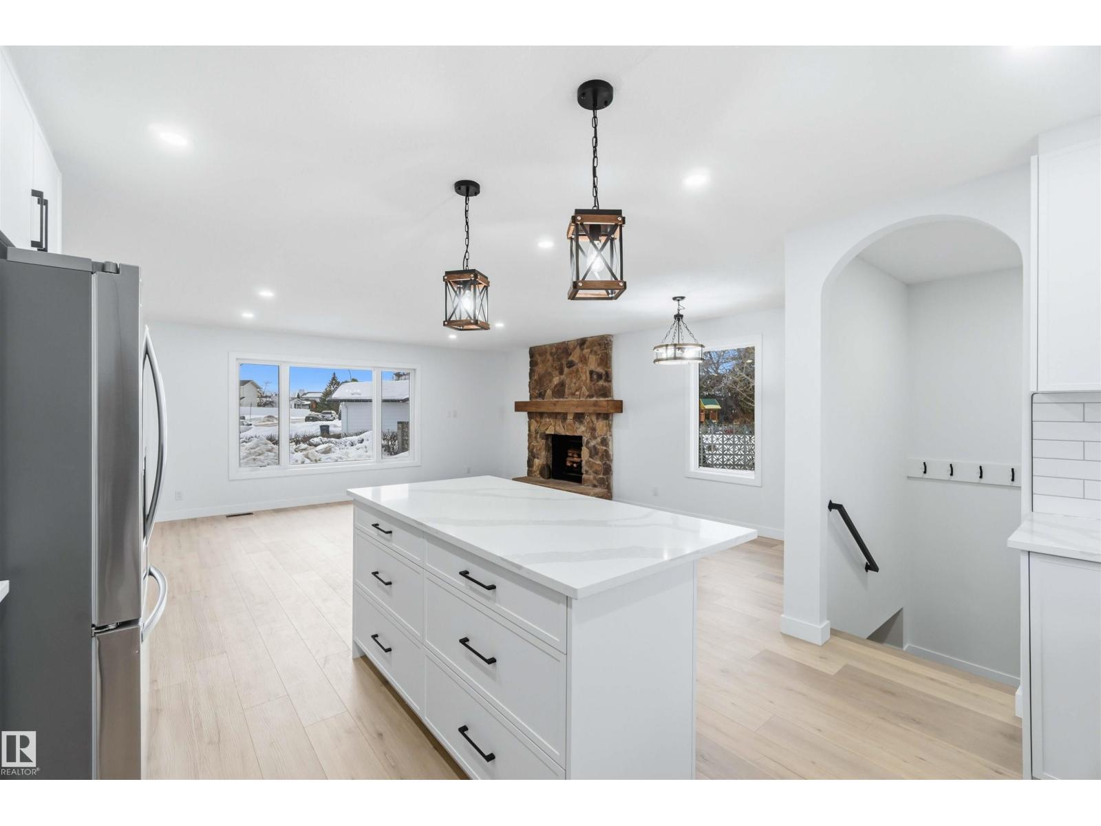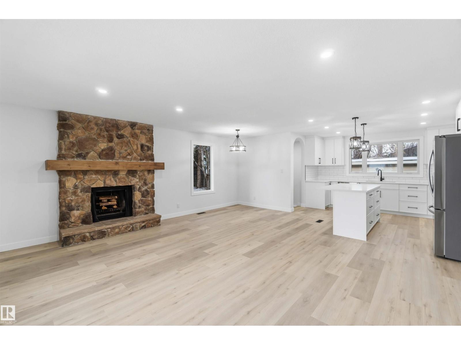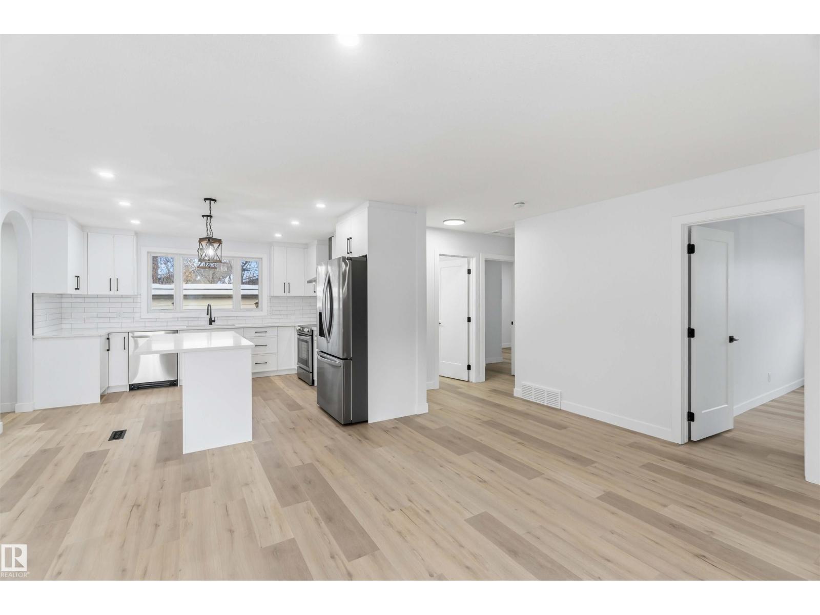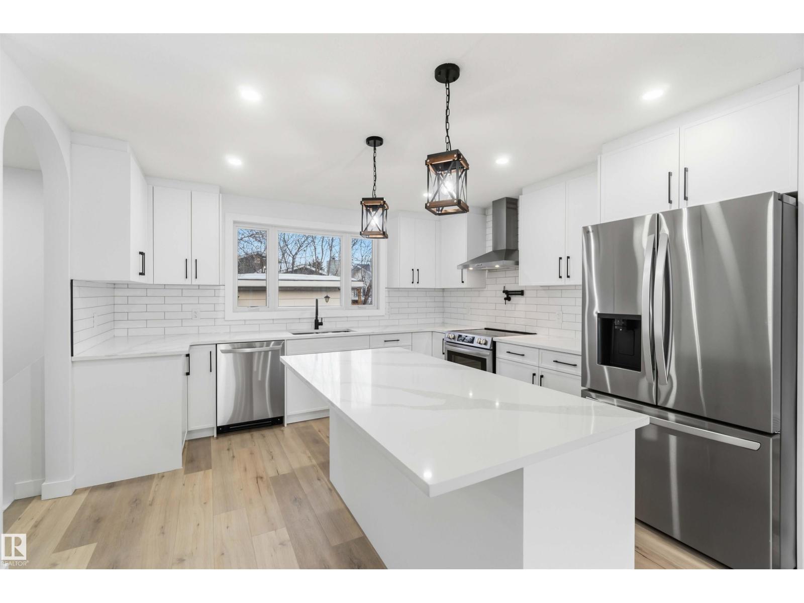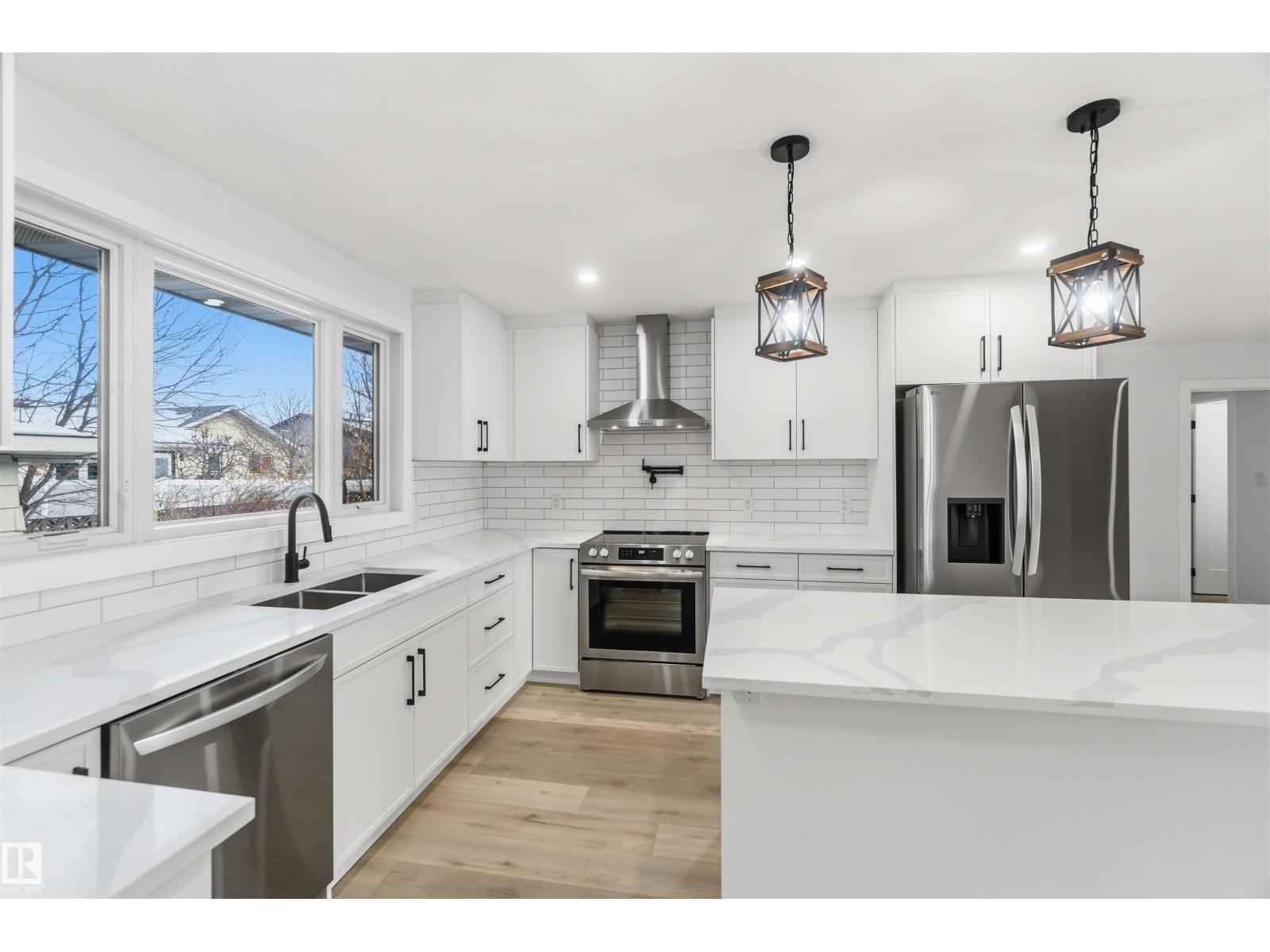 Fully renovated in a quiet cul-de-sac! This open and bright bungalow features over 1,300 SQ FT of quality and luxury! The massive living room offers rustic, wood-grain vinyl plank floors, and a stone fireplace with a stain-grade mantle. The kitchen contains white slim shaker cabinets, quartz countertops, subway tile backsplash, a pot filler and brand new stainless steel appliances. The main level comprises of a main bath with dual vanities, and three spacious bedrooms, including the primary suite with 2 pc. ensuite. Downstairs, you'll find an enormous family room with a wet-bar, a full bath with a glass shower, plenty of storage space and 2 massive bedrooms complete with brand-new EGRESS windows and built-in closet shelving. Mechanically, there's a newer high-efficiency furnace, brand new HWT and new plumbing and electrical throughout. Outside, there's a DOUBLE ATTACHED garage and a large garden shed that's sitting on a concrete footing. All this on an enormous pie-shaped lot in the heart of Mcleod! (33785029)