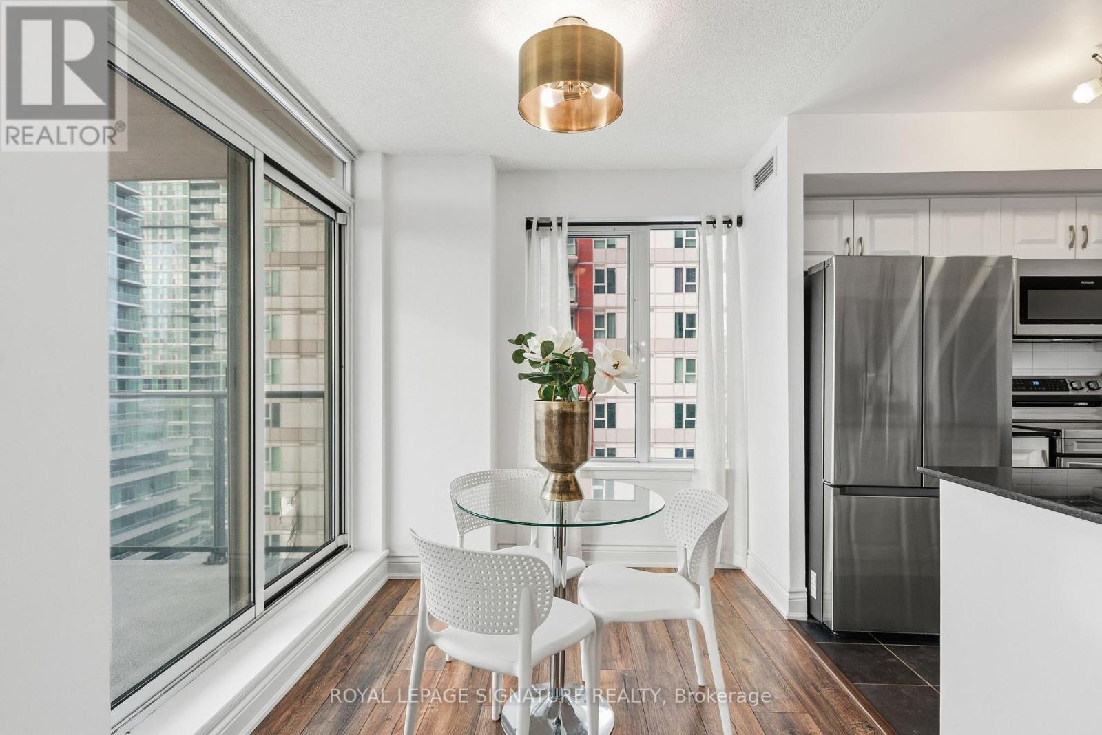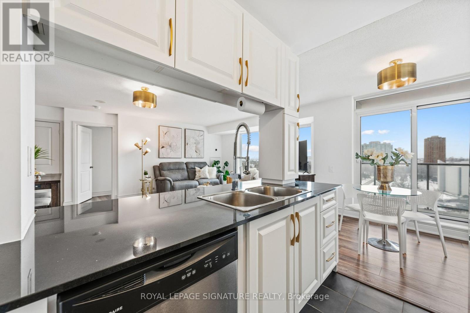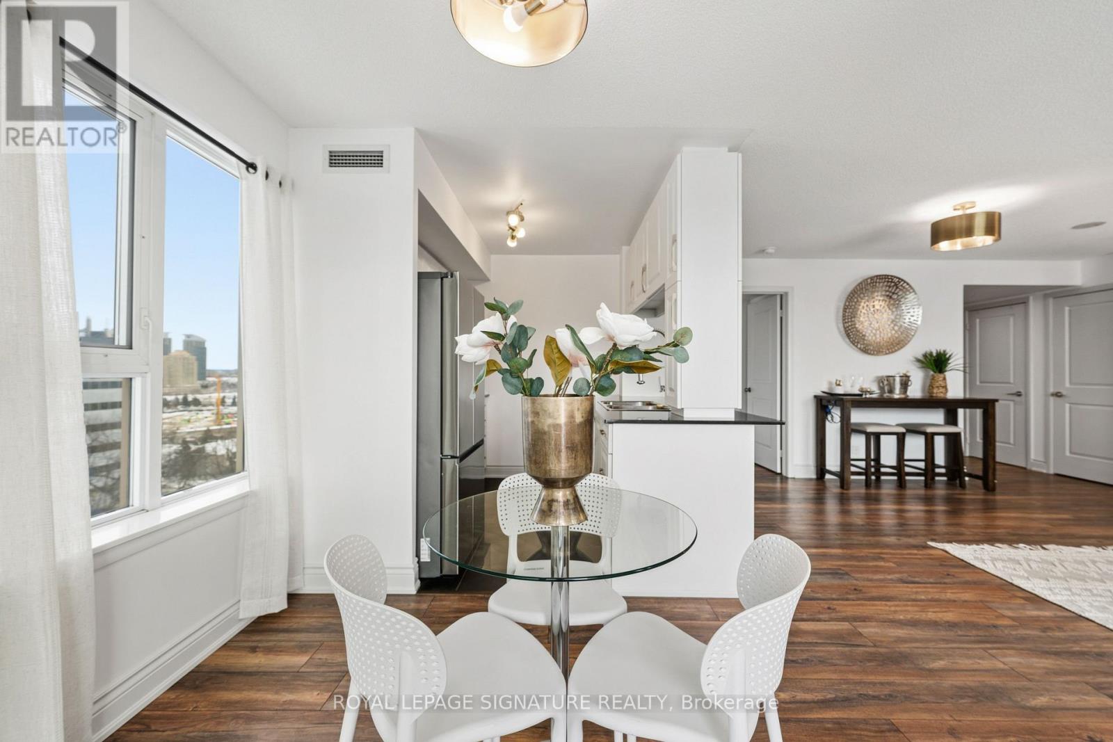 Welcome to this impressive corner 2-bedroom plus den condo with a desirable split layout, offering 1 parking space, a locker, anda private balcony. Ideally located just steps from Scarborough Town Centre, TTC subway, and GO Station, this unit boasts unobstructed east and south-facing views, filling the home with natural light throughout the day.The updated kitchen (2024) features refaced cabinetry, granite countertops new stainless steel appliances (fridge, stove,microwave - 2025), and a convenient breakfast bar-perfect for everyday living and entertaining. New flooring throughout(2021/2024) adds a fresh, modern feel.The spacious primary bedroom includes his-and-hers closets and a beautifully renovated 3-piece ensuite (2024). The second bedroom offers a double closet and south-facing views, complemented by new HVAC (2023). The versatile den is ideal for a home office or study. Additional upgrades include new HVAC in the living room (2025).This well-managed building offers outstanding amenities, including 24/7 concierge and security, a private terrace with BBQs, an indoor pool, a party room, a games room, a theatre, and more. The building also maintains a solid Reserve Fund. EV charger parking installed (2024) adds ready convenience for an electric car.Perfect for first-time buyers, downsizers, or investors seeking comfort, convenience, and an unbeatable location. A definite must-see! Close to parks, trails, shopping,easy access to HWY 401 and transit. (42062678)