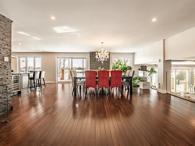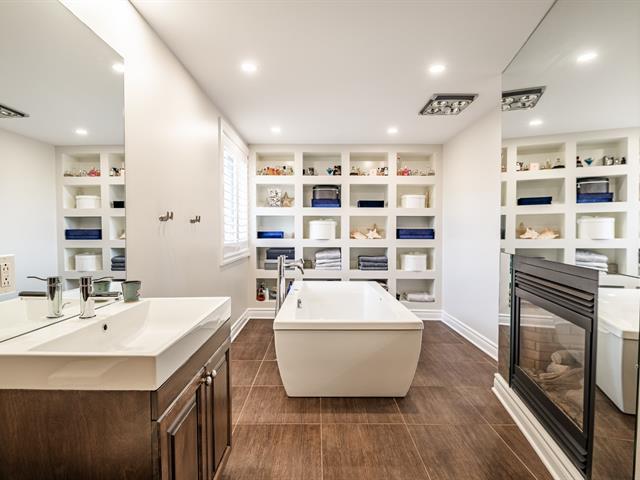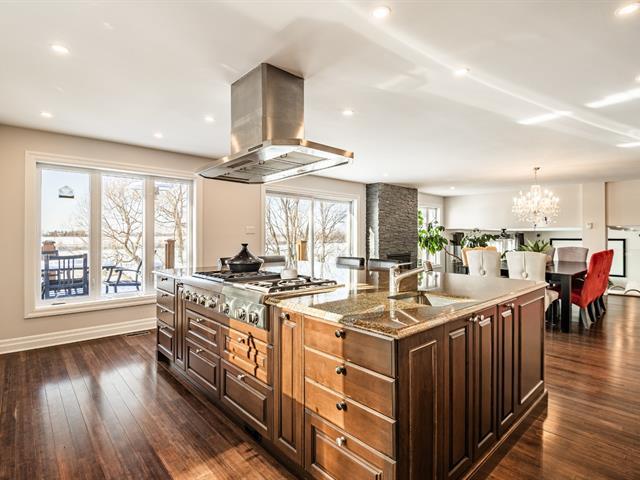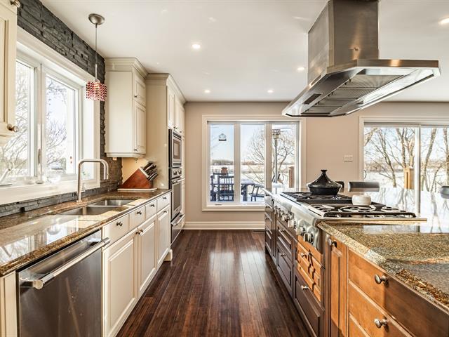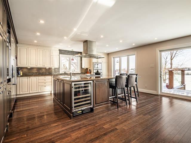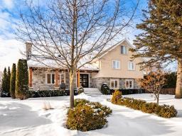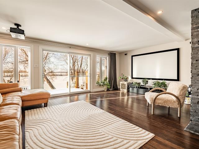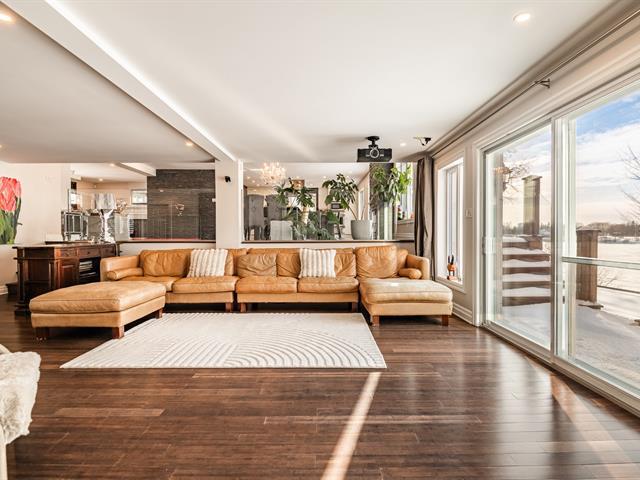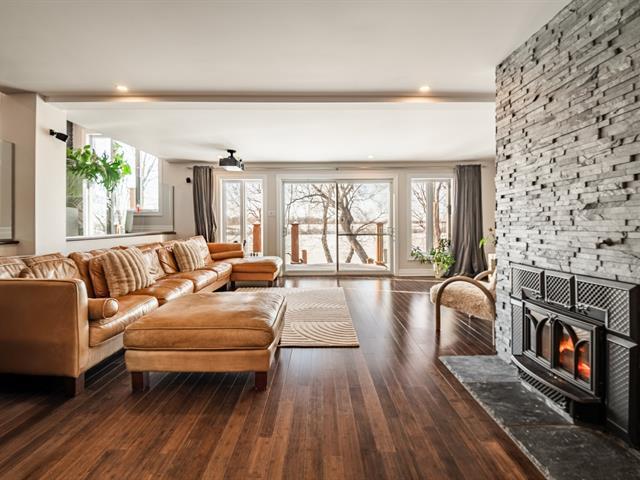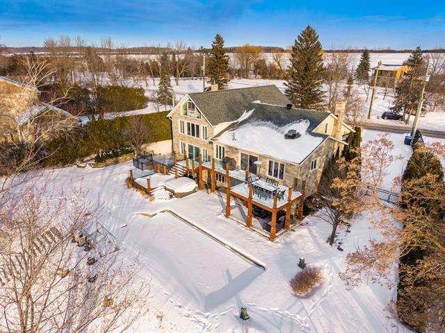 Magnificent waterfront property located in Mont-Saint-Hilaire, offering a peaceful lifestyle that blends comfort and tranquility. Spread over multiple levels, this spacious residence has been expanded and renovated. It features large, bright living areas, including a functional kitchen with a central island open to the dining room, as well as a warm living room with a fireplace. The property includes 4 bedrooms, 3 bathrooms, 1 powder room, an office, multiple family living spaces, and a four-car garage. Nestled on a private lot, the backyard with an outdoor pool and spa offers unobstructed views of the water. A must-see property. (58264429)