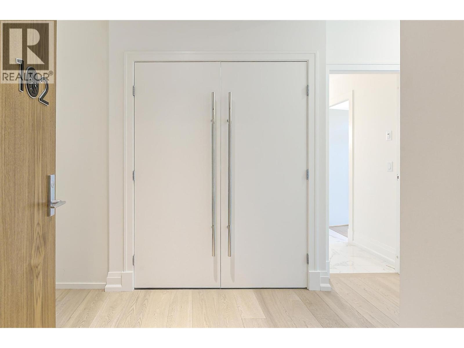 Luxury Living in Sought-After Pandosy.Experience refined urban living in this elegant main-level condominium, located in a prestigious six-storey concrete, steel, and brick building in the heart of Pandosy. Just steps to boutique shopping, dining, parks, beaches, and the hospital, this residence offers the perfect blend of sophistication and walkable convenience. Enjoy rare dual access with two points of entry, including a private street-level entrance with video monitoring and secure fob access for added peace of mind. The unique front-to-back layout delivers exceptional outdoor living with two private spaces: a welcoming front patio and an expansive 1,100+ sq. ft. rear patio backing onto tranquil Abbott Park. Designed for entertaining, the rear patio is pre-wired for a hot tub, features gas hookups for BBQ and fire table, and is fully wired for an outdoor kitchen. Inside, 10-foot ceilings, oversized windows, engineered hardwood floors, solid wood doors, and a cozy gas fireplace. The chef-inspired kitchen impresses with an expansive island, handcrafted backsplash, upgraded cabinetry, quartz countertops, and premium Bosch appliances, plus pre-wiring for a wine fridge discreetly tucked behind the wine storage rack. Two secure parking stalls with EV-ready charging and a private storage area. Only two residences per floor. This is luxury, low-maintenance living at its finest, ideal for those seeking a refined lock-and-leave lifestyle in one of Kelowna’s most desirable locations. (39688307)