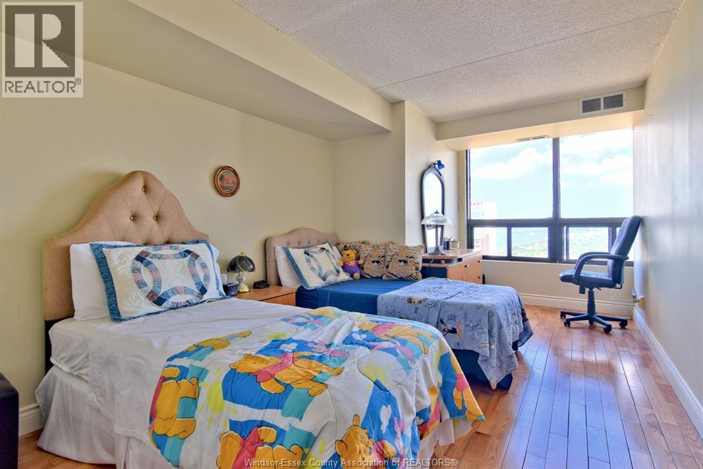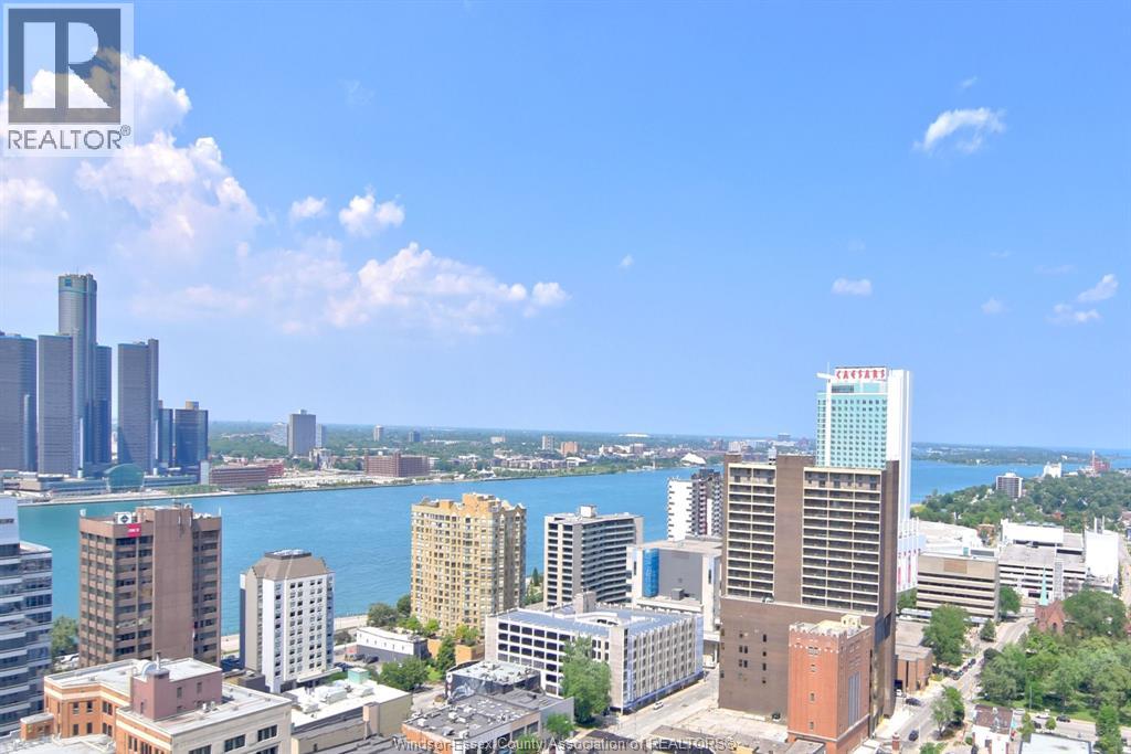 PENTHOUSE PARADISE!!! AN INCREDIBLE 29TH FLOOR RIVERVIEW IS THE FINISHING TOUCH ON THIS SPACIOUS 1645 SQUARE FOOT CONDO WITH 3 BEDROOMS, EACH OVER 20 FEET IN LENGTH, ALL OF WHICH HAVE A STUNNING, EASTERLY, DETROIT RIVER VIEW. FIND WINTER WARMTH WITH A NATURAL WOOD BURNING FIREPLACE AND ENJOY THE ANNUAL FIREWORKS FROM YOUR BALCONY. FEATURING SEVERAL WALK IN CLOSETS/STORAGE AREAS, AN INSUITE LAUNDRY WITH WASHER & DRYER, AND A WALK IN PANTRY IN THE KITCHEN. THE PRIMARY BEDROOM OFFERS A SITTING AREA & ENSUITE BATH. LOCATED IN THE HEART OF DOWNTOWN WINDSOR, VICTORIA PARK PLACE CONDOMINIUMS FEATURES GLASS ELEVATORS, 24 HOUR MANNED SECURITY, SALT WATER POOL, HOT TUB, BBQS,BILLIARDS ROOM & MORE. ALL MEASUREMENTS ARE APPROXIMATE. EMAIL/TEXT FOR YOUR VIDEO TOUR! (55316385)