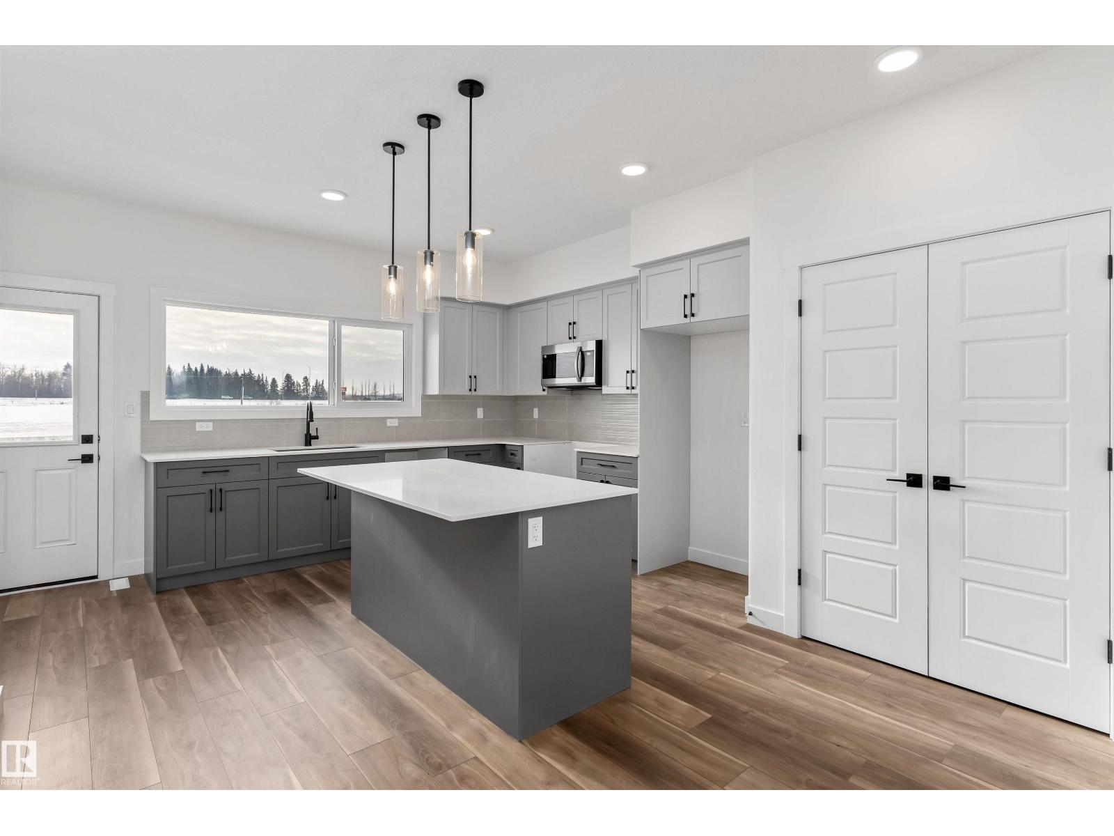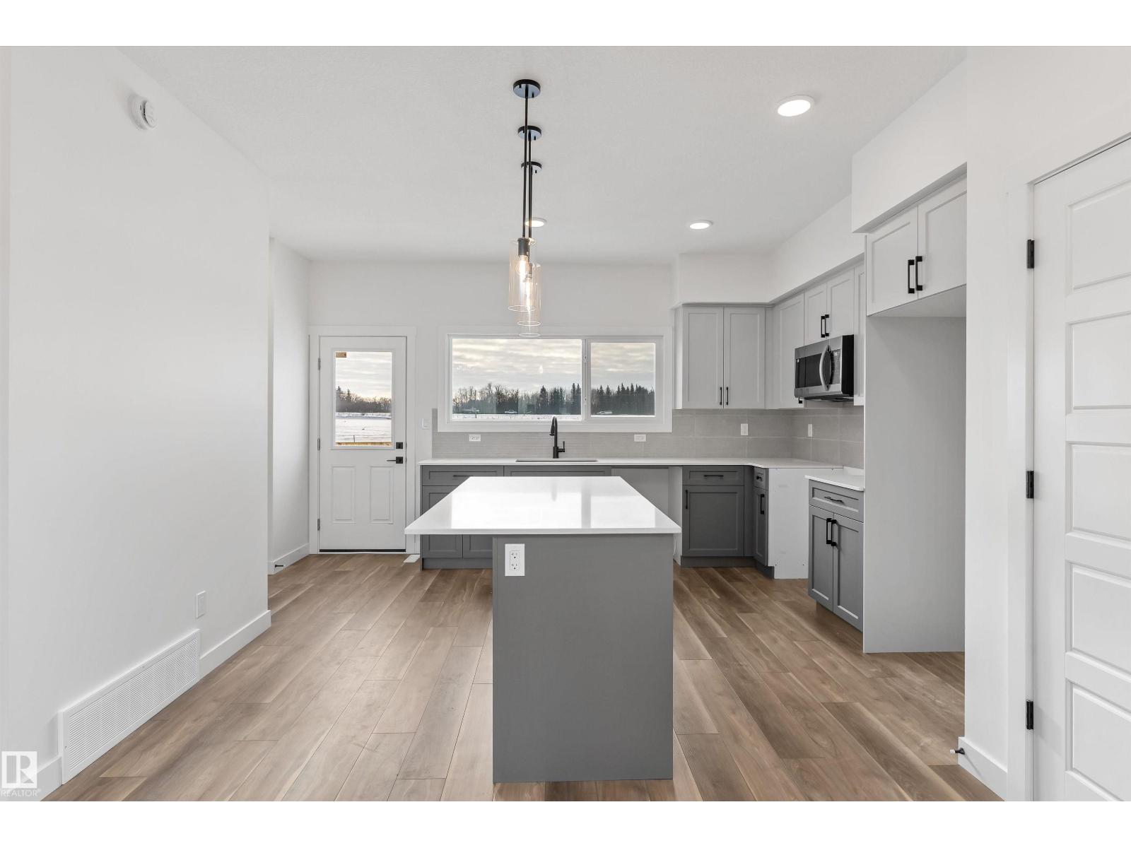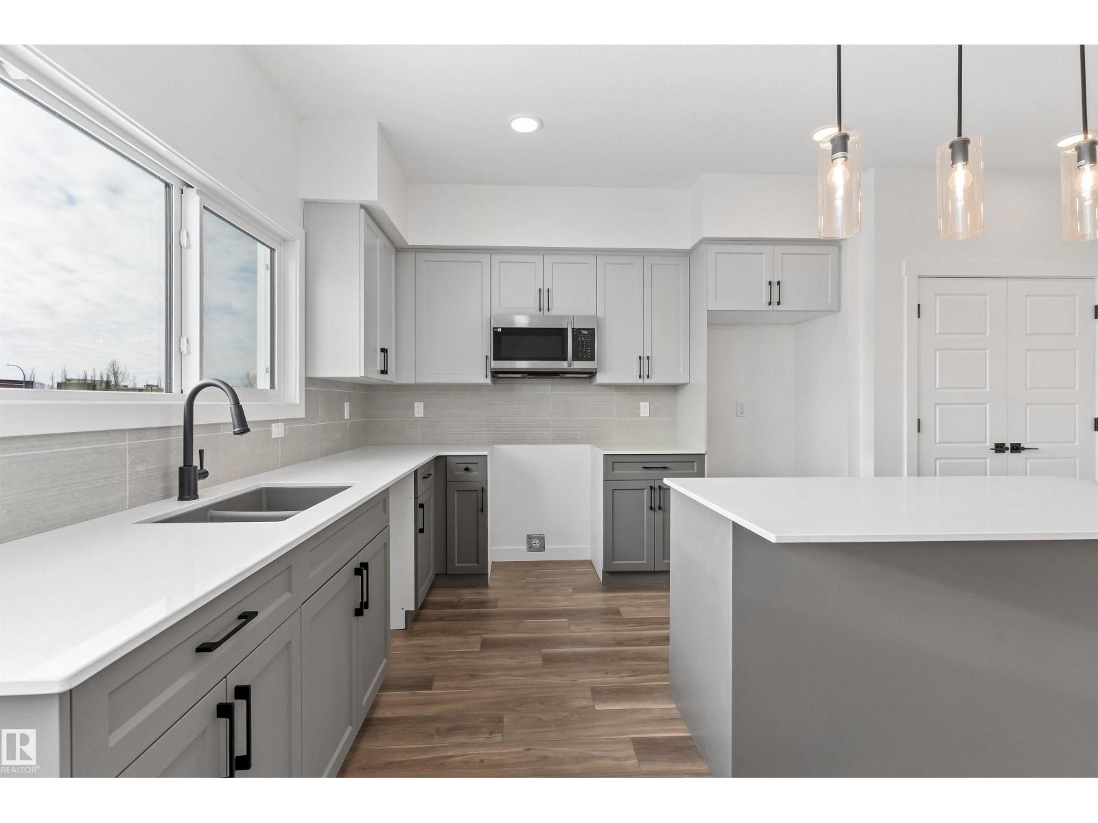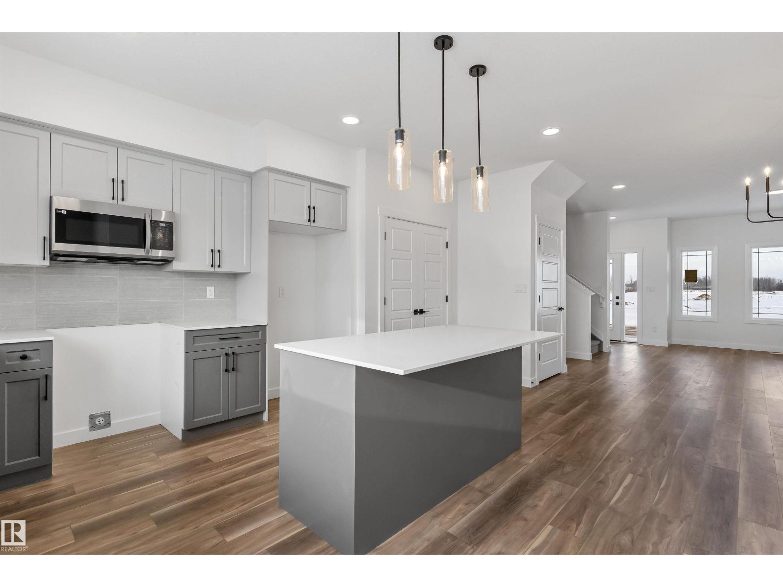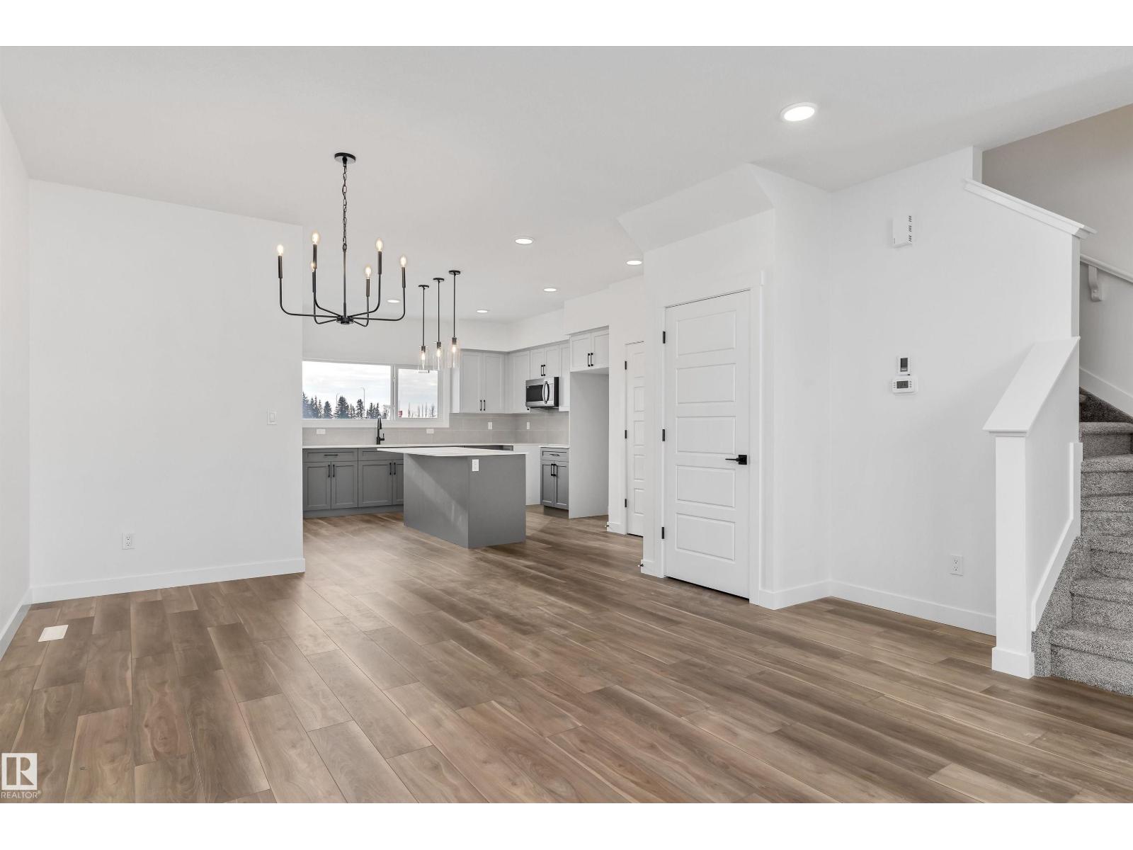 The Sansa is a premier example of refined living, featuring 9’ ceilings and Luxury Vinyl Plank flooring. The main level hosts a sun-soaked front great room that flows into an open dining area. At the rear, the L-shaped kitchen shines with Quartz surfaces, a flush-ledge island, and upgraded soft-close cabinetry paired with a dedicated pantry. A discreetly placed powder room leads to the backyard and parking pad, which offers potential for a future detached garage. The upper floor serves as a versatile retreat with a central loft and a primary suite featuring a walk-in closet and private ensuite. Two secondary bedrooms, a full bath, and a convenient laundry area complete the second level. Finished with contemporary black hardware, this home blends high-end style with smart utility. (33785981)