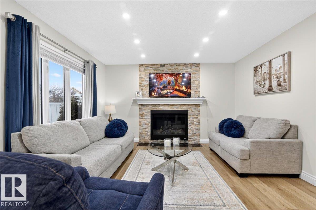 SEPARATE ENTRANCE AND 2ND KITCHEN. Welcome to the desirable Oxford community! This beautiful and bright house offers 2,820+ sqft of developed living space, with 1,960+ sqft above grade. Excellent natural light throughout, the house has been thoughtfully and stylishly updated. The main level showcases two spacious living areas, high ceiling, and a cozy natural gas fireplace. You will get 3 bedrooms on upper level, plus 1 bedroom in the fully finished basement, and 3 full and one half washrooms, including a 5-piece ensuite. The welcoming and functional layout of this house is perfect for your family living and entertaining. Recent improvements include full interior paint, updated flooring, newer appliances, newer roof, newer furnace and on demand HWT, and a separate basement entrance with a second kitchen. The double attached garage is perfect for the cold winters. Ideally located close to schools, parks, shopping, public transit, and major roadways, this home is perfect for families and first-time buyers. (33785993)