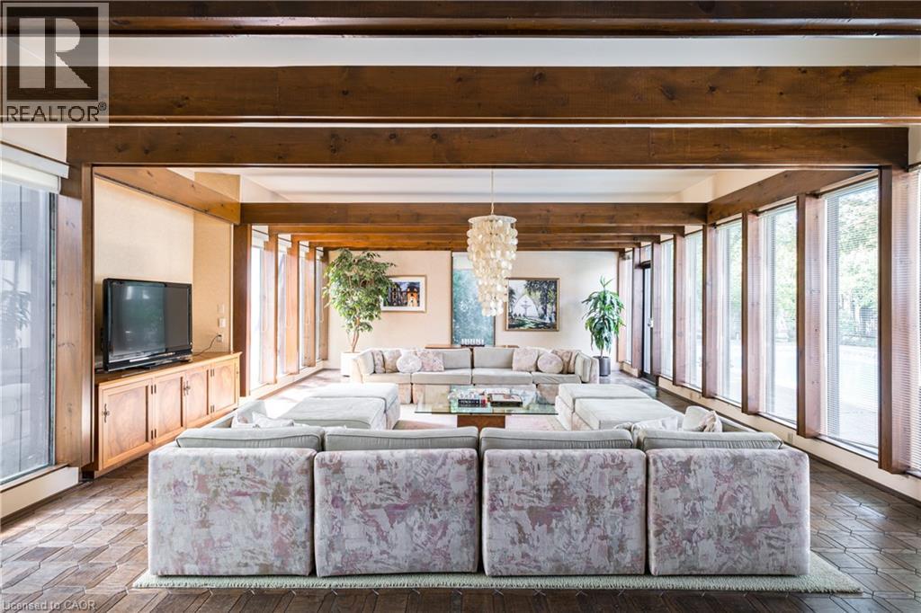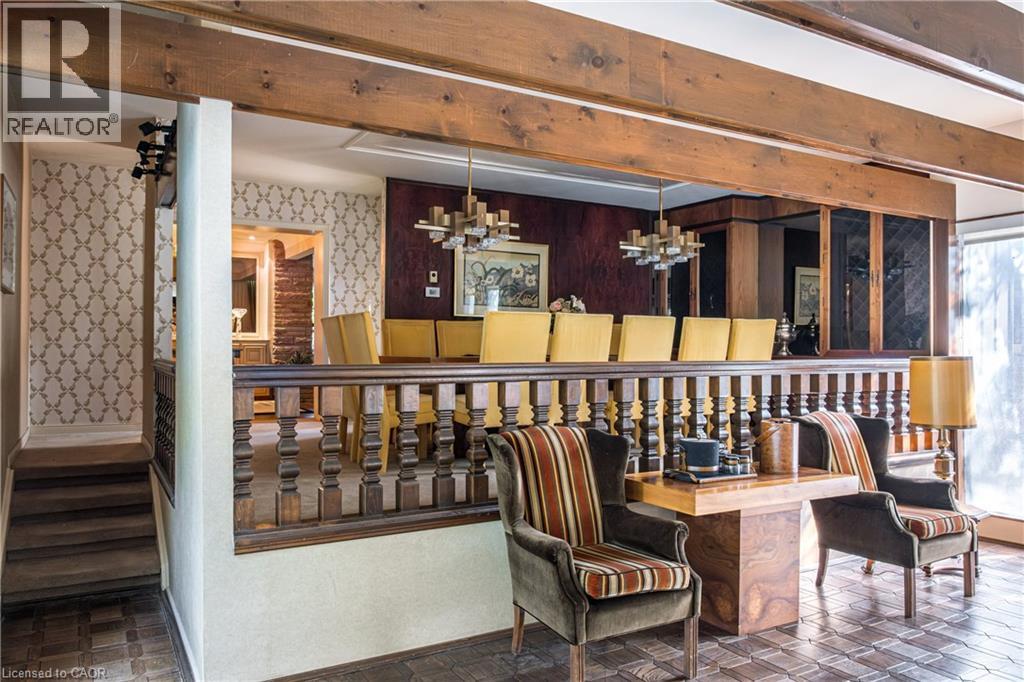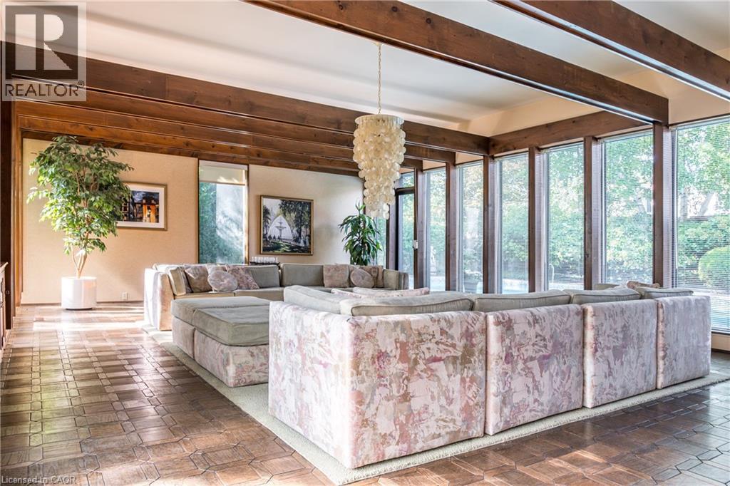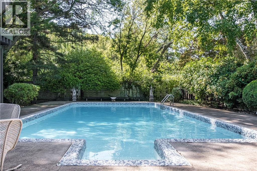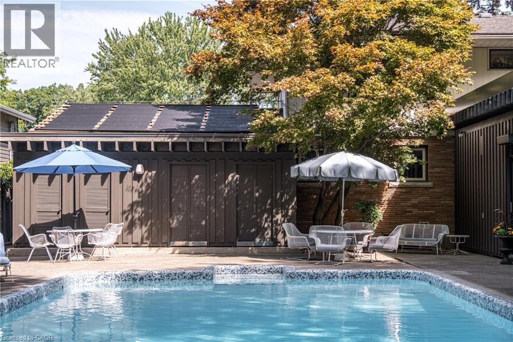 Magnificent Mid-Century Modern on quiet court near Cootes. Cherished by the original owners for 69 years, this one-of-a-kind two-storey home was thoughtfully designed for entertaining and family living. Offering over 3,657 sqft the home features an impressive 20x46 ft addition with a dining room that seats 14 guests and a spectacular family room with beamed ceilings surrounded by floor-to-ceiling windows overlooking the pool and private garden oasis, truly an entertainer’s dream. Built in 1956 the home’s design reflects timeless quality with high-end finishes and distinctive décor. Enter the foyer with slate floors and into the sunken living room with stone fireplace, and up to a dinette with custom built-in cabinets and stunning marble countertop. The retro kitchen features quartz counters, double ovens, cooktop, and built-in banquette that leads to a massive games room, which was converted from a double car garage, with huge pool table for family fun of all ages. Step out to the pool cabana with convenient kitchenette, 2 change rooms, 3-pc bath, and out to the lush private garden oasis with huge 20X40 ft pool, heated through rooftop solar panels, multiple seating areas and custom designed fence with cool coloured inserts. The main floor also includes a private office and 2-pc bath with marble counters, and on the second floor you will find 4 spacious bedrooms, including the primary with 3-pc ensuite and walk out to a rooftop terrace, plus a 4-pc retro family bath, and walk-in linen closet. The finished basement offers even more living space with an office, recreation room with wet bar, 2-pc bath, laundry, and ample storage. Perfectly located just steps to Cootes Paradise, Princess Point, Waterfront Trail, Churchill Park, schools and Westdale Village, shops, restaurants, amenities, and theatre. Minutes to McMaster University & Hospital, Go-transit & highway access, make this a super convenient Westdale North location to call home. RSA (70116377)
