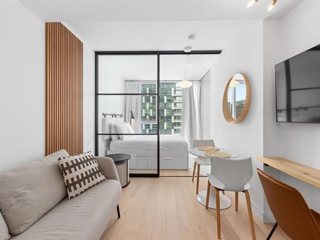 Turnkey, fully furnished studio offering a smart and functional layout, ideal for urban living or investment. The unit is tastefully decorated and features a modern kitchen with sleek appliances designed for efficiency and easy maintenance. The building offers an exceptional range of amenities. Professionally managed property with well maintained common areas. Prime downtown location within walking distance to both Green and Orange metro lines, offering quick accessto business districts, universities, shopping, dining and public transportation. Ideal as a primary residence, pied à terre or investment opportunity. (44721515)