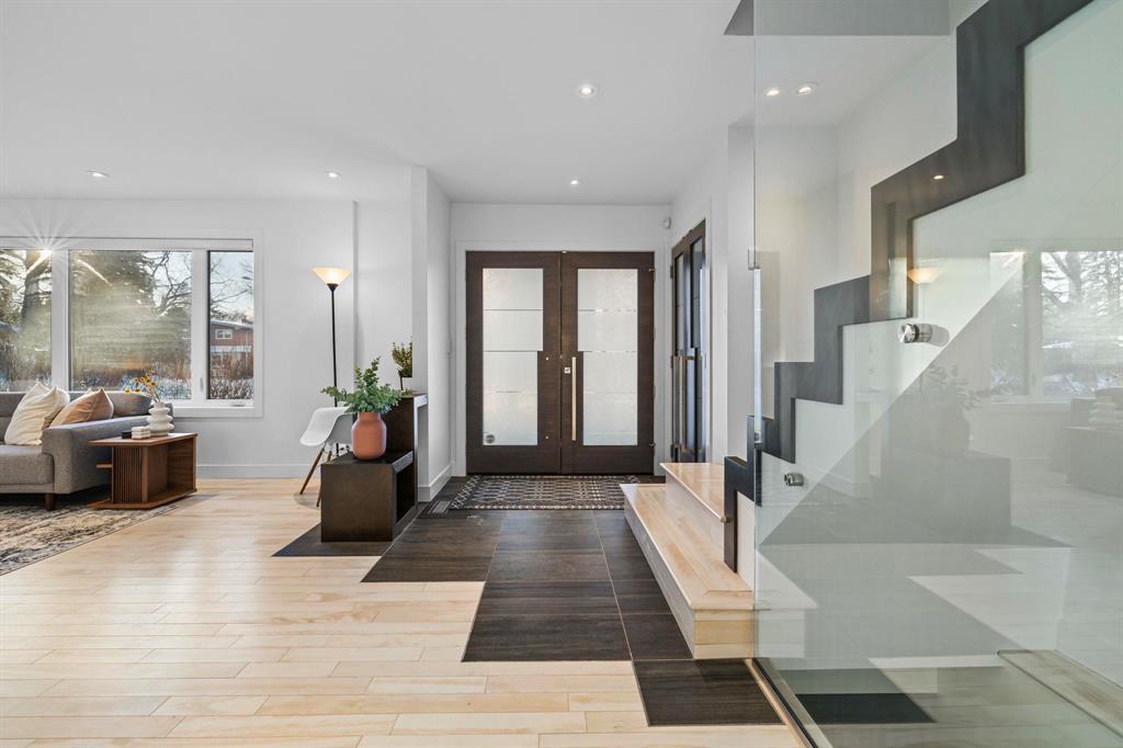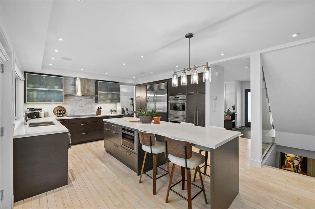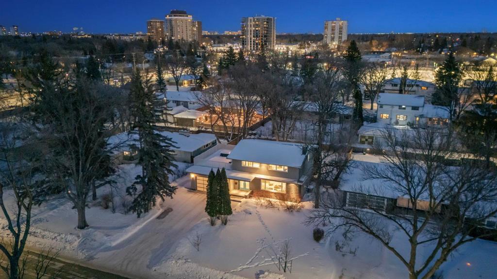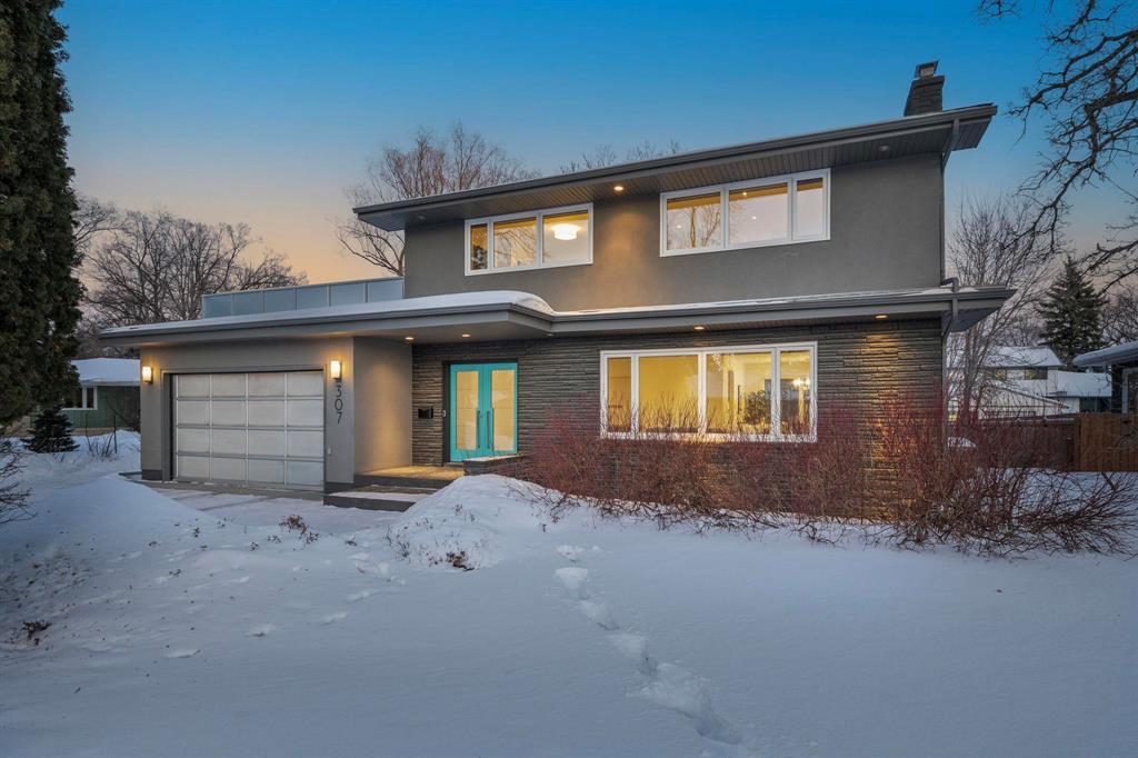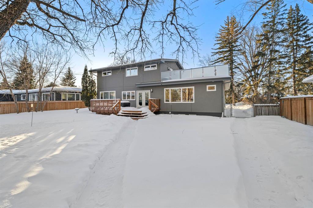 1E//Winnipeg/S/S Thurs. Feb. 5, offers Tues. Feb. 10. Located on a desirable street in Tuxedo, this modern & inviting 2 storey family home is thoughtfully designed for comfortable living & entertaining. A bright open foyer welcomes you into the sun-filled LR featuring lovely hardwoods, oversized windows & custom feature wall w/gas fireplace & stainless surround. The spacious DR easily hosts gatherings, while the chef s kitchen impresses w/high-end ss appliances, quartz counters, abundant custom cabinetry & family-size island w/double-sided breakfast bar. Relax or entertain in the adjacent FR. Garden doors lead to the deck & beautifully manicured backyard w/mature trees. Convenient 2-piece guest bath. A custom staircase leads to 3 brs & 2 baths. Expansive primary w/double doors & luxury 3-piece ensuite & WICC. An upper west-facing deck offers the perfect spot for morning coffee or sunset cocktails. The fully finished bsmt features a rec room w/wet bar, built-in storage & work space, striking lighted feature wall, 4th br, full bath & laundry. Exceptional curb appeal w/mature landscaping, double drive & 20' x 20' attached garage w/custom overhead door. Steps to Assiniboine Park. Close to shopping, caf s & dining. (231915843)