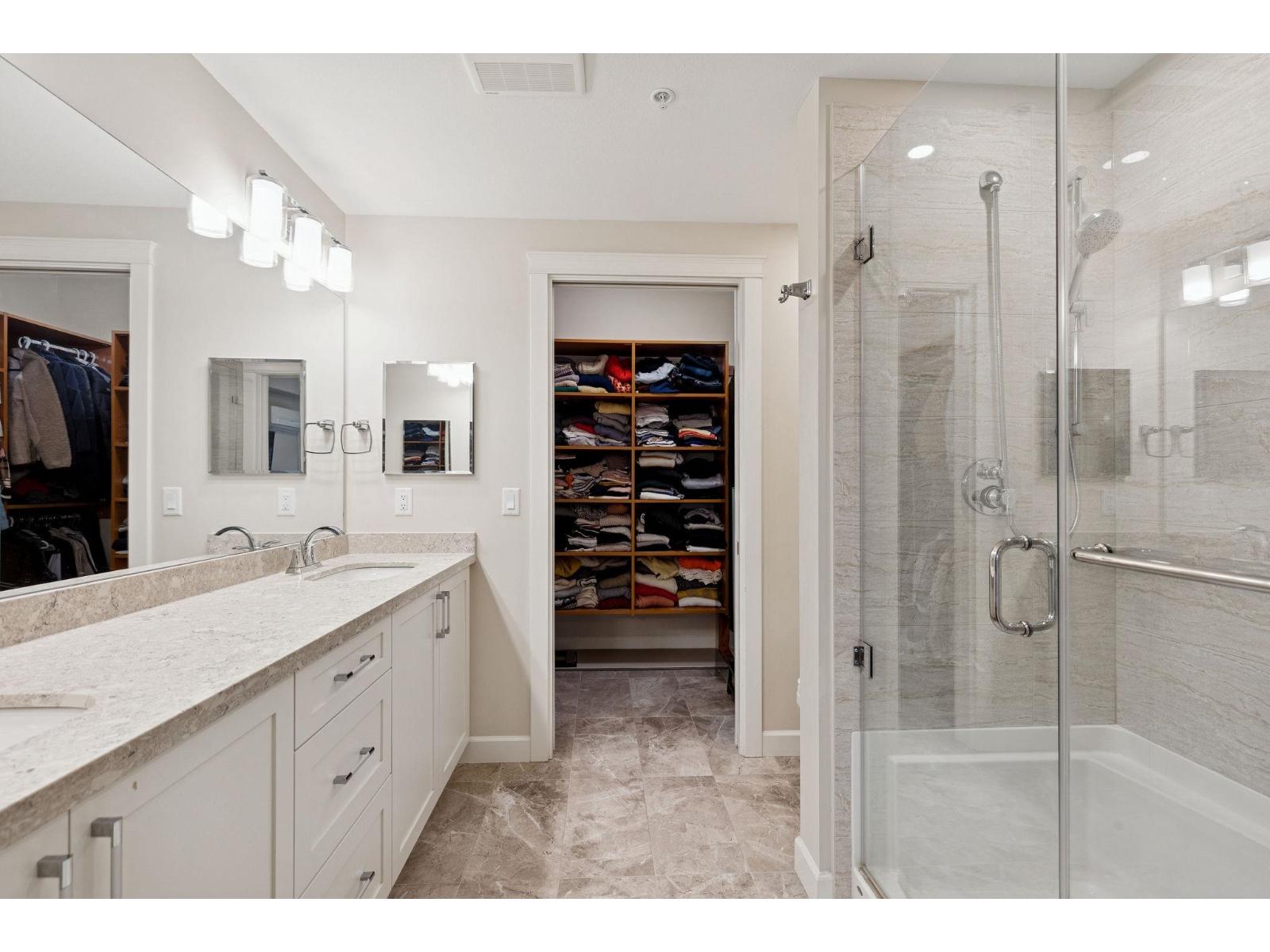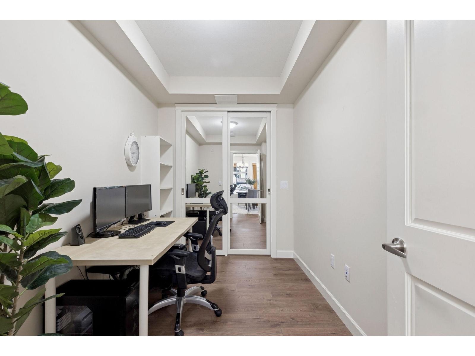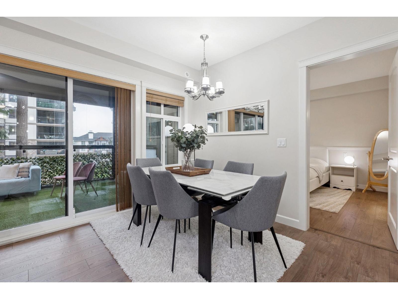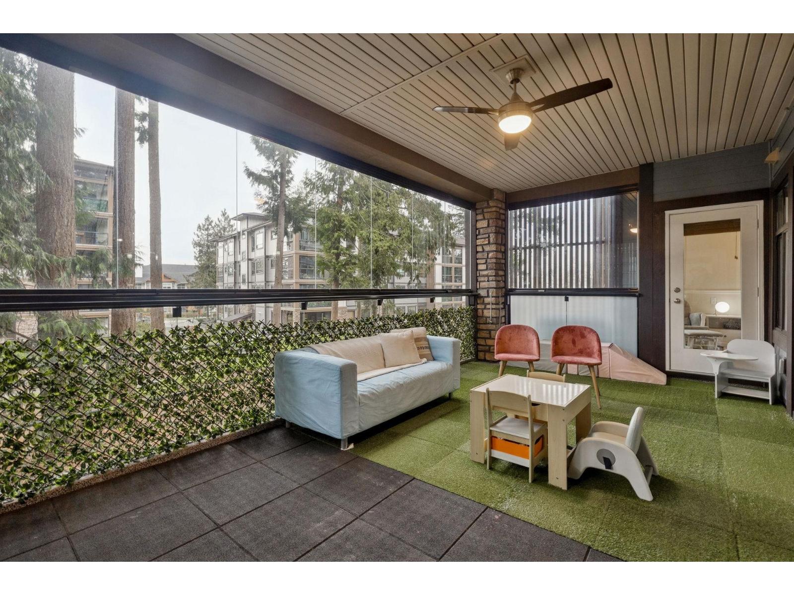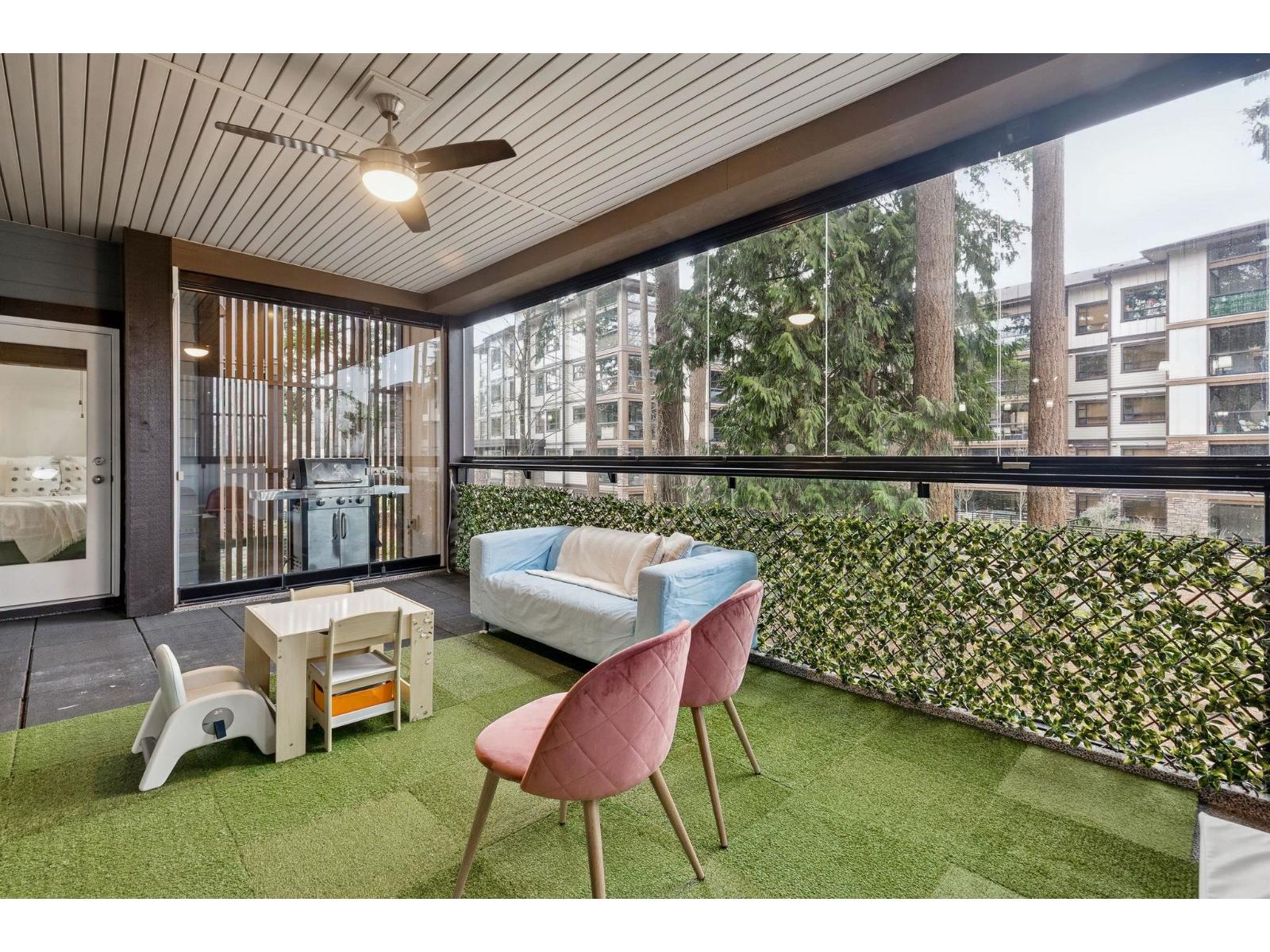 Welcome to Forest Ridge, a rare blend of luxury living and natural surroundings in South Surrey. This thoughtfully designed 1,305 sq ft of inside space features 2 bedrooms plus den, 2 bathrooms, and a stunning 273 sq ft glass enclosed solarium with retractable windows, perfect for year round fresh air living and entertaining. Inside, quartz countertops, stainless steel appliances, gas range, and real wood paneled cabinetry create a refined yet comfortable atmosphere. Spa inspired bathrooms, sound dampening construction, and a multi zone heat pump with air conditioning offer everyday comfort and quiet. Includes two underground parking stalls and a private storage garage. Steps to trails, shops, and dining, and minutes from Crescent Beach (32400045)
