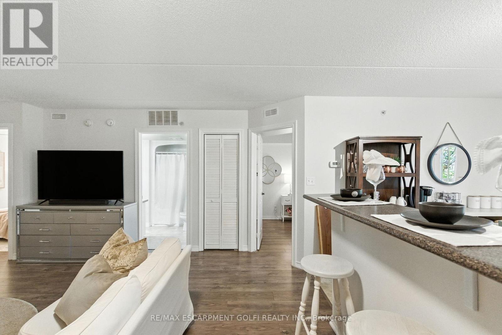 Welcome to your serene retreat in the heart of Glen Abbey--a beautifully updated 2-bedroom, 1-bath condo that blends comfort, style, and effortless living. Bathed in natural light, this 895 sq. ft. home invites you in with its airy open-concept design. The spacious living and dining area lows gracefully onto a private balcony--your own peaceful haven for sunrise coffees or golden-hour evenings under the sky. The modern kitchen, with its generous cabinetry and seamless connection to the main living space, makes every meal feel easy and inspired. Enjoy the everyday luxuries that make life simpler: in-suite laundry, secure underground parking, and a separate storage locker. Indulge in the building's thoughtful amenities--a fitness centre for morning energy, a sauna for evening relaxation, a recreation room for connection, and even a cozy car wash bay ready for winter days. Perfectly situated in the sought-after Glen Abbey community, you're surrounded by parks, trails, top-rated schools, and charming local shops--with easy access to transit and major highways. A turnkey, pet-friendly home where modern convenience meets timeless tranquility--ready for you to fall in love and move right in. (42064640)