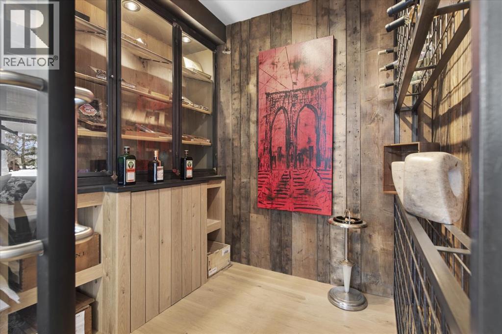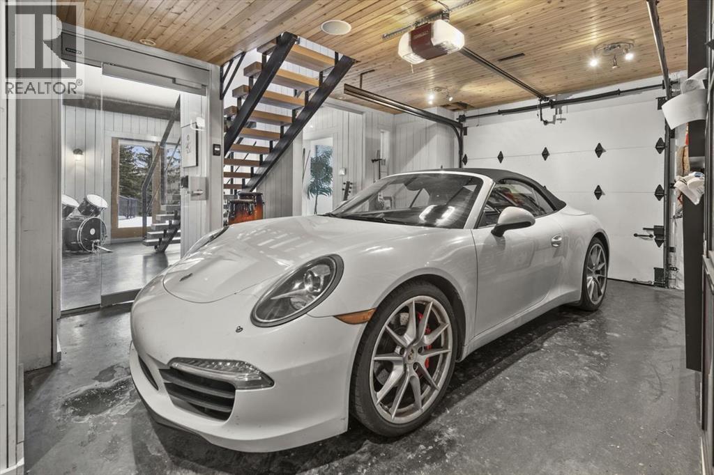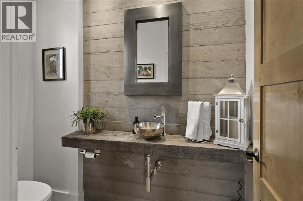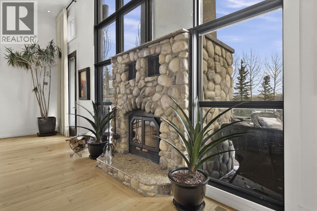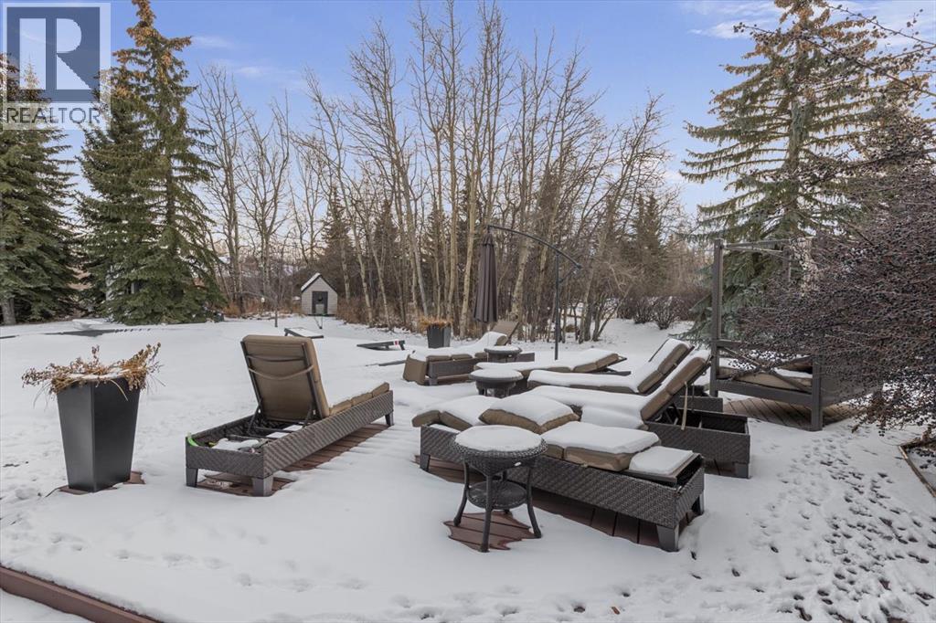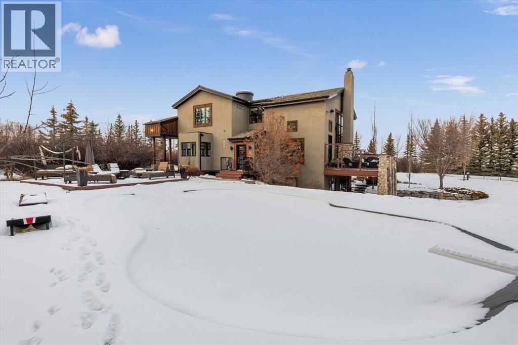 Some homes are designed for function, others for style - this one was designed for something more. Set on just over two acres in Bearspaw, this residence reveals its character the moment you arrive: sweeping curves in the architecture, river rock columns, and a presence that promises there's a story around every corner.Step inside and a circular skylight draws your eye upward, casting light through a graceful rotunda that anchors the home. Those architectural curves continue throughout - in hallways, railings, and built-in niches designed for art and treasured pieces.The main level presents two interconnected living spaces with remarkable flexibility. The larger room, currently configured as an expansive dining area easily seating 14, features soaring ceilings, a river rock fireplace, and walls of windows. The adjacent sitting area offers a more intimate scale. These spaces can easily trade purposes - a generous living room with traditional dining to the side, or kept as designed for those who entertain on a grand scale.Throughout the home, reclaimed barn-board sourced from England creates warmth against contemporary elements - concrete countertops, sleek fixtures, clean architectural lines. It's a considered contrast that feels both grounded and refined. The kitchen embodies this aesthetic, aged wood cabinetry meeting industrial concrete surfaces, a breakfast nook tucked into the window.The primary suite offers a spa-inspired ensuite with pebble stone walls, open shower, and deep soaker tub. Two additional bedrooms, family bathroom and laundry facilities share the upper level, accessed from curved hallways with a striking circular opening overlooking the rotunda.The walkout level opens to casual gathering space, a fourth bedroom, bathroom, exercise area and a very unique dual wine cellar and cigar humidor. A glass breezeway connects the main house to a secondary garage with self-contained guest suite above - Murphy beds and lounge space equally suited a s creative studio or home office. For the collector: a separate garage bay accessed by fingerprint recognition, purpose-built for a prized vehicle.Outside, the property unfolds with equal intention. In-ground pool, hot tub, and firepit create spaces for every season. Circling a stone platform at the heart of the grounds, a moat crossed by two wooden bridges - a meditative feature that speaks to the thoughtfulness woven throughout.For the right person, this won't simply be a beautiful property. It will feel like home. (31597538)