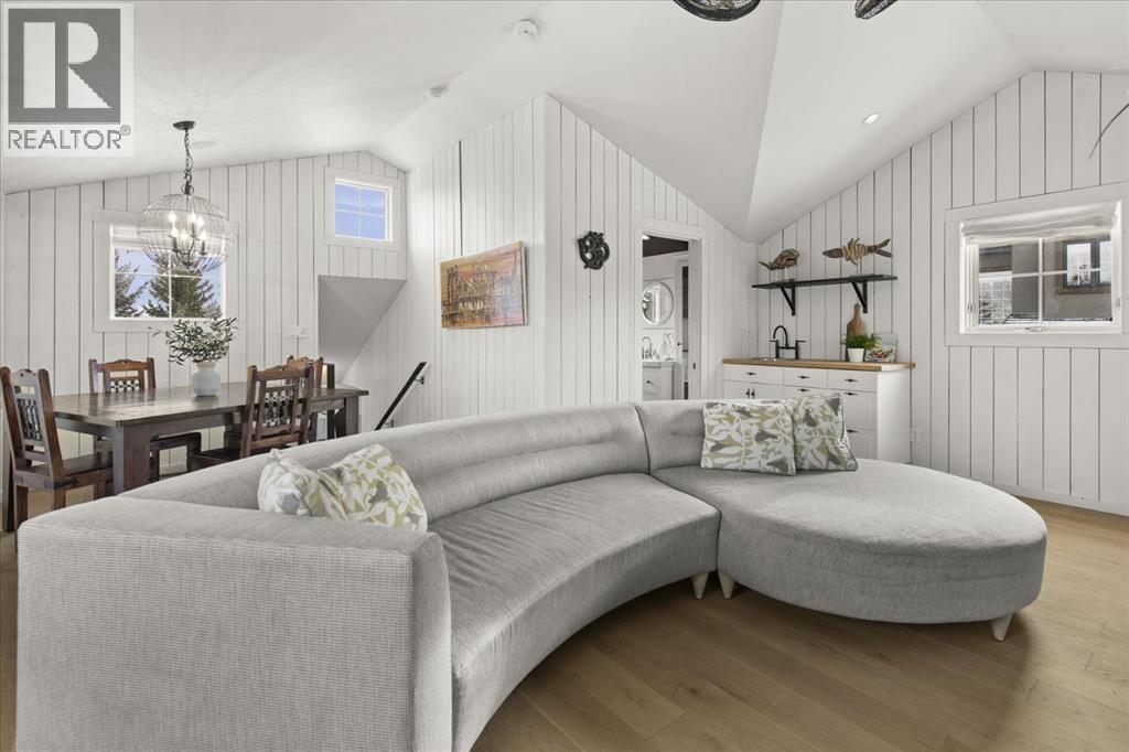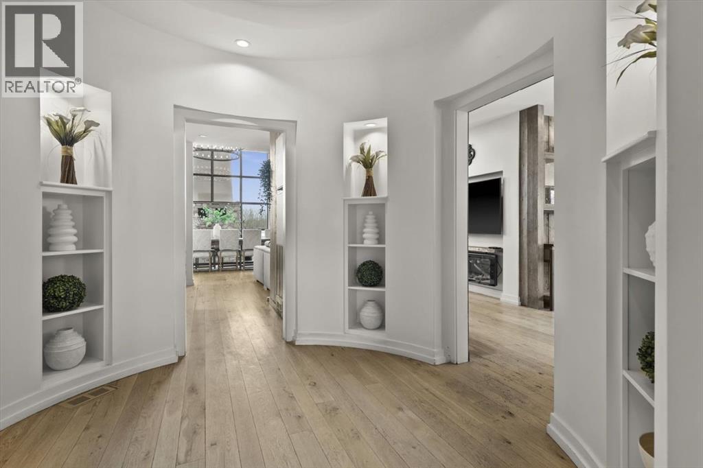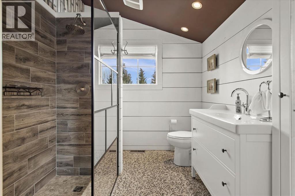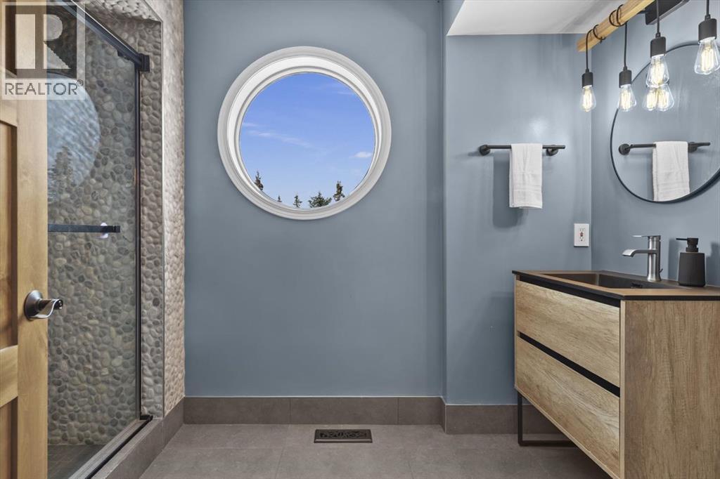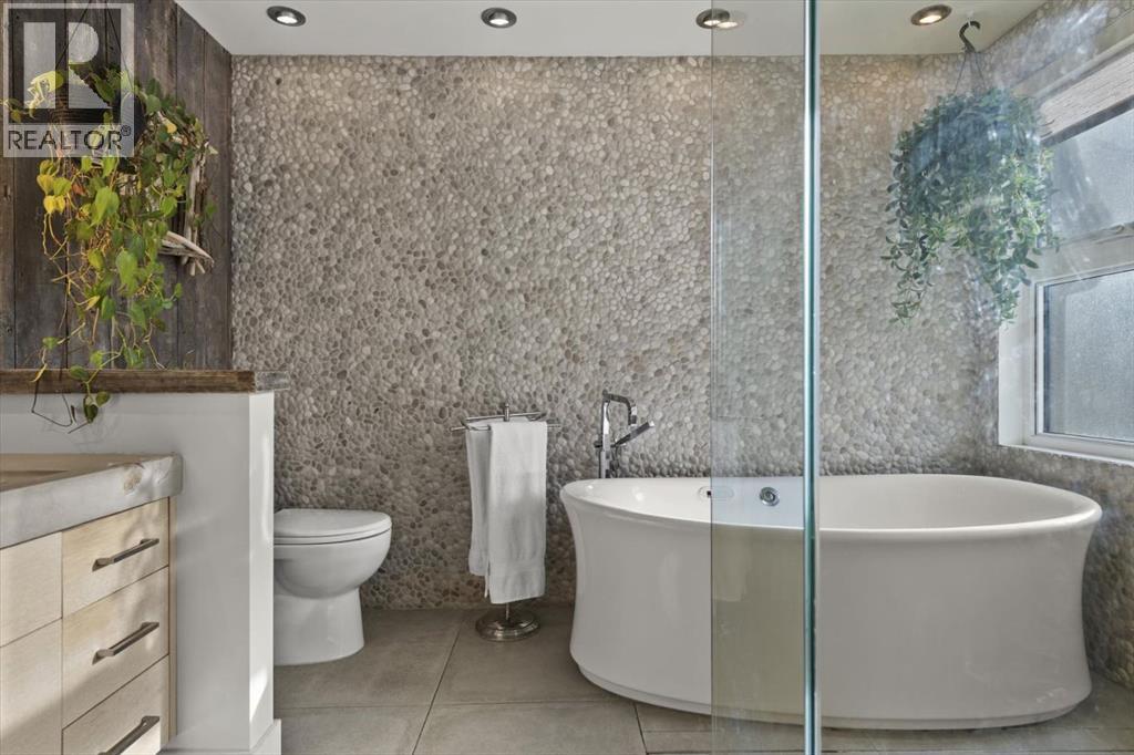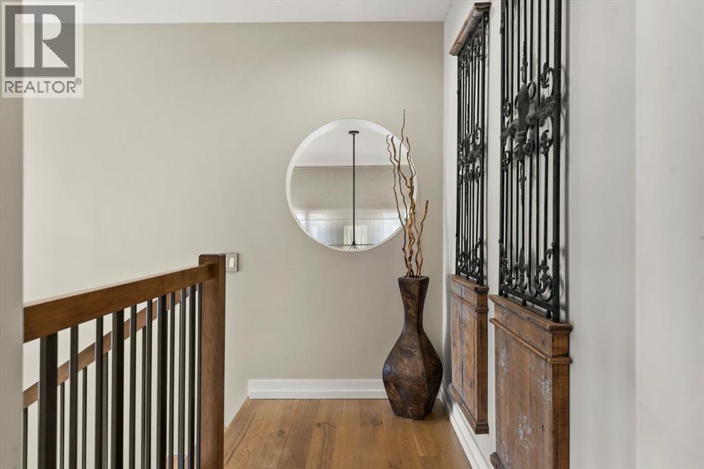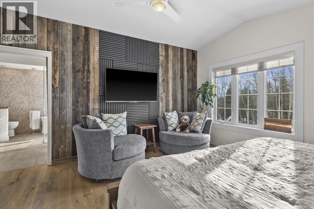 Some homes are designed for function, others for style - this one was designed for something more. Set on just over two acres in Bearspaw, this residence reveals its character the moment you arrive: sweeping curves in the architecture, river rock columns, and a presence that promises there's a story around every corner.Step inside and a circular skylight draws your eye upward, casting light through a graceful rotunda that anchors the home. Those architectural curves continue throughout - in hallways, railings, and built-in niches designed for art and treasured pieces.The main level presents two interconnected living spaces with remarkable flexibility. The larger room, currently configured as an expansive dining area easily seating 14, features soaring ceilings, a river rock fireplace, and walls of windows. The adjacent sitting area offers a more intimate scale. These spaces can easily trade purposes - a generous living room with traditional dining to the side, or kept as designed for those who entertain on a grand scale.Throughout the home, reclaimed barn-board sourced from England creates warmth against contemporary elements - concrete countertops, sleek fixtures, clean architectural lines. It's a considered contrast that feels both grounded and refined. The kitchen embodies this aesthetic, aged wood cabinetry meeting industrial concrete surfaces, a breakfast nook tucked into the window.The primary suite offers a spa-inspired ensuite with pebble stone walls, open shower, and deep soaker tub. Two additional bedrooms, family bathroom and laundry facilities share the upper level, accessed from curved hallways with a striking circular opening overlooking the rotunda.The walkout level opens to casual gathering space, a fourth bedroom, bathroom, exercise area and a very unique dual wine cellar and cigar humidor. A glass breezeway connects the main house to a secondary garage with self-contained guest suite above - Murphy beds and lounge space equally suited a s creative studio or home office. For the collector: a separate garage bay accessed by fingerprint recognition, purpose-built for a prized vehicle.Outside, the property unfolds with equal intention. In-ground pool, hot tub, and firepit create spaces for every season. Circling a stone platform at the heart of the grounds, a moat crossed by two wooden bridges - a meditative feature that speaks to the thoughtfulness woven throughout.For the right person, this won't simply be a beautiful property. It will feel like home. (31597538)