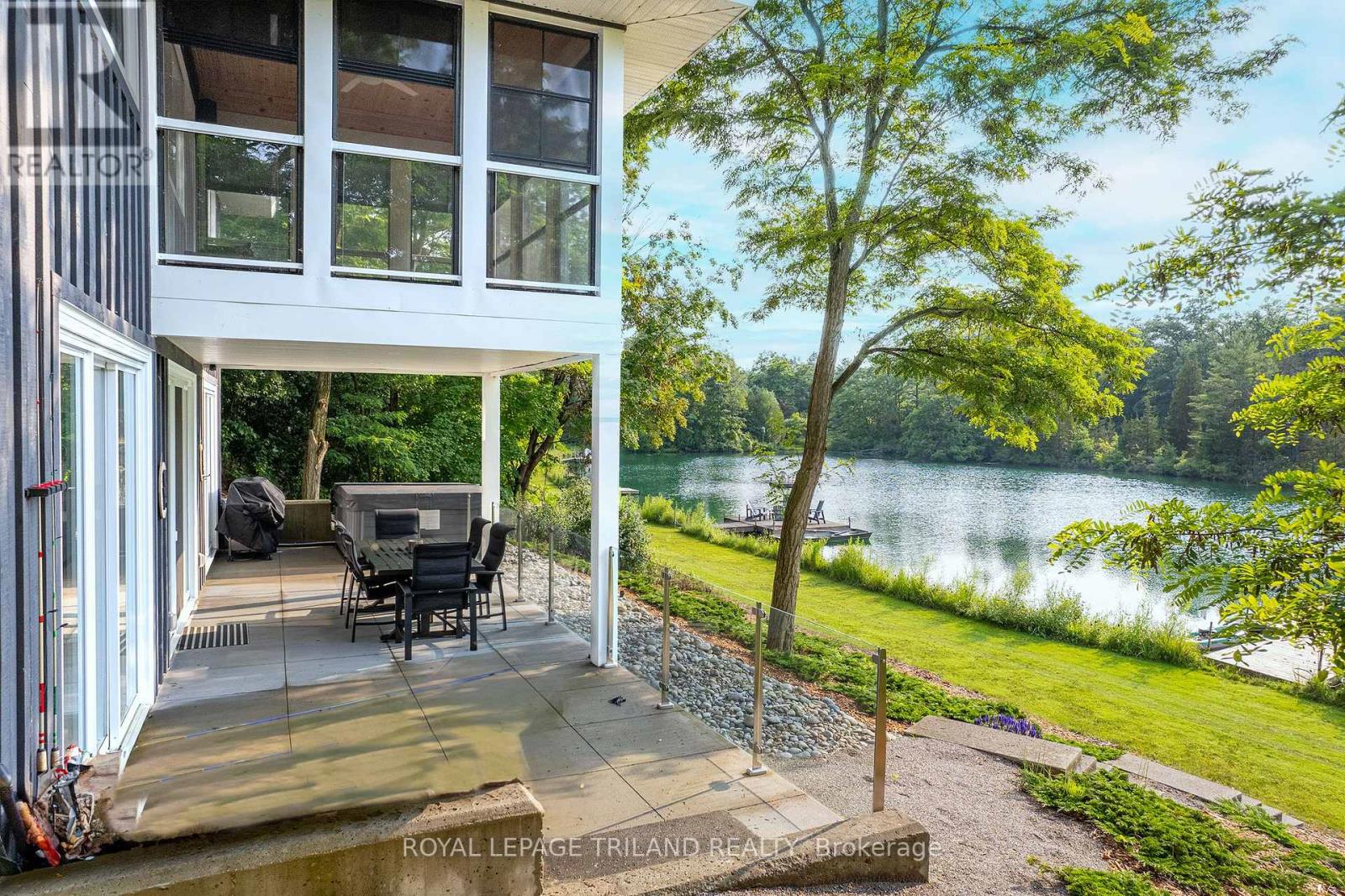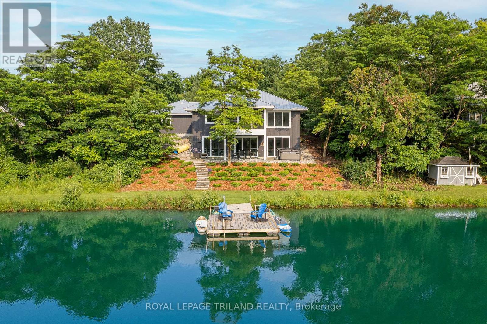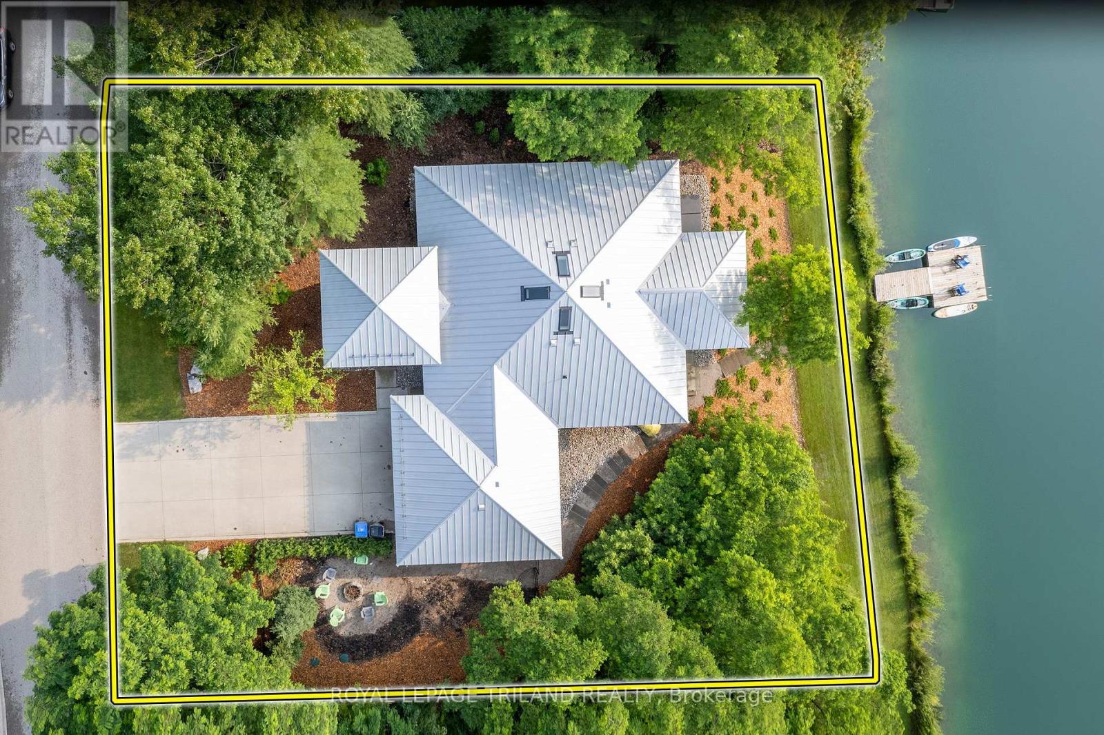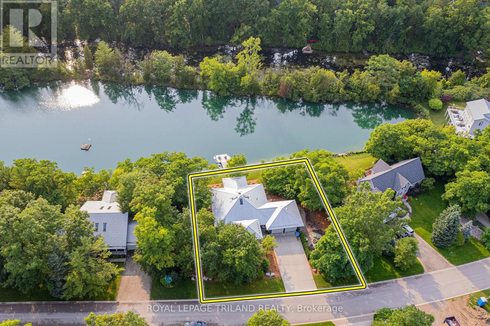 MUSKOKA IN GRAND BEND | WATERFRONT ON PRIVATE LAKE w/ SPECTACULAR VIEWS | FULLY FURNISHED TURNKEY PACAKAGE | STEPS TO SANDY BEACH ACCESS: Welcome to Wee Lake, Grand Bend's best kept secret featuring a crystal clear sparkling blue spring fed private lake for swimming, paddle boarding, fishing & kayaking + stellar skating & family hockey in the winter + access to the Ausable River for even better fishing! Fall in love with this young custom 4 bed/4bath walk-out bungalow, one of only 5 lakefront properties nestled into this secluded subdivision, which is a small & quiet single cul de sac community on the beachside of the HWY. With only 36 parcels total & lake access limited to Wee Lake residents (sharing 1/36 ownership of lake), this tranquil & peaceful naturally fed sparkling phenomenon is barely used. This stunning architecturally designed custom masterpiece fronts the lake w/ 134' of priceless linear water frontage. Providing exceptional main floor living framing-in nonstop lake views + a sprawling lower level walking out to your included hot tub & swimming/fishing dock just 50 ft from your poured concrete patio, this is a 10+! The layout is brilliant, w/ soaring main level ceilings inc. an impressive 20+ ft vault & 10 ft ceilings throughout rest of main, a stellar master suite w/ ensuite/walk-in, laundry w/ sink + 2nd laundry in lower, 2 more main level bedrooms (one w/ a 1/2 bath ensuite/ ideal for home office), 2 sunrooms (guest sleepers), 2 gas fireplaces, lower level walk-out w/ bed & full bath + wall to wall windows - simply perfect. Imagine sipping your morning coffee while the kids or grandkids swim off your private dock w/ the dogs enjoying their fenced in yard / dog run. As an ideal family get away, short term rental money maker, or principal residence in the booming beach town of Grand Bend, this is a winner, just to steps to one of our most secluded area beach access points, the Pinedale Rd beach path. Turnkey package including furniture & appliances! (42064921)