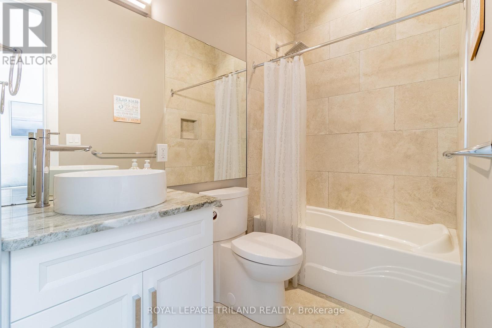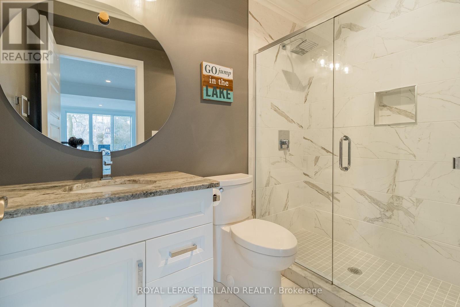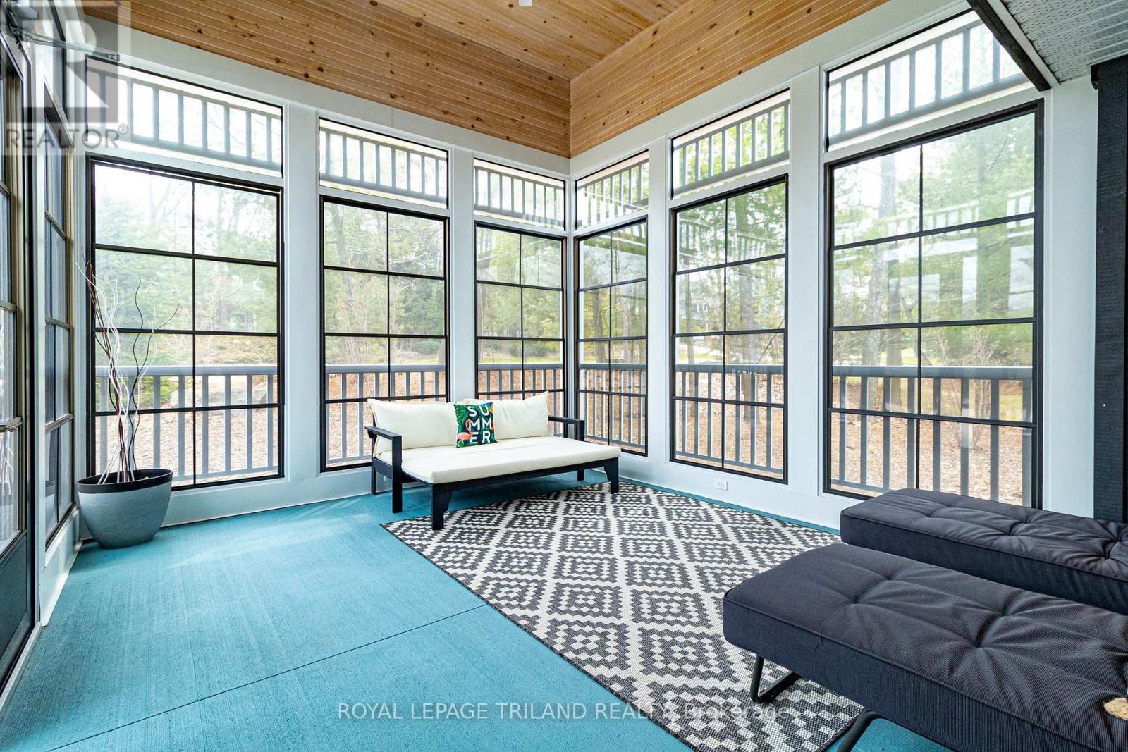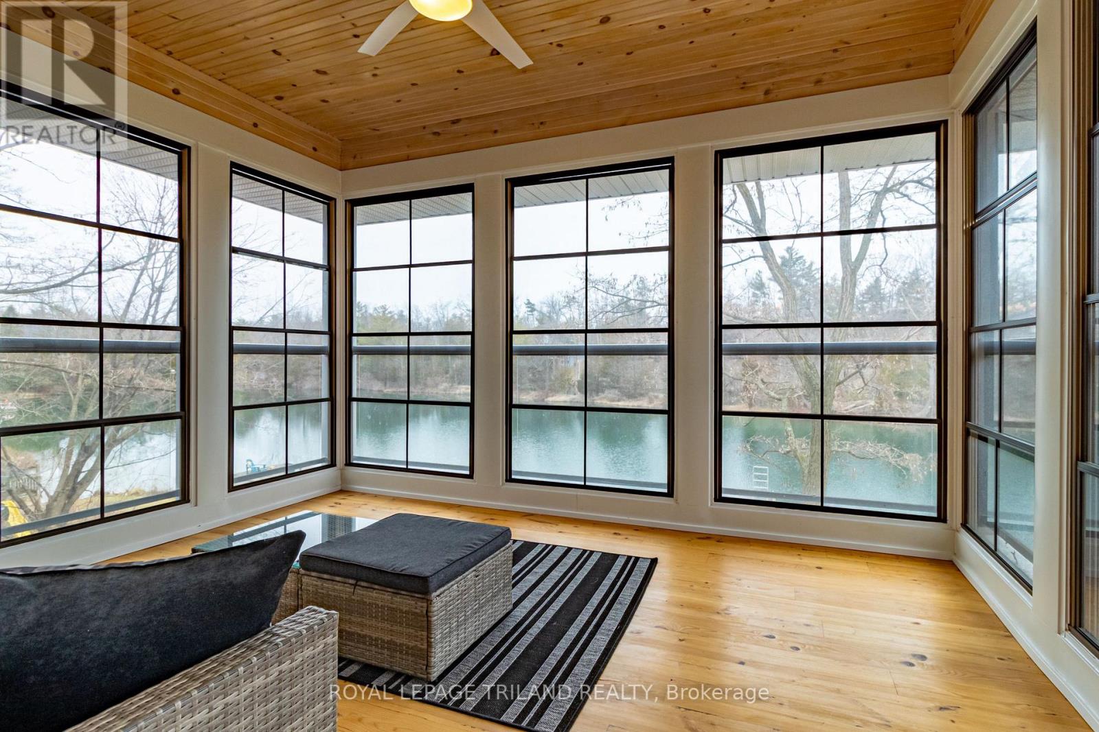 MUSKOKA IN GRAND BEND | WATERFRONT ON PRIVATE LAKE w/ SPECTACULAR VIEWS | FULLY FURNISHED TURNKEY PACAKAGE | STEPS TO SANDY BEACH ACCESS: Welcome to Wee Lake, Grand Bend's best kept secret featuring a crystal clear sparkling blue spring fed private lake for swimming, paddle boarding, fishing & kayaking + stellar skating & family hockey in the winter + access to the Ausable River for even better fishing! Fall in love with this young custom 4 bed/4bath walk-out bungalow, one of only 5 lakefront properties nestled into this secluded subdivision, which is a small & quiet single cul de sac community on the beachside of the HWY. With only 36 parcels total & lake access limited to Wee Lake residents (sharing 1/36 ownership of lake), this tranquil & peaceful naturally fed sparkling phenomenon is barely used. This stunning architecturally designed custom masterpiece fronts the lake w/ 134' of priceless linear water frontage. Providing exceptional main floor living framing-in nonstop lake views + a sprawling lower level walking out to your included hot tub & swimming/fishing dock just 50 ft from your poured concrete patio, this is a 10+! The layout is brilliant, w/ soaring main level ceilings inc. an impressive 20+ ft vault & 10 ft ceilings throughout rest of main, a stellar master suite w/ ensuite/walk-in, laundry w/ sink + 2nd laundry in lower, 2 more main level bedrooms (one w/ a 1/2 bath ensuite/ ideal for home office), 2 sunrooms (guest sleepers), 2 gas fireplaces, lower level walk-out w/ bed & full bath + wall to wall windows - simply perfect. Imagine sipping your morning coffee while the kids or grandkids swim off your private dock w/ the dogs enjoying their fenced in yard / dog run. As an ideal family get away, short term rental money maker, or principal residence in the booming beach town of Grand Bend, this is a winner, just to steps to one of our most secluded area beach access points, the Pinedale Rd beach path. Turnkey package including furniture & appliances! (42064921)